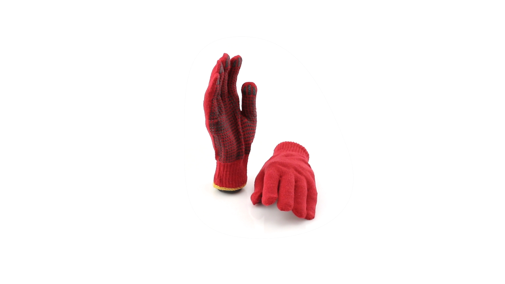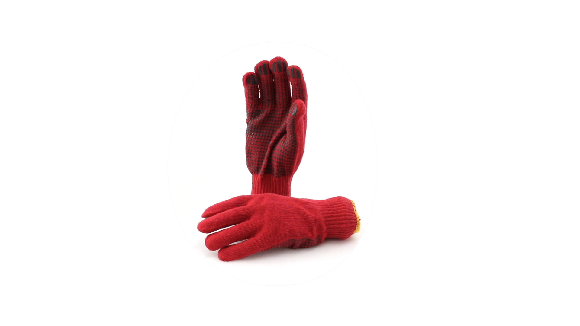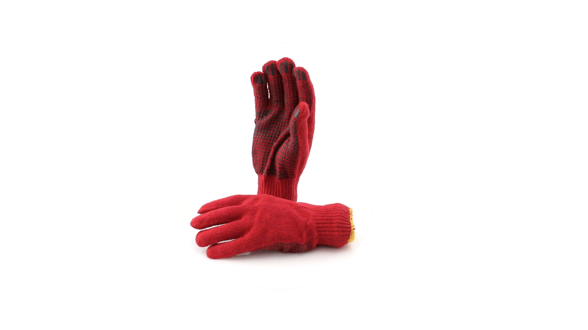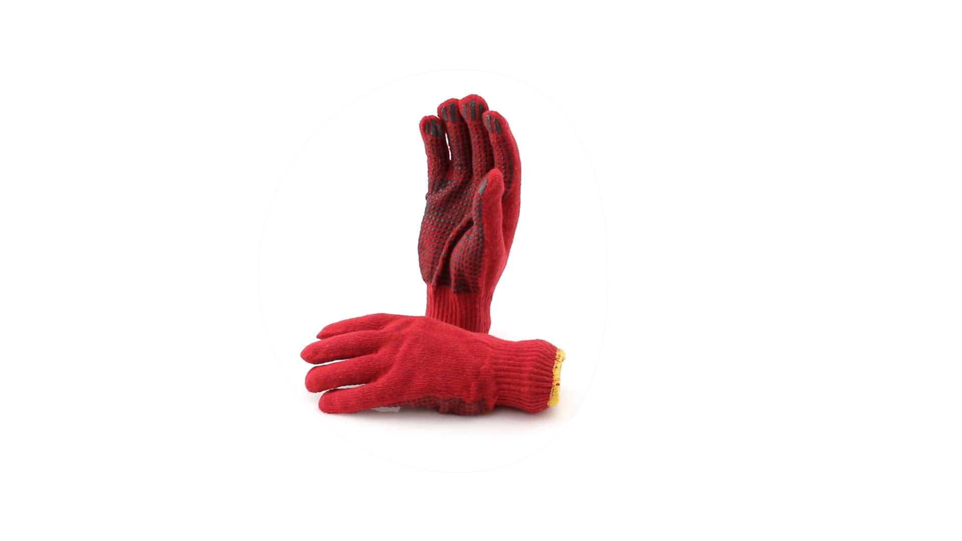 Arbeitshandschuhe aus weichem, widerstandsfähigem Material aus einer Baumwoll/Polyester-Kombination. Handfläche verstärkt mit rutschfestem Silikon sowie Gummiband an den Handgelenken für einen guten Sitz.