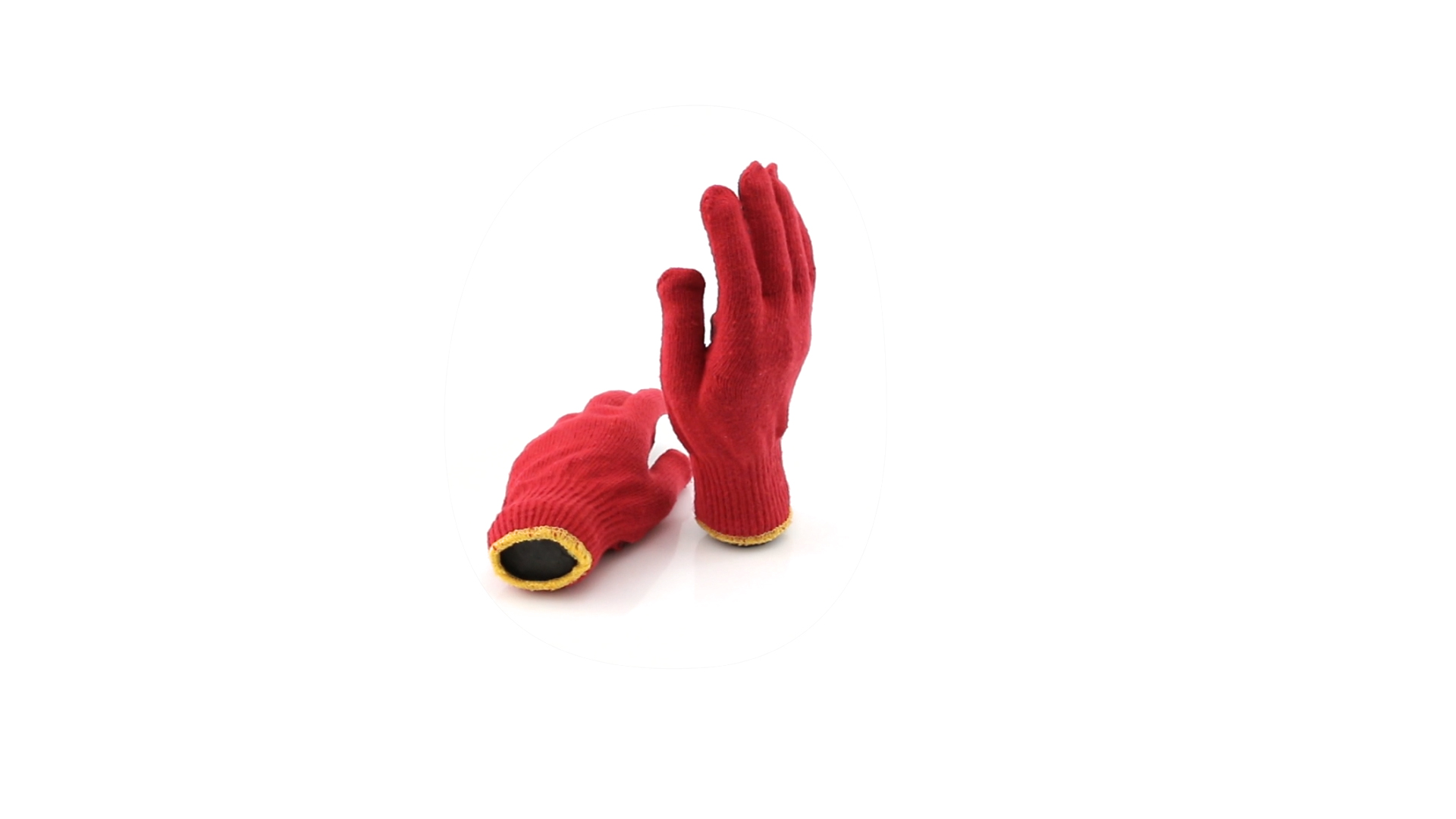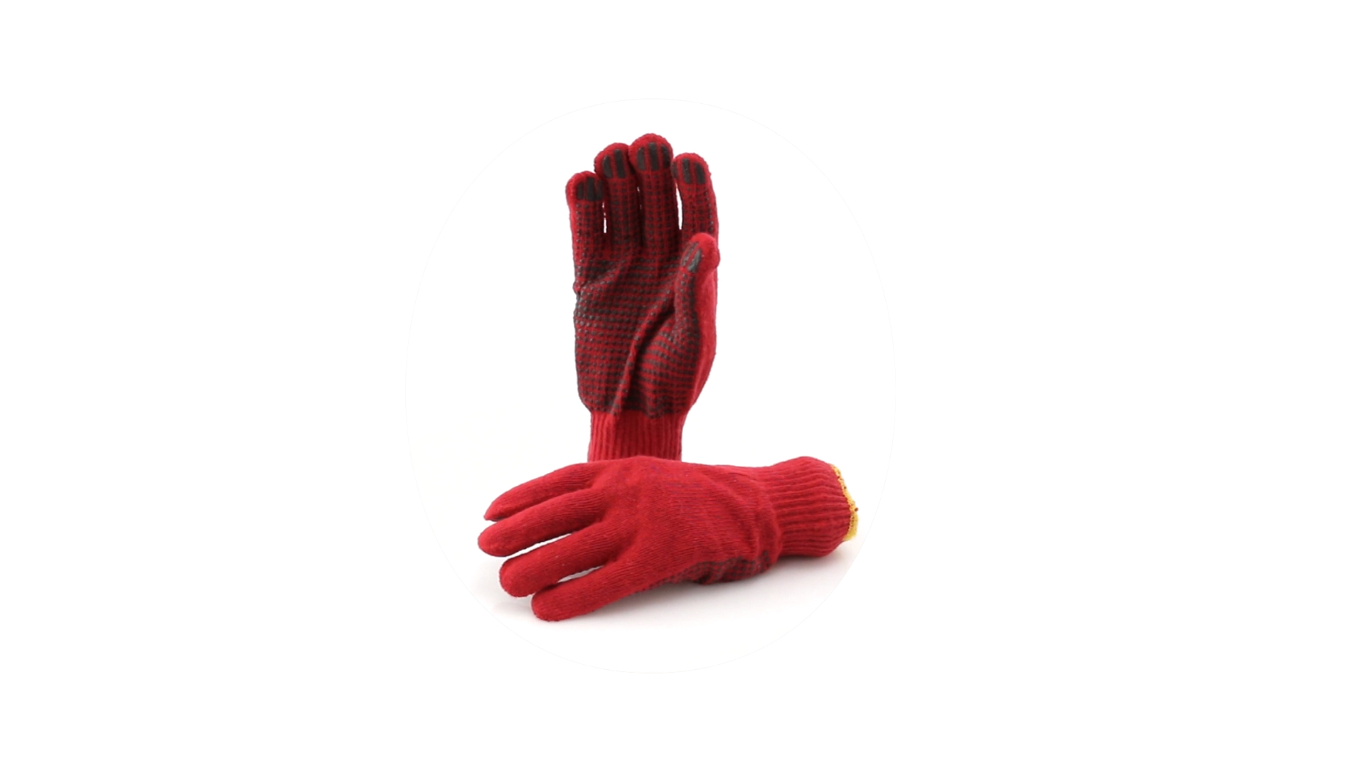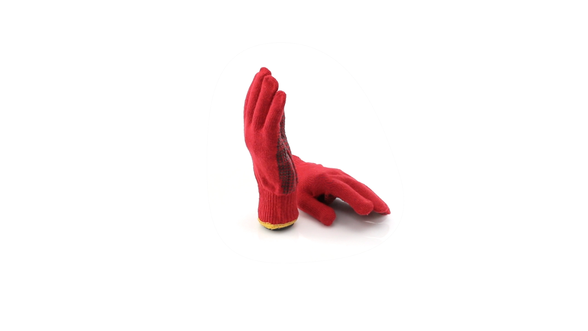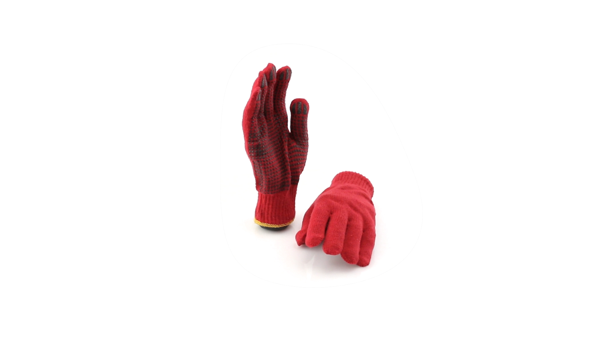 Arbeitshandschuhe aus weichem, widerstandsfähigem Material aus einer Baumwoll/Polyester-Kombination. Handfläche verstärkt mit rutschfestem Silikon sowie Gummiband an den Handgelenken für einen guten Sitz.