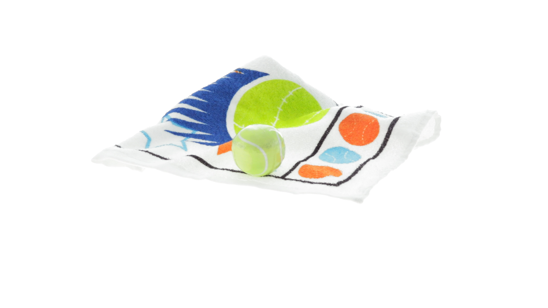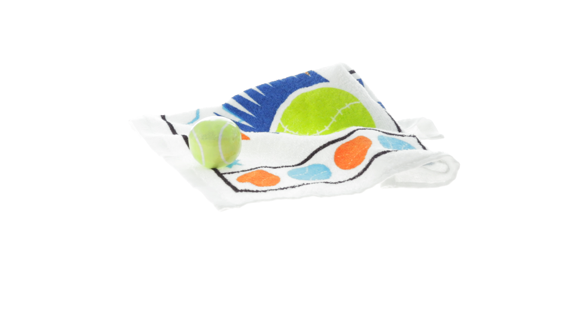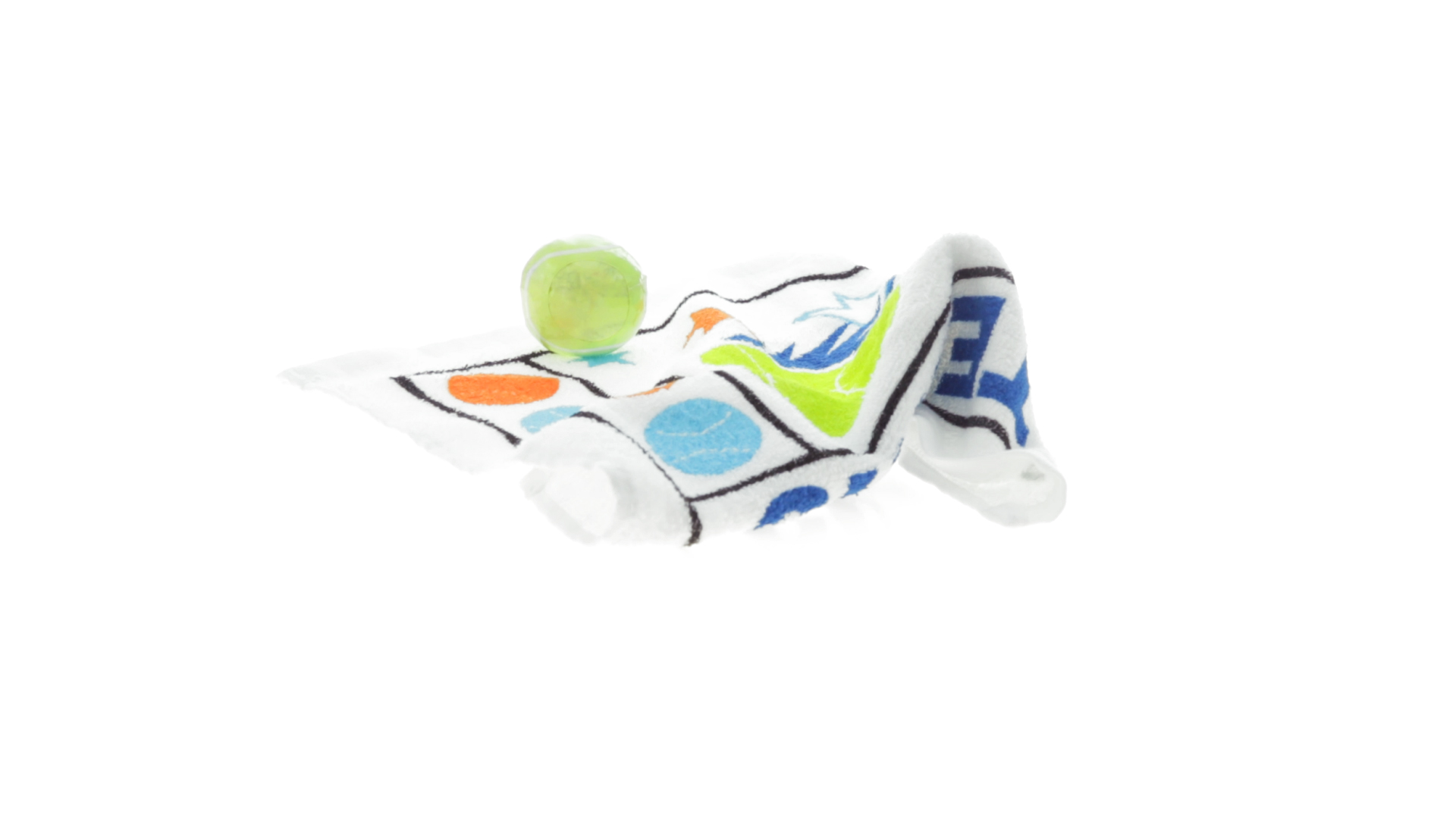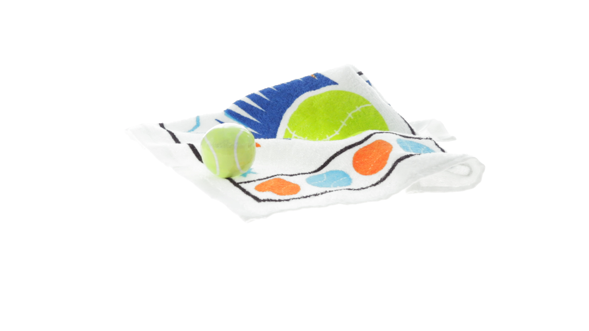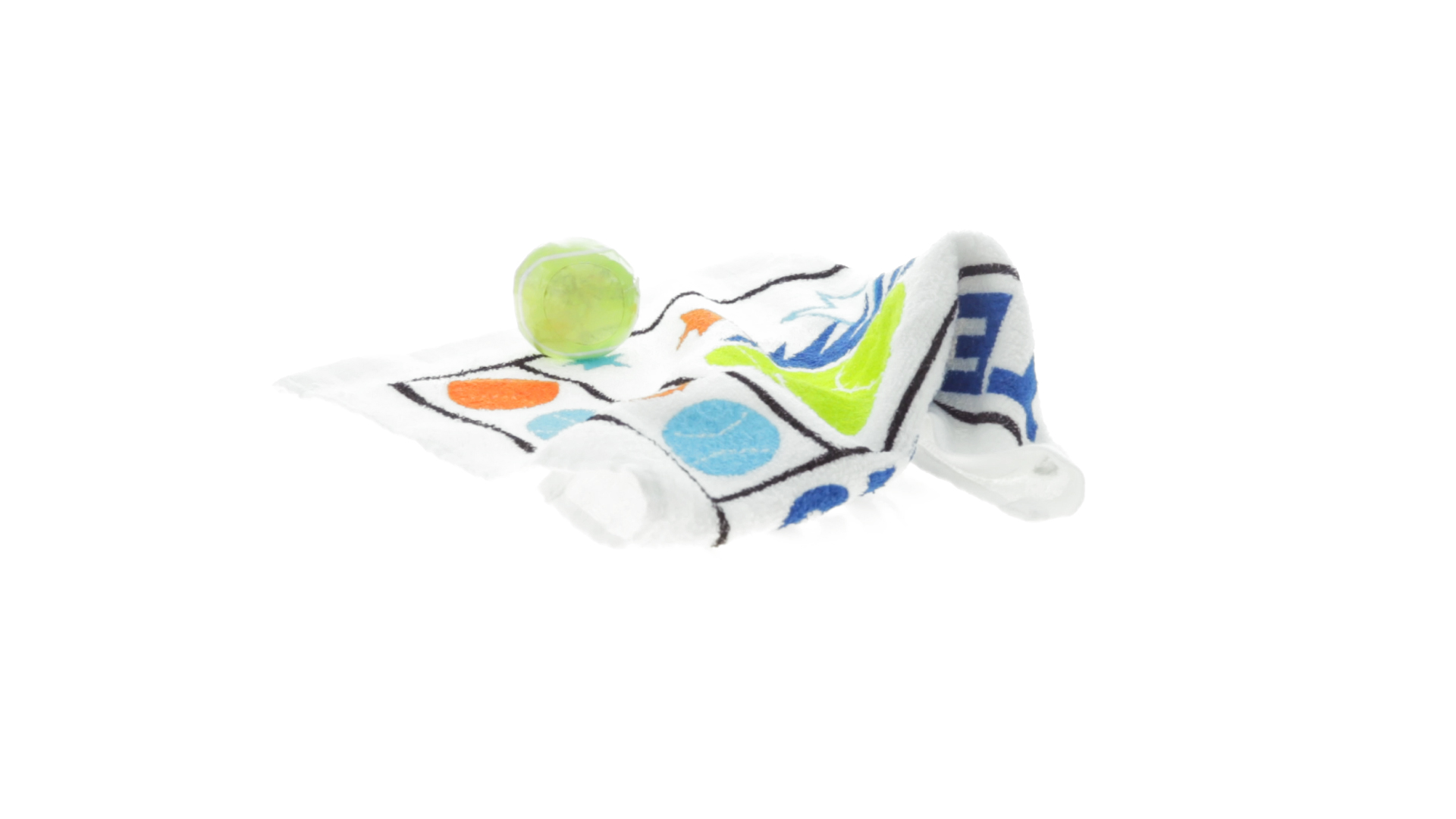 Originelles Handtuch aus Baumwolle (245 g/m2) in einem Ball des jeweiligen Designs des Handtuchs - Fussball, Basketball, Tennis oder Golf. Verpackung des Balls in einer Plastikhülle. Präsentiert in einem Polyesterbeutel mit Metallkarabiner.