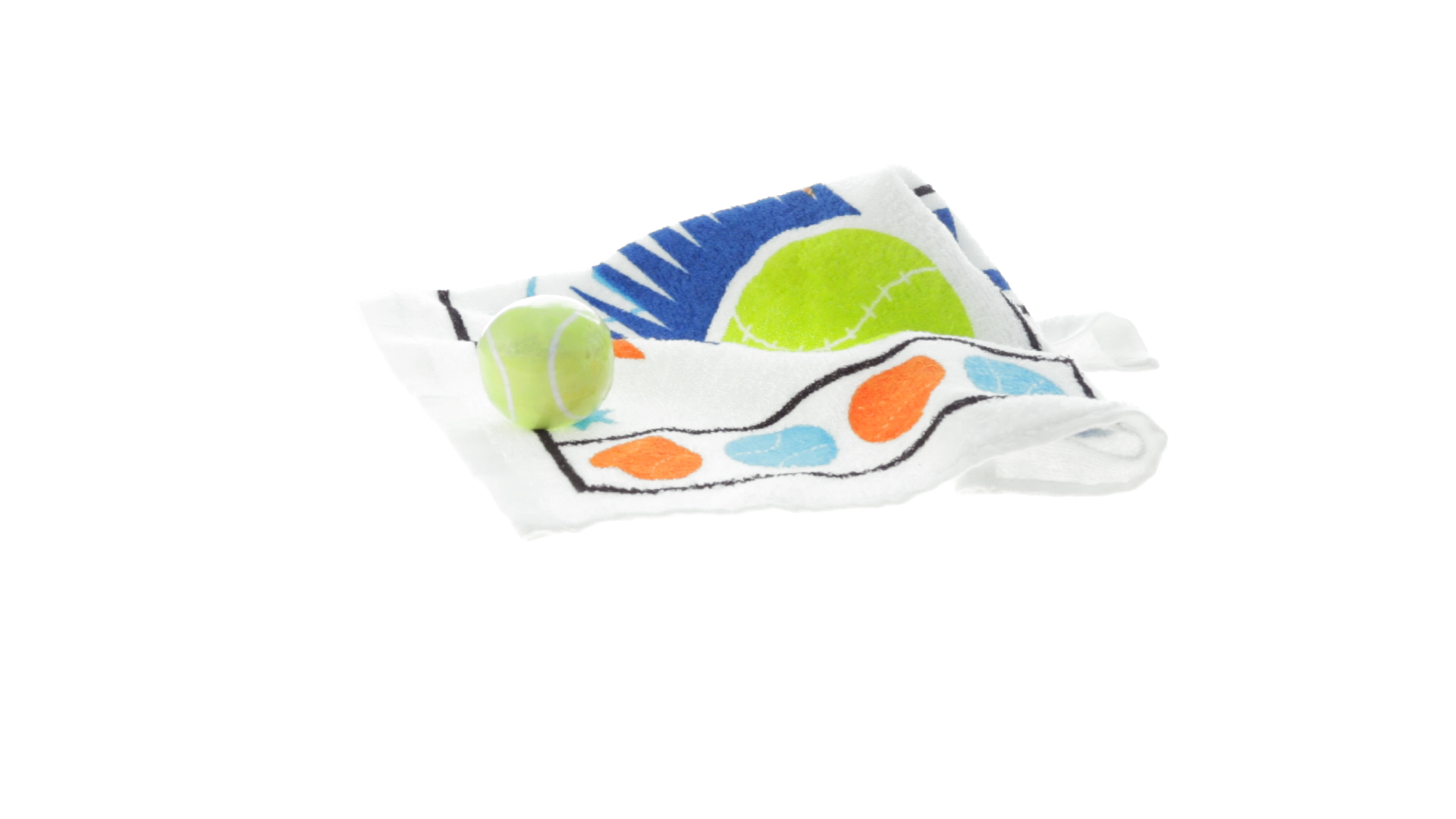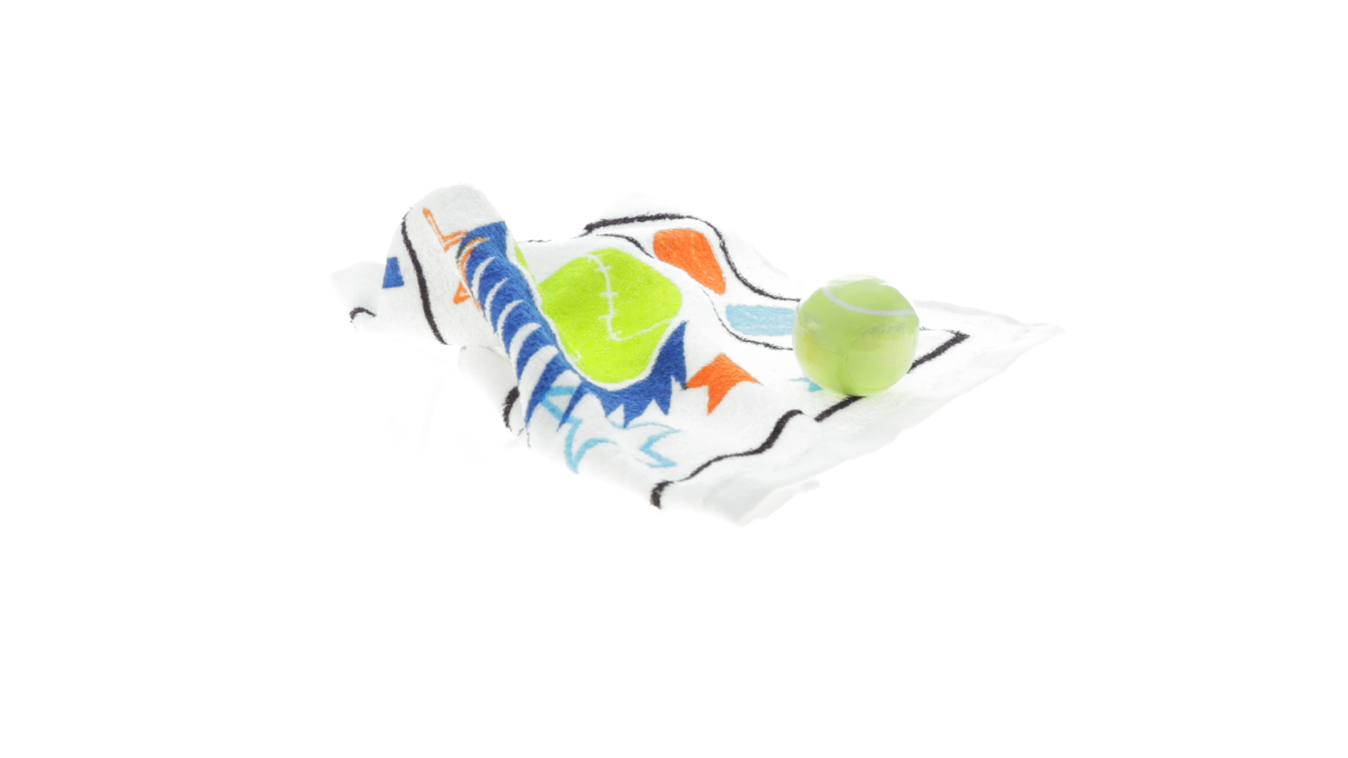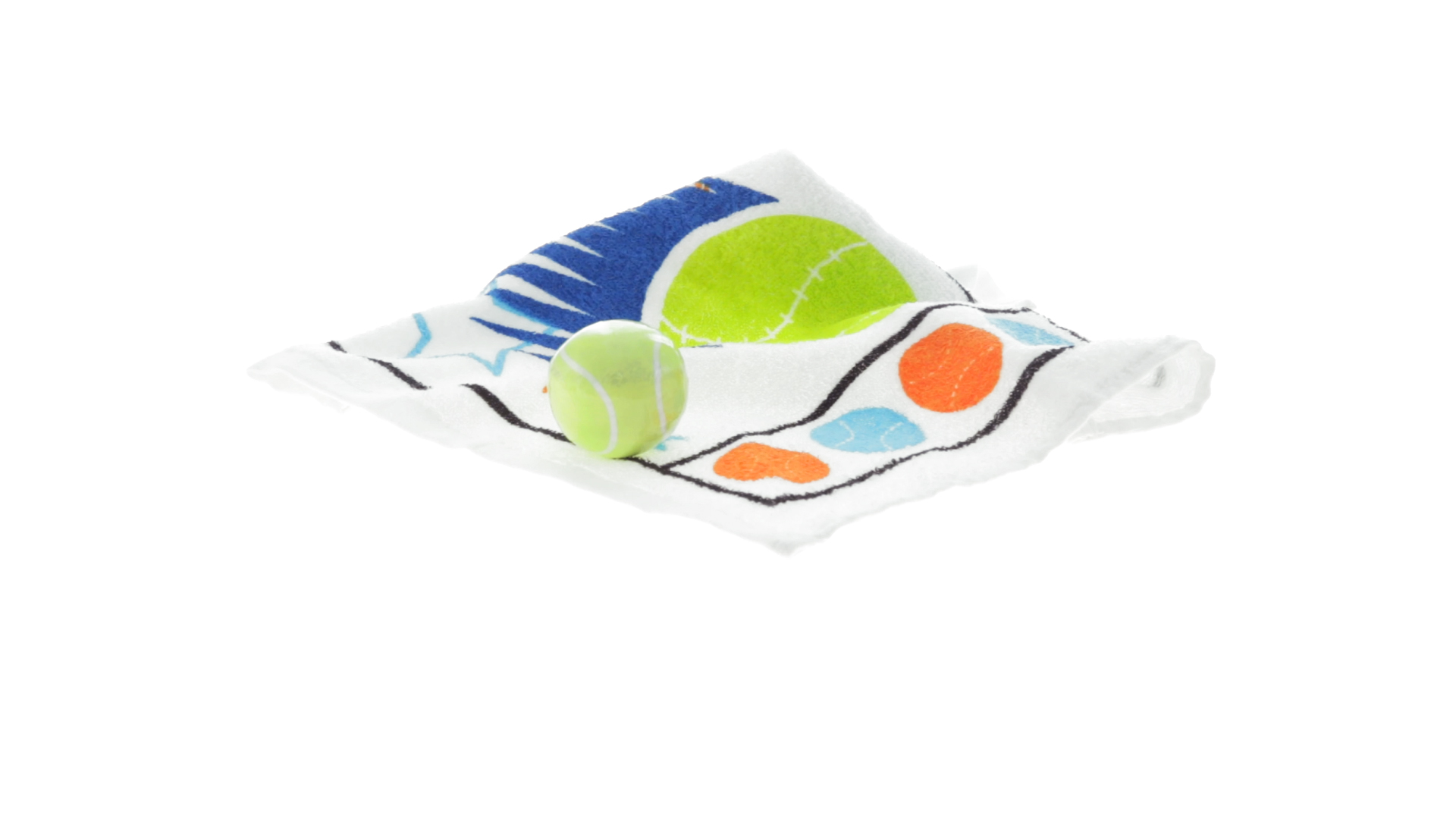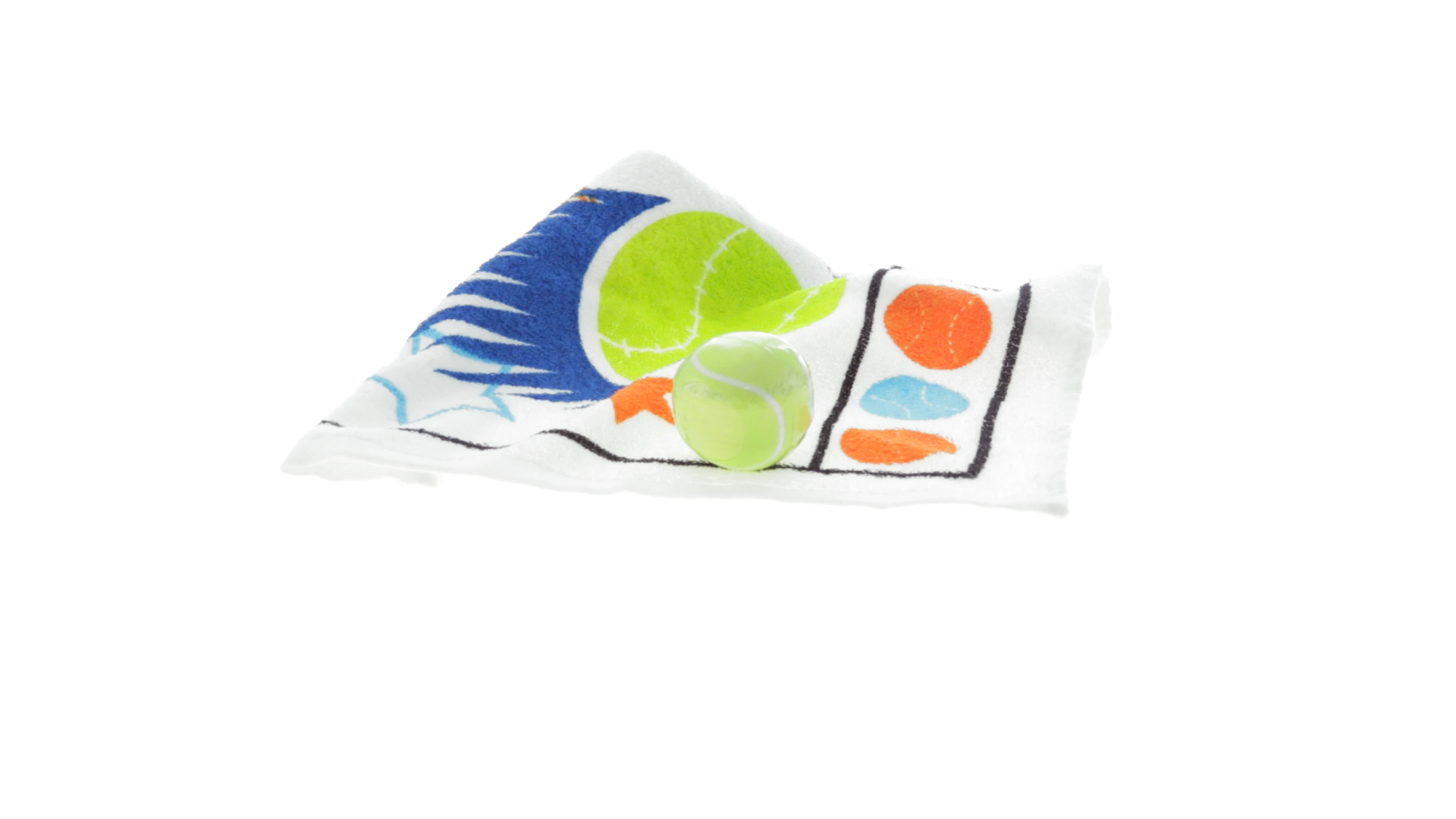 Originelles Handtuch aus Baumwolle (245 g/m2) in einem Ball des jeweiligen Designs des Handtuchs - Fussball, Basketball, Tennis oder Golf. Verpackung des Balls in einer Plastikhülle. Präsentiert in einem Polyesterbeutel mit Metallkarabiner.