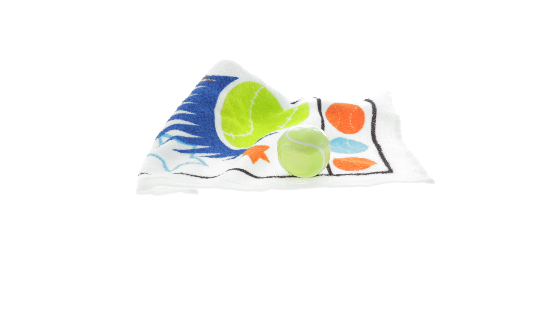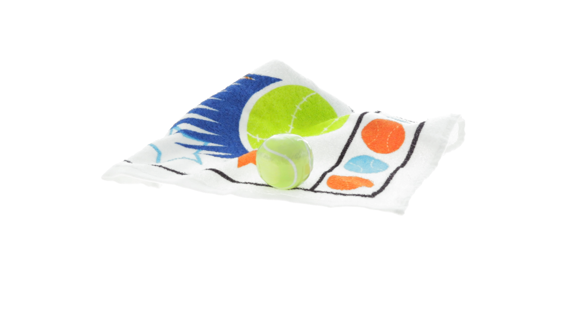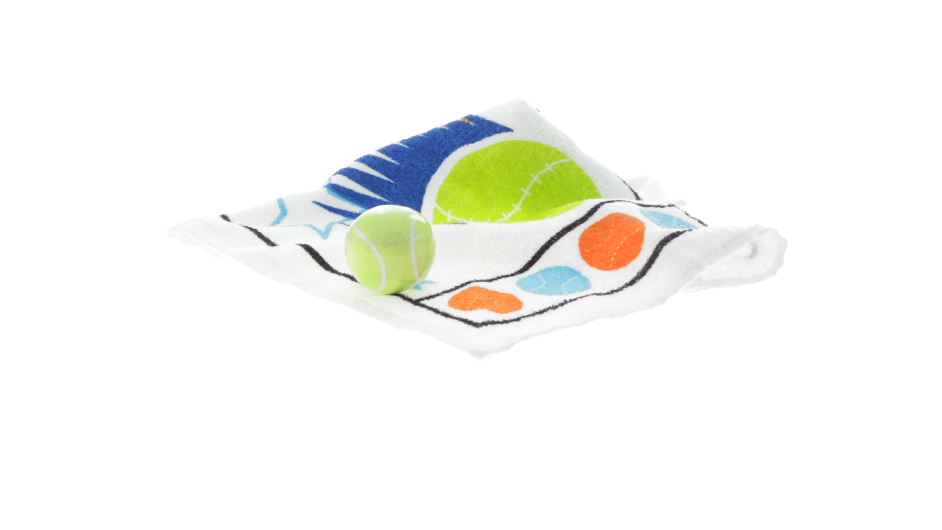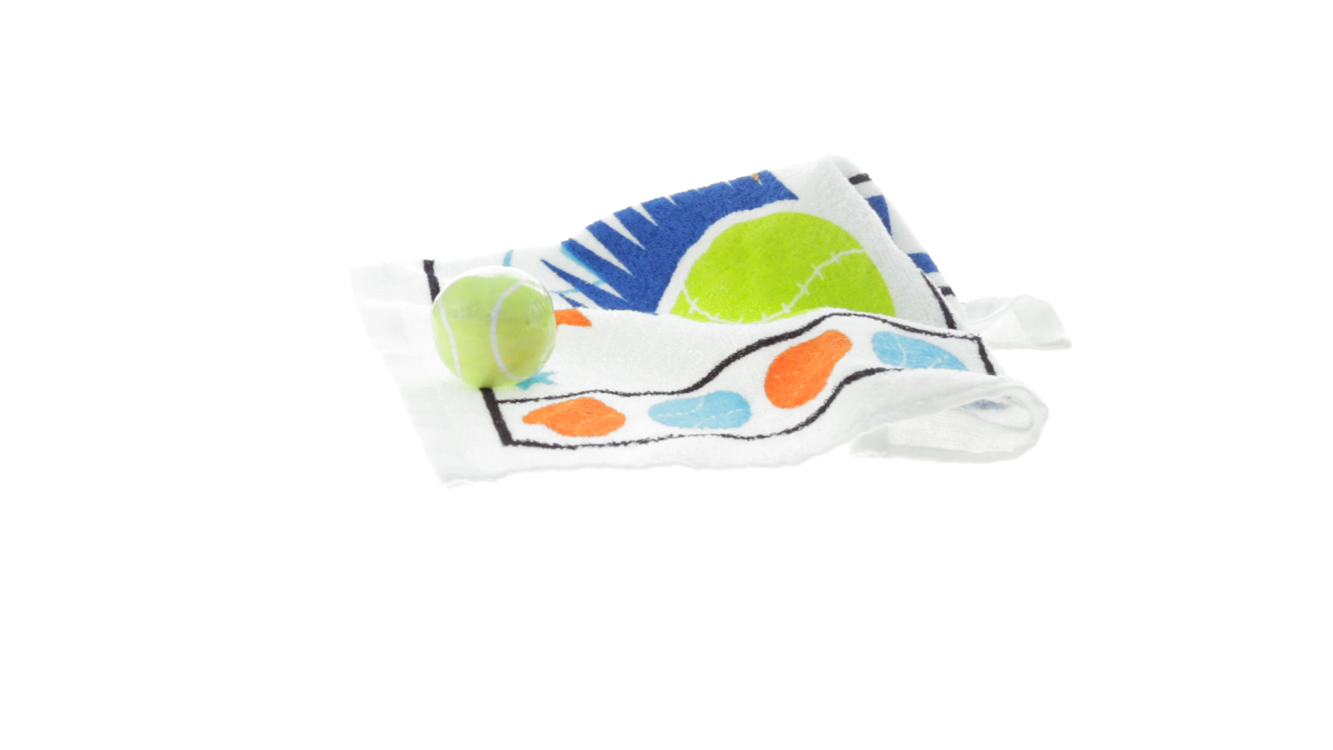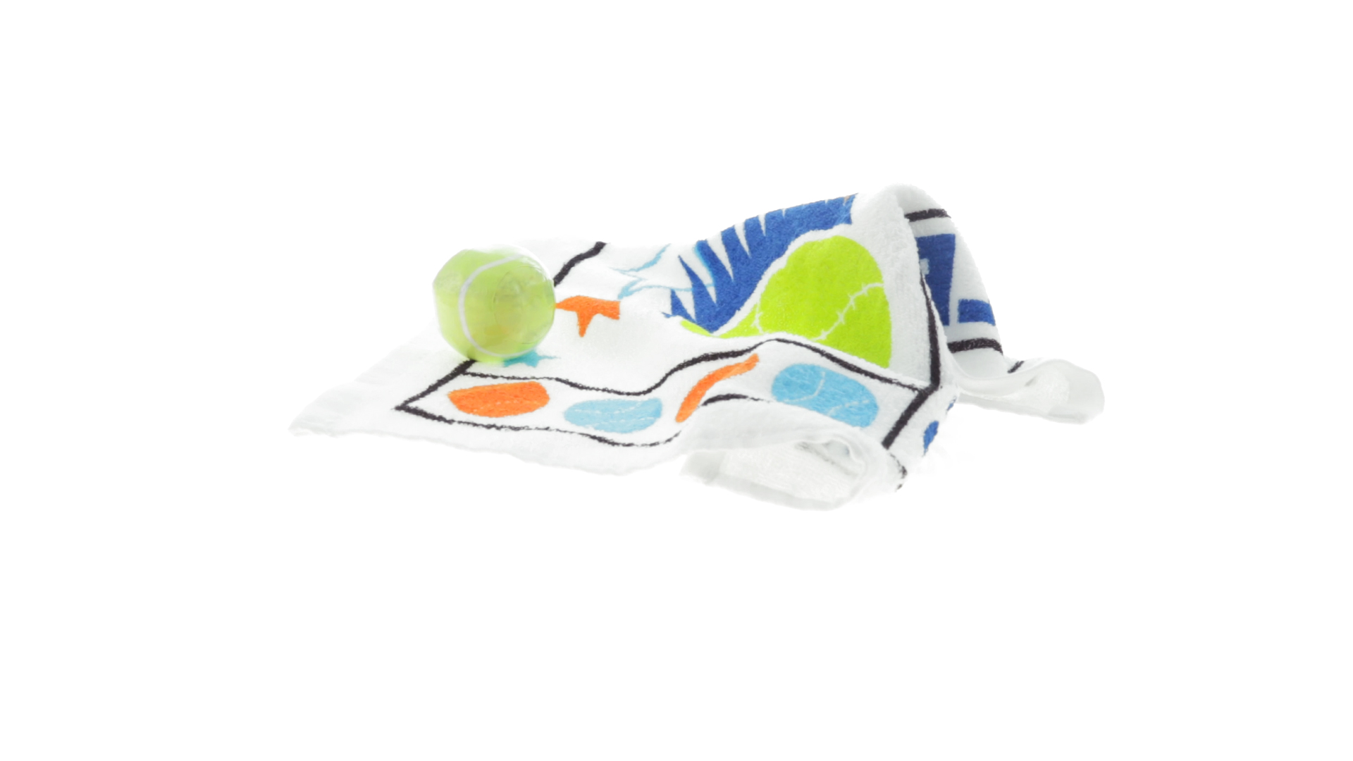 Originelles Handtuch aus Baumwolle (245 g/m2) in einem Ball des jeweiligen Designs des Handtuchs - Fussball, Basketball, Tennis oder Golf. Verpackung des Balls in einer Plastikhülle. Präsentiert in einem Polyesterbeutel mit Metallkarabiner.