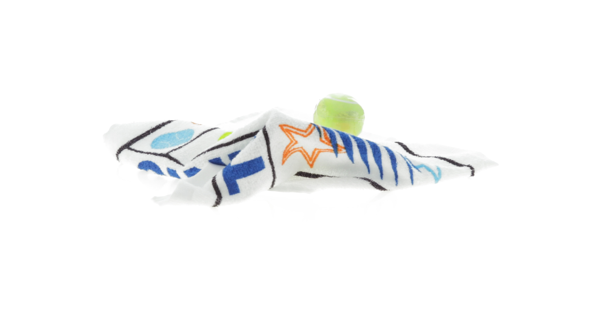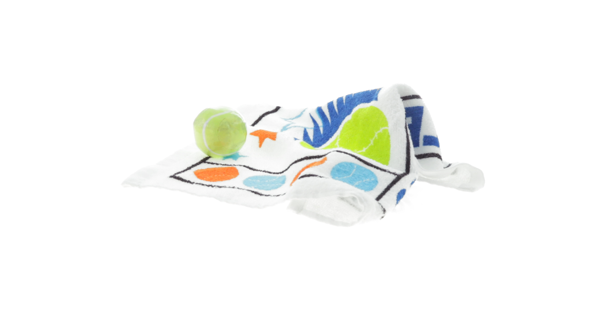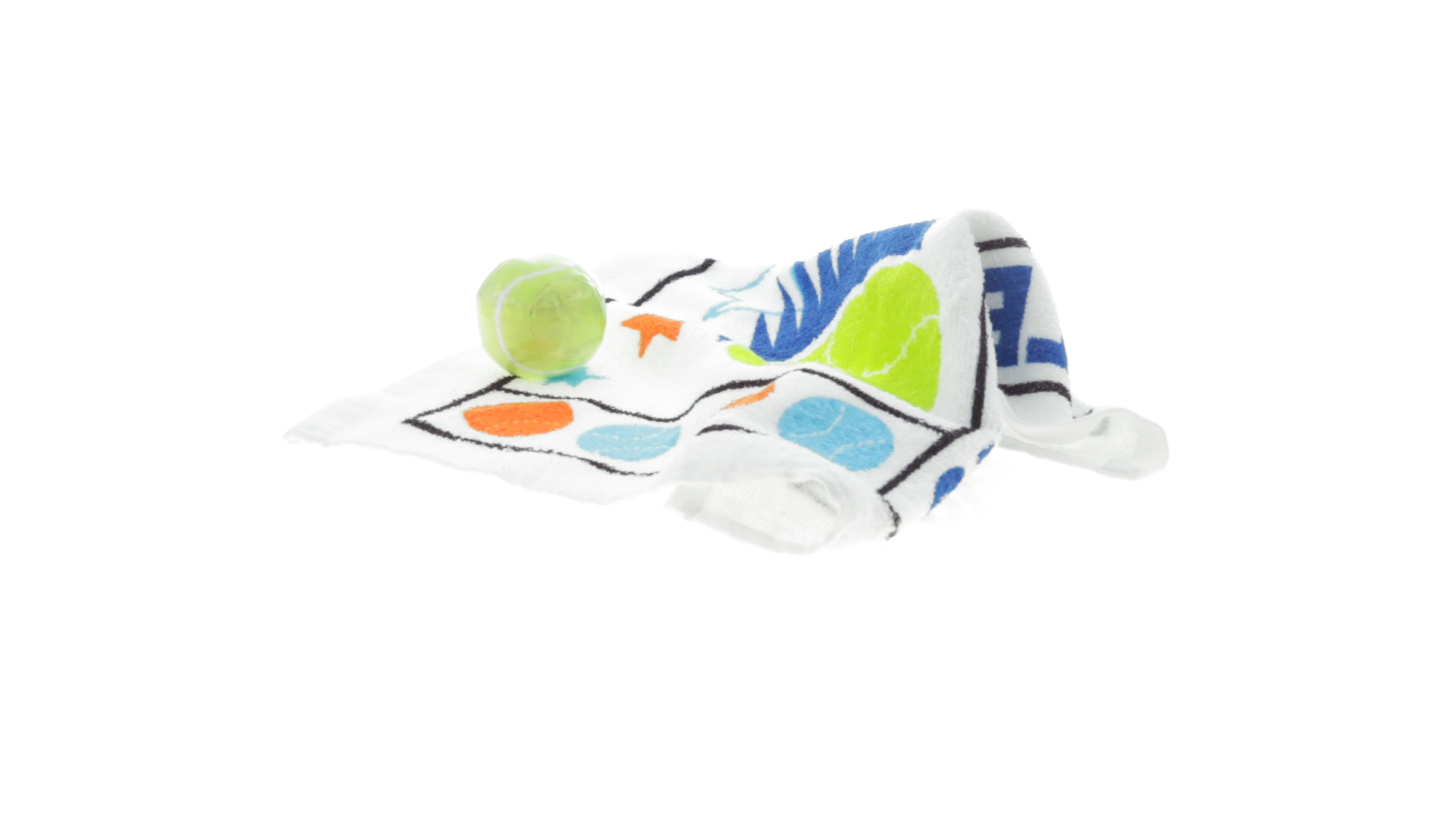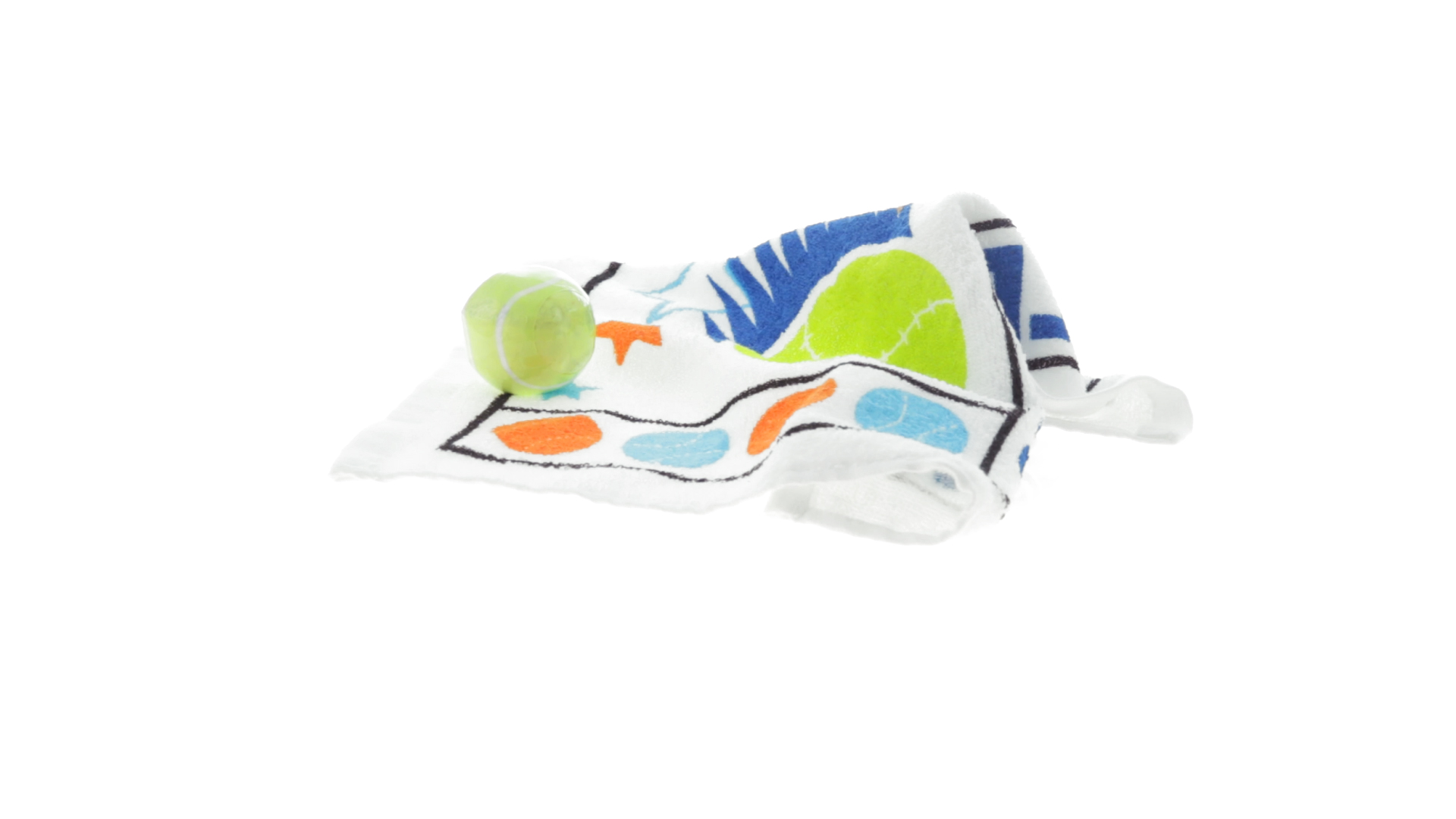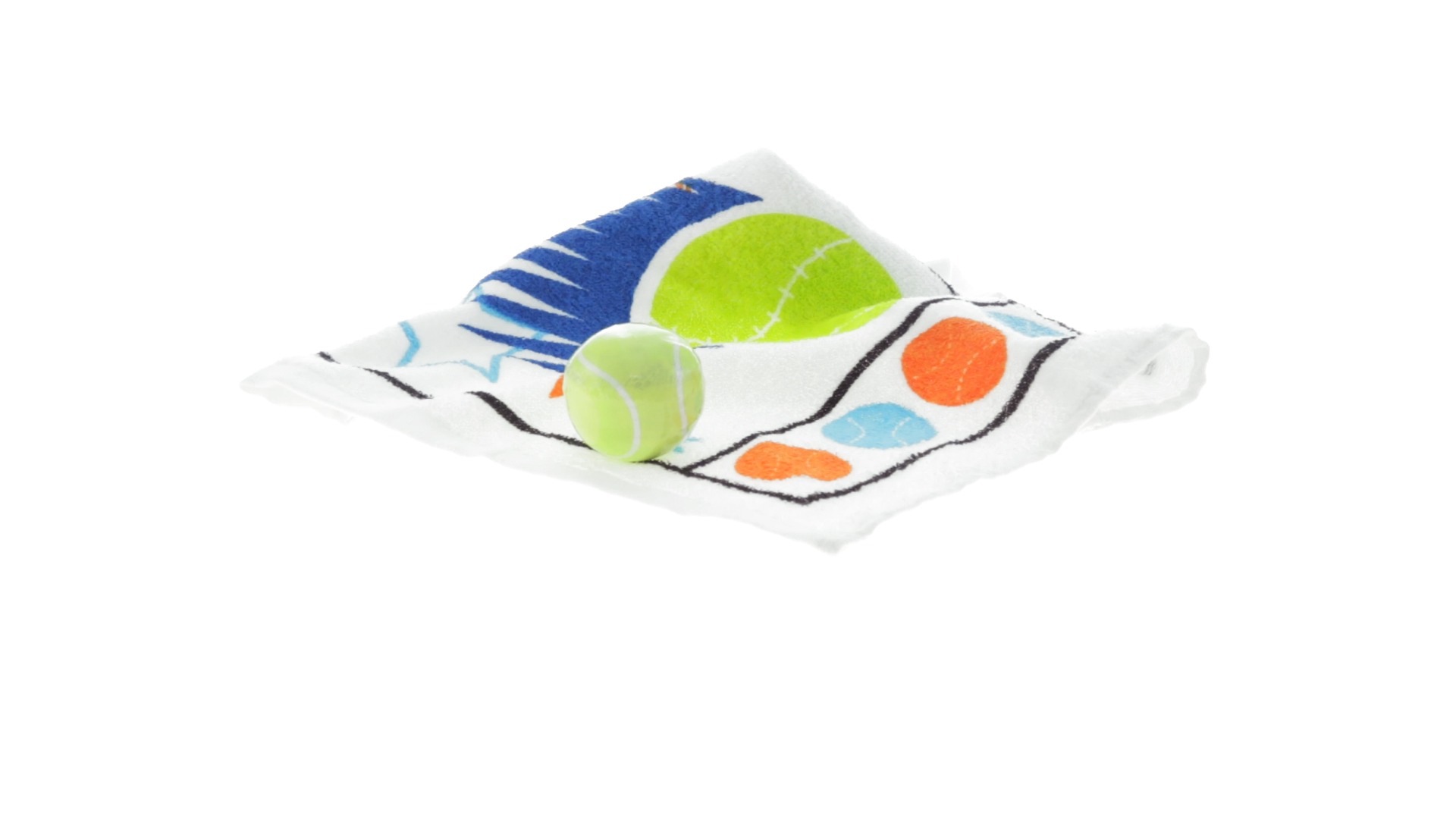 Originelles Handtuch aus Baumwolle (245 g/m2) in einem Ball des jeweiligen Designs des Handtuchs - Fussball, Basketball, Tennis oder Golf. Verpackung des Balls in einer Plastikhülle. Präsentiert in einem Polyesterbeutel mit Metallkarabiner.