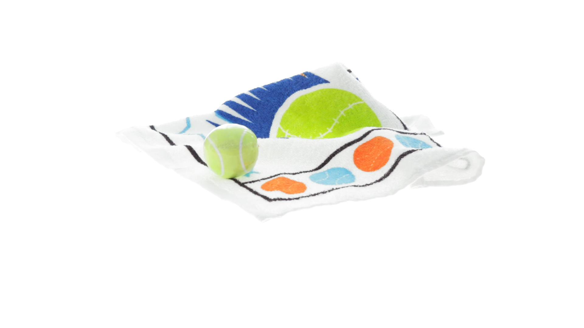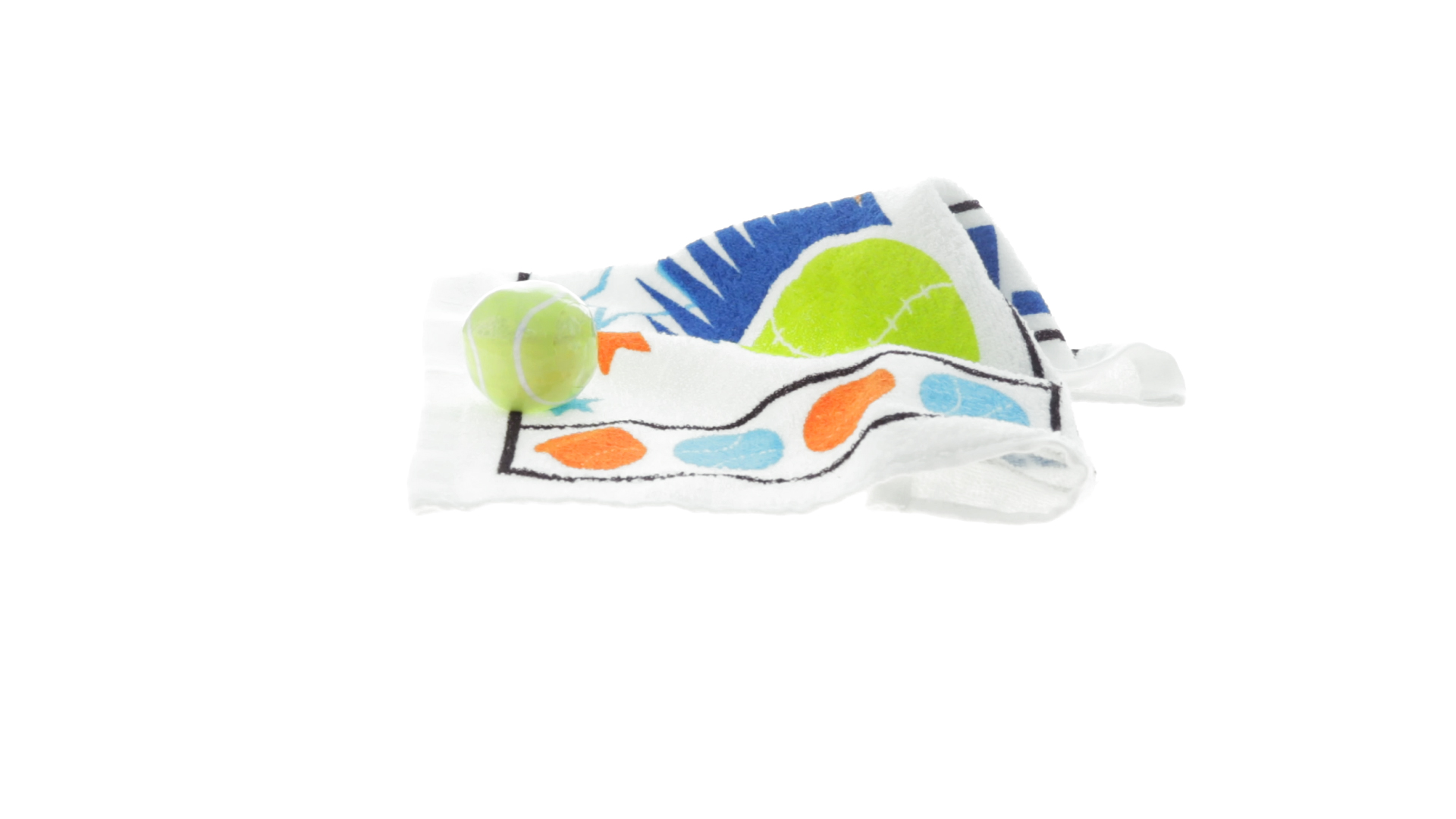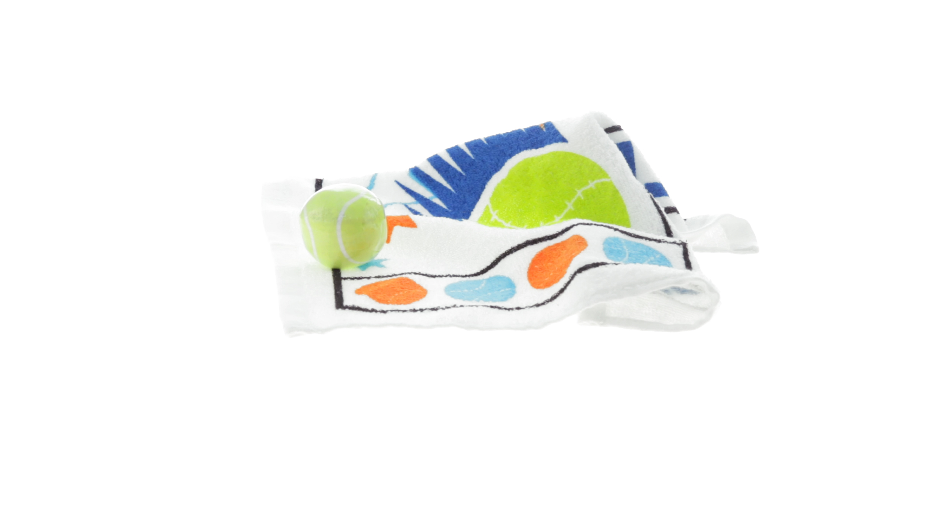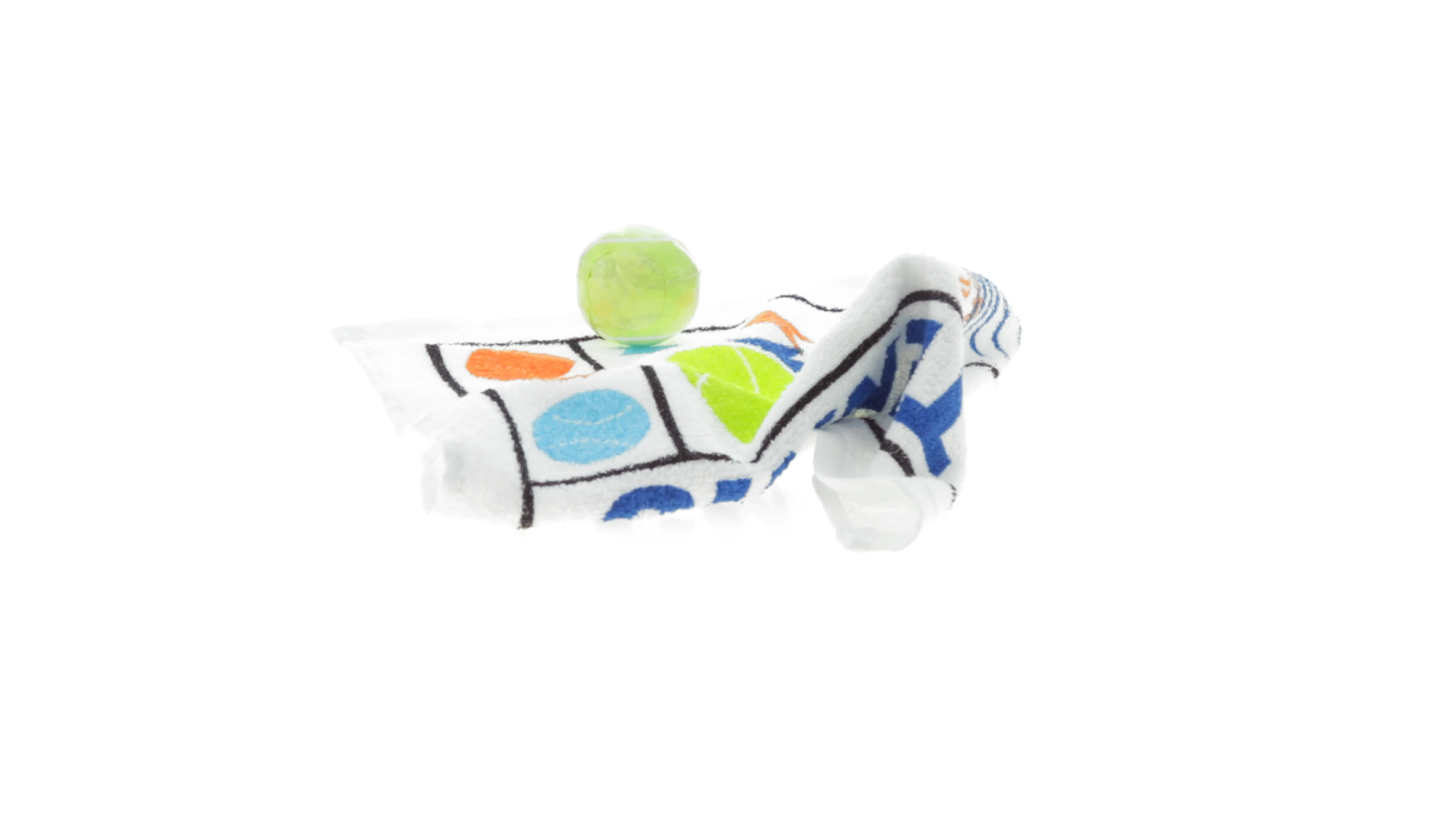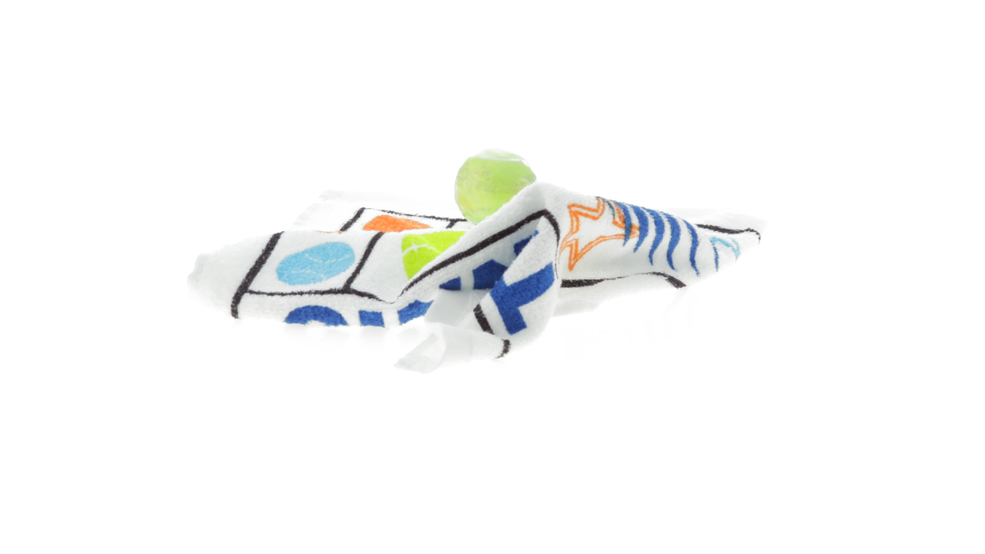 Originelles Handtuch aus Baumwolle (245 g/m2) in einem Ball des jeweiligen Designs des Handtuchs - Fussball, Basketball, Tennis oder Golf. Verpackung des Balls in einer Plastikhülle. Präsentiert in einem Polyesterbeutel mit Metallkarabiner.