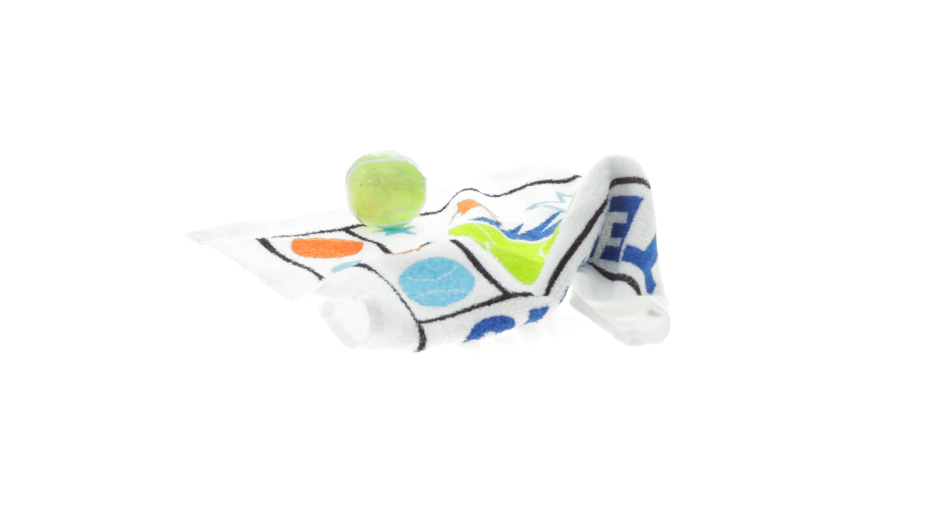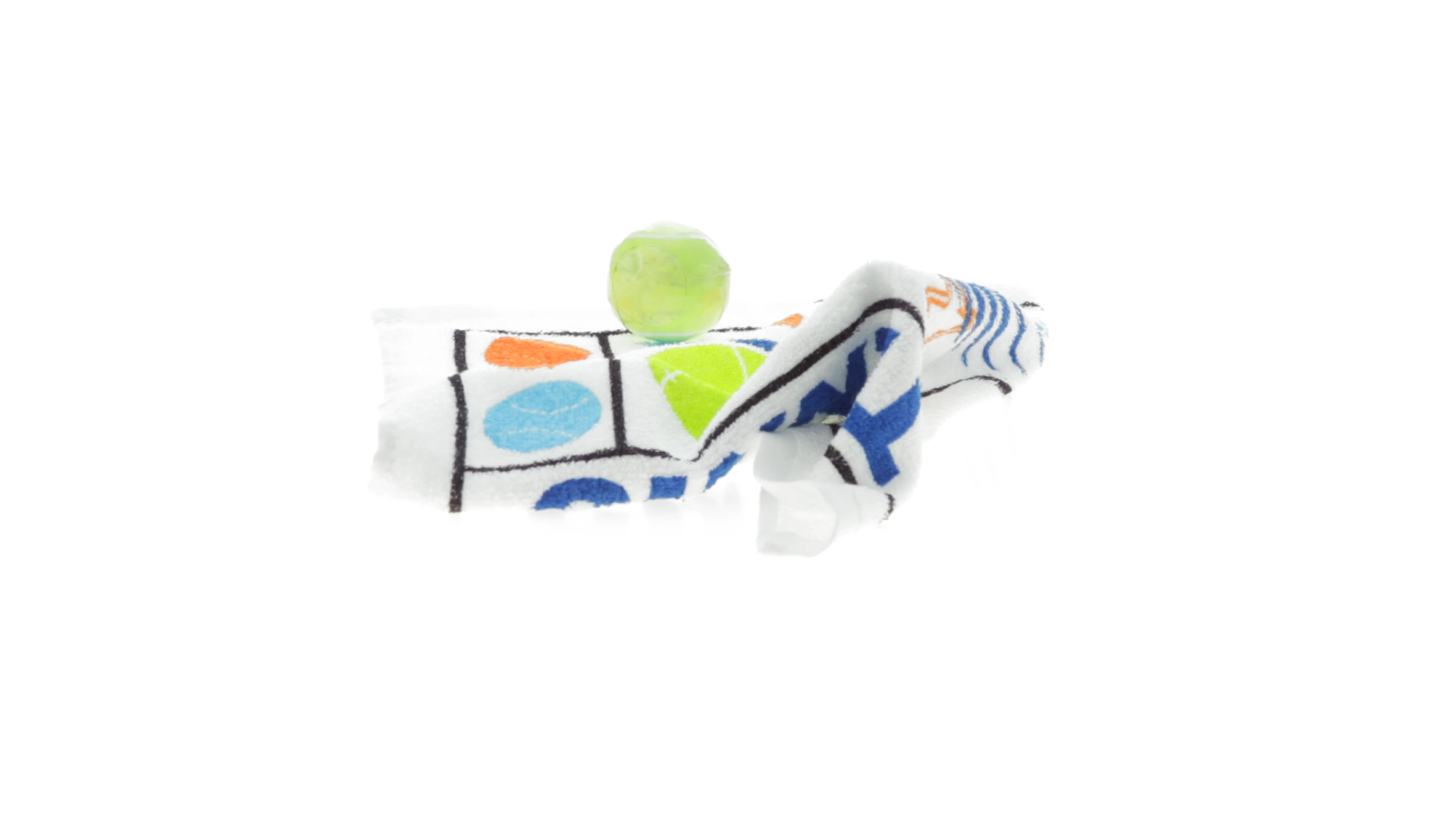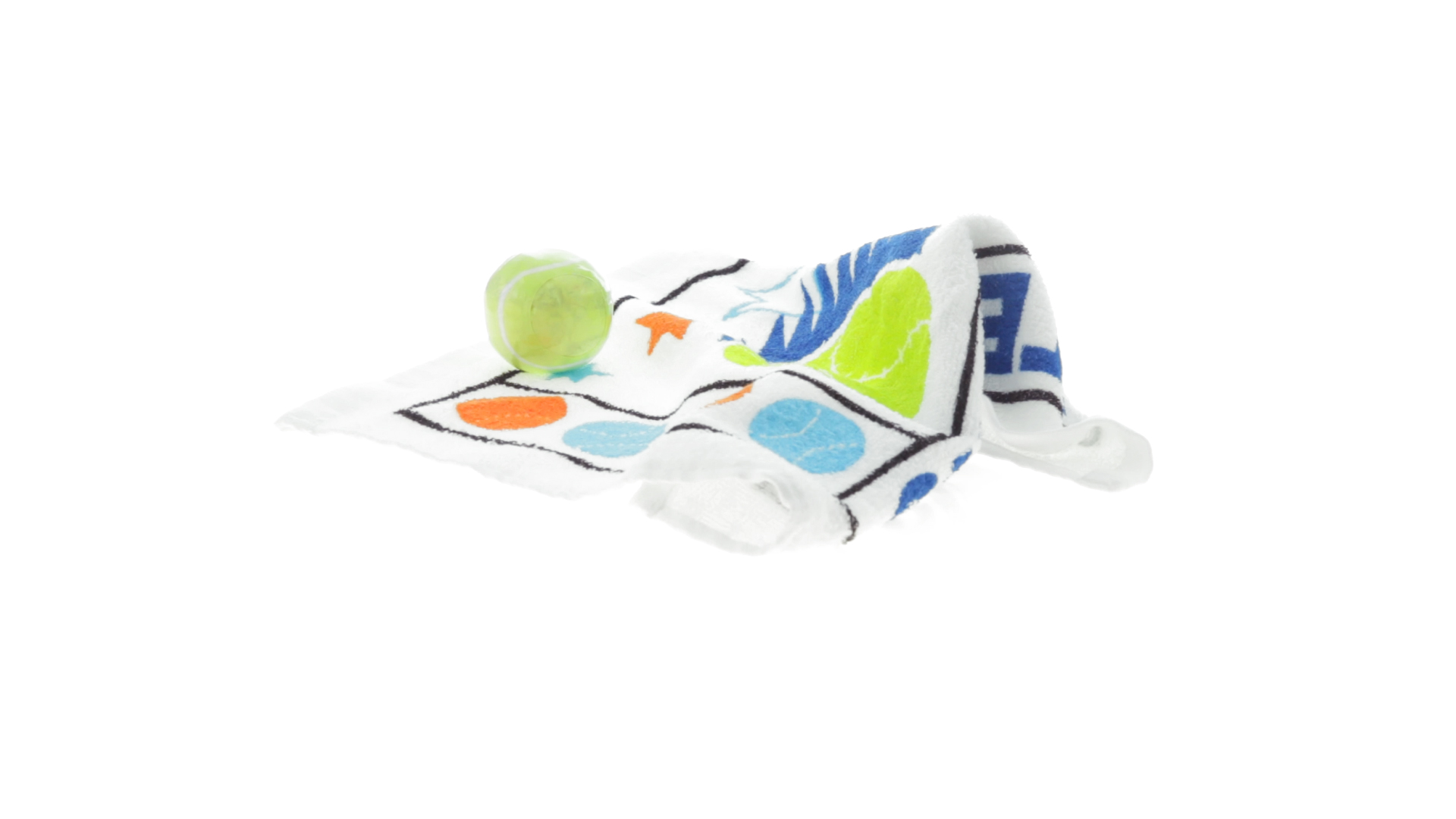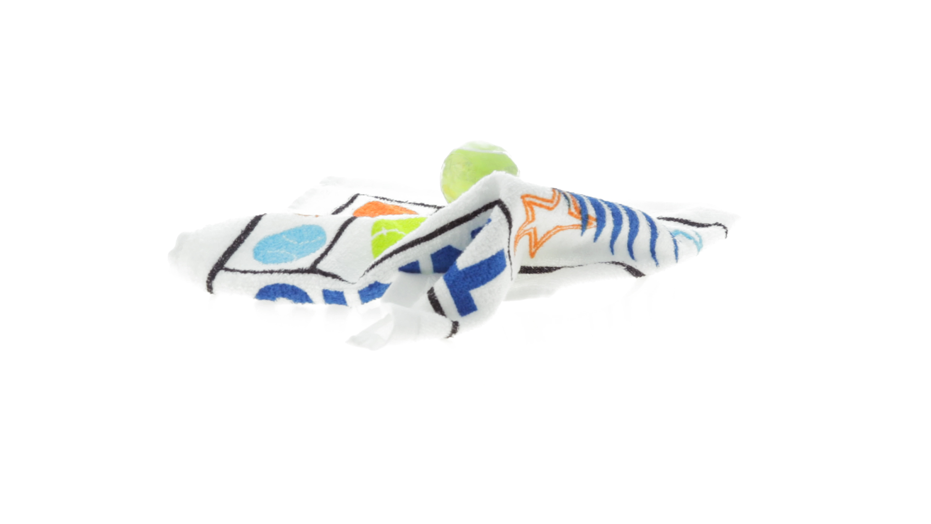 Originelles Handtuch aus Baumwolle (245 g/m2) in einem Ball des jeweiligen Designs des Handtuchs - Fussball, Basketball, Tennis oder Golf. Verpackung des Balls in einer Plastikhülle. Präsentiert in einem Polyesterbeutel mit Metallkarabiner.