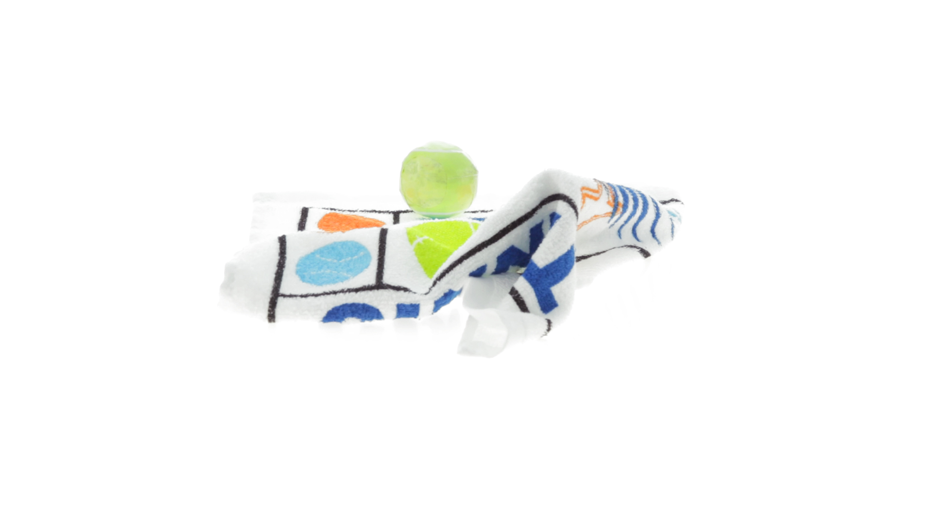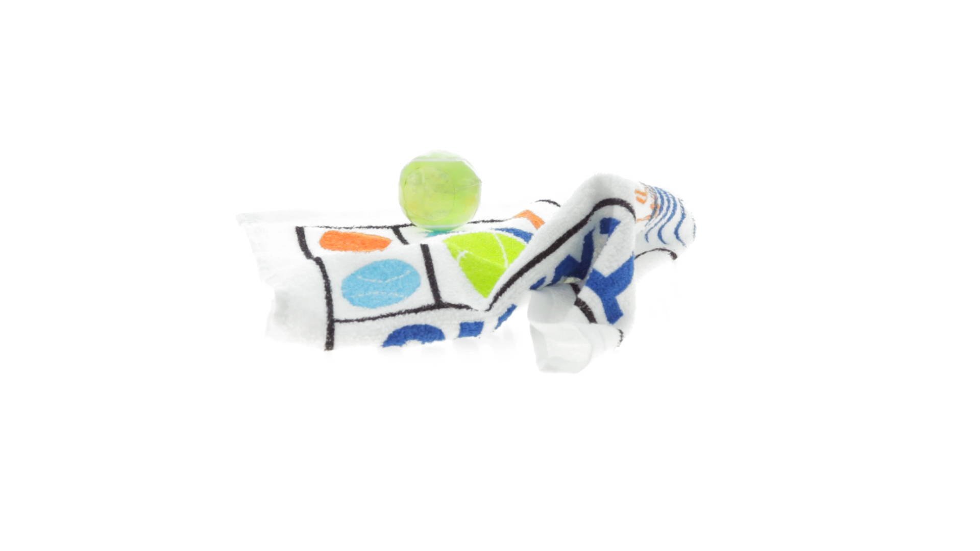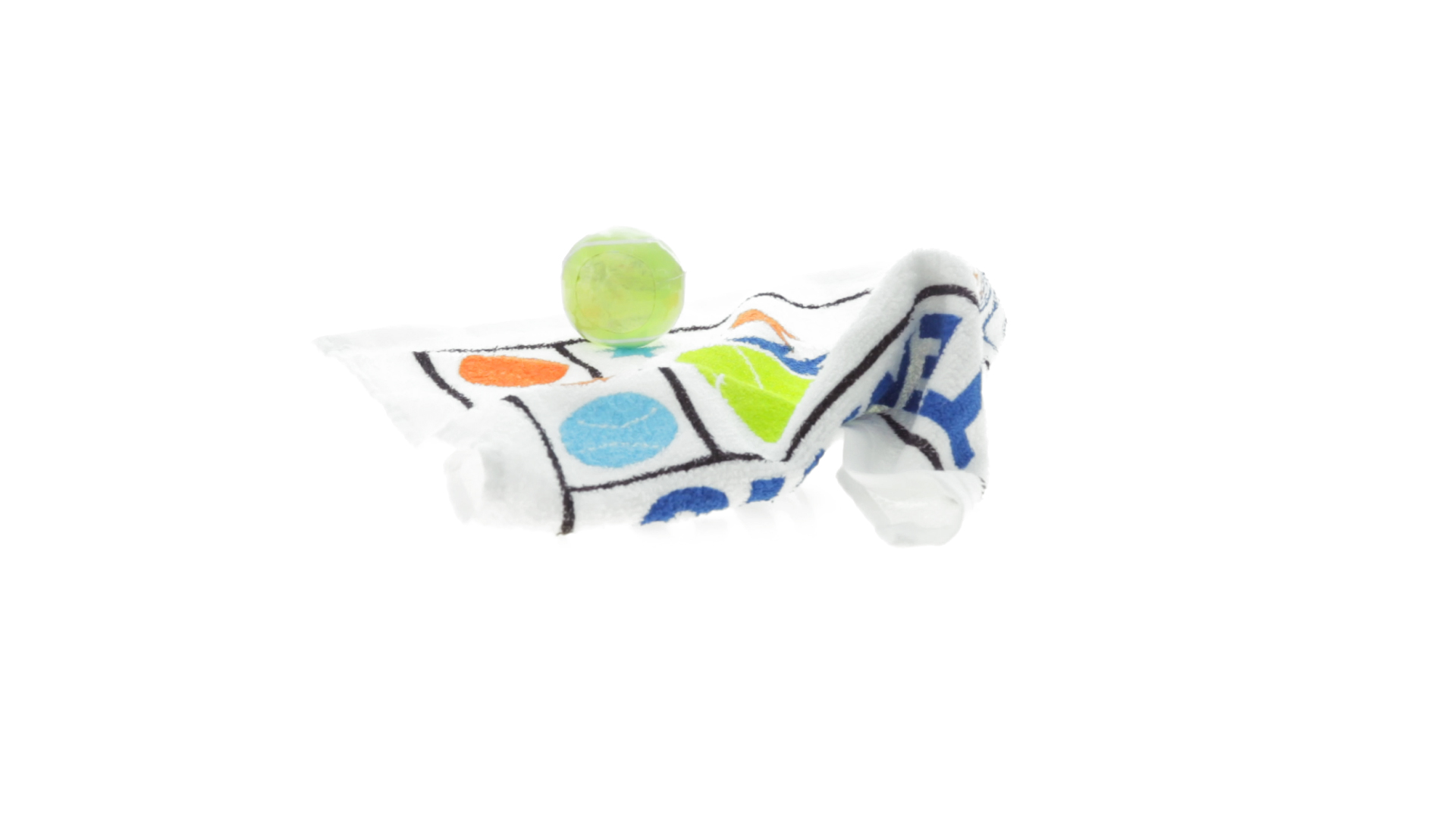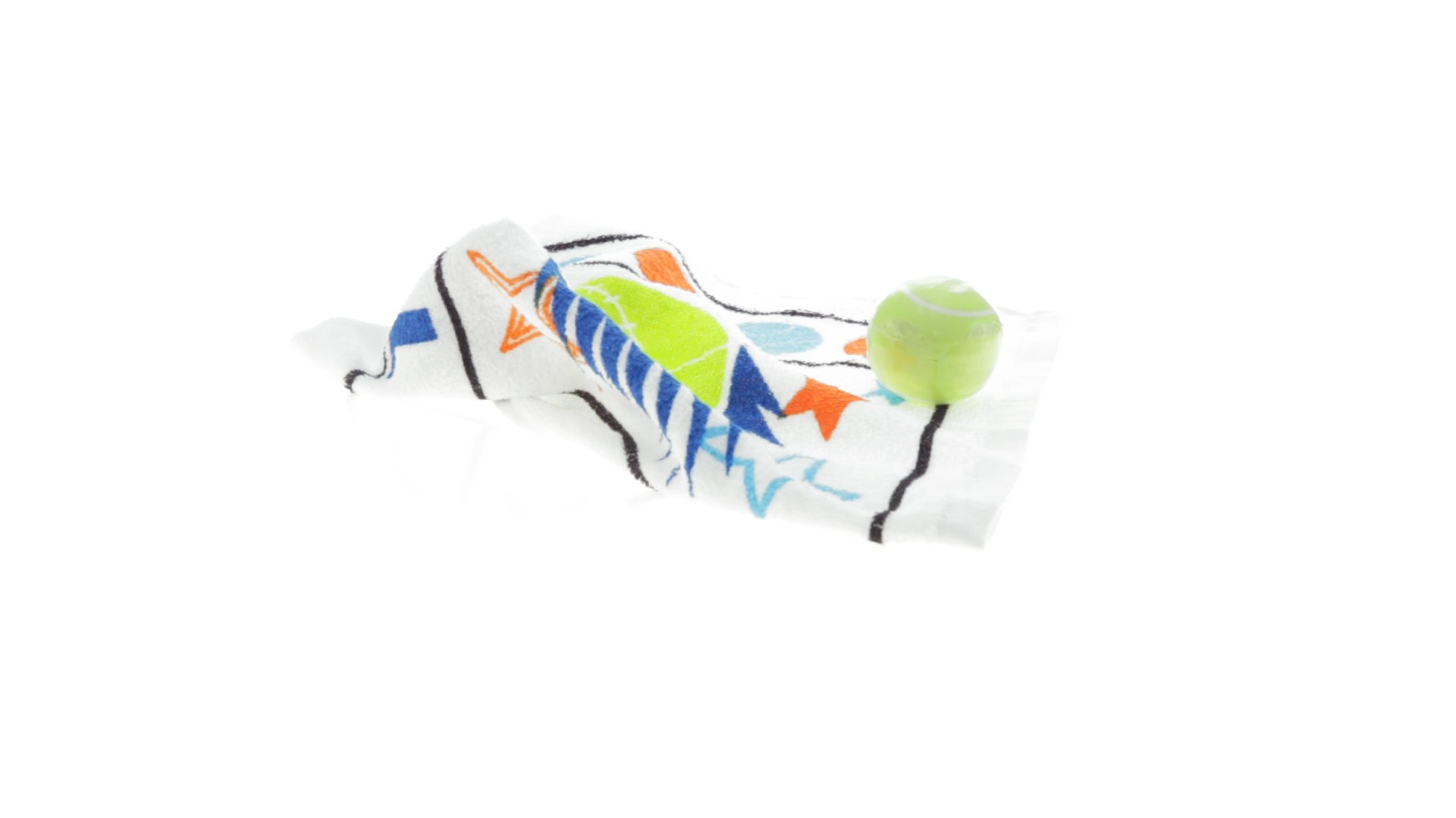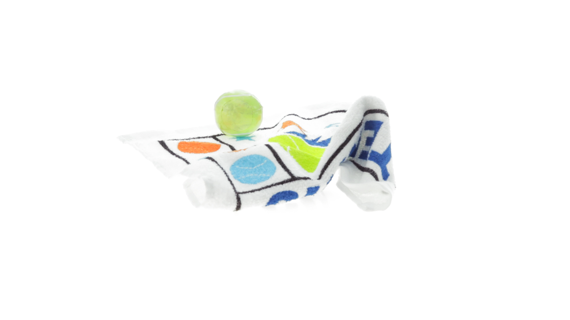 Originelles Handtuch aus Baumwolle (245 g/m2) in einem Ball des jeweiligen Designs des Handtuchs - Fussball, Basketball, Tennis oder Golf. Verpackung des Balls in einer Plastikhülle. Präsentiert in einem Polyesterbeutel mit Metallkarabiner.