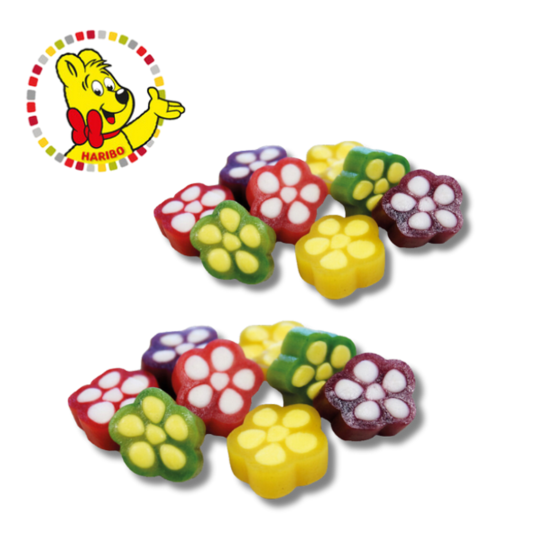 Die HARIBO Bunte Blümchen bieten eine fröhliche Mischung aus verschiedenen Fruchtgummisorten wie Apfel, Erdbeere, Kirsche und Zitrone. Die Form der Fruchtgummis bleibt dabei immer im beliebten HARIBO-Stil.