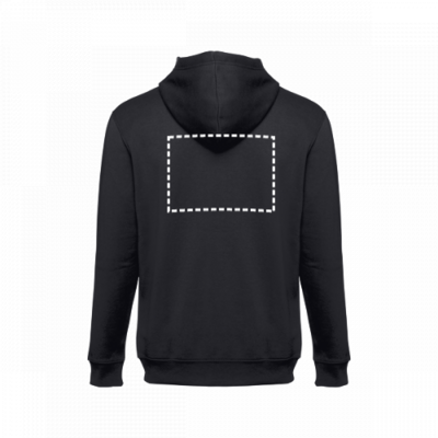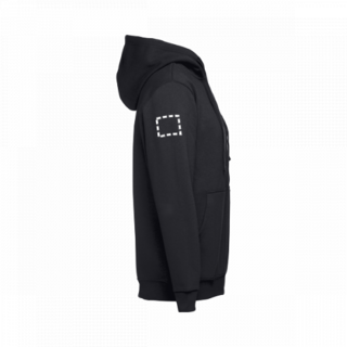 Herren Sweatjacke aus 50% Baumwolle und 50% Polyester (320g/m²) mit Reissverschluss und gefütterter Kapuze mit Kordelzug. Kardiert mit 2 Kängurutaschen, einem verdeckten Kunststoffreissverschluss und einem gerripten Bund. Grössen: S, M, L, XL, XXL