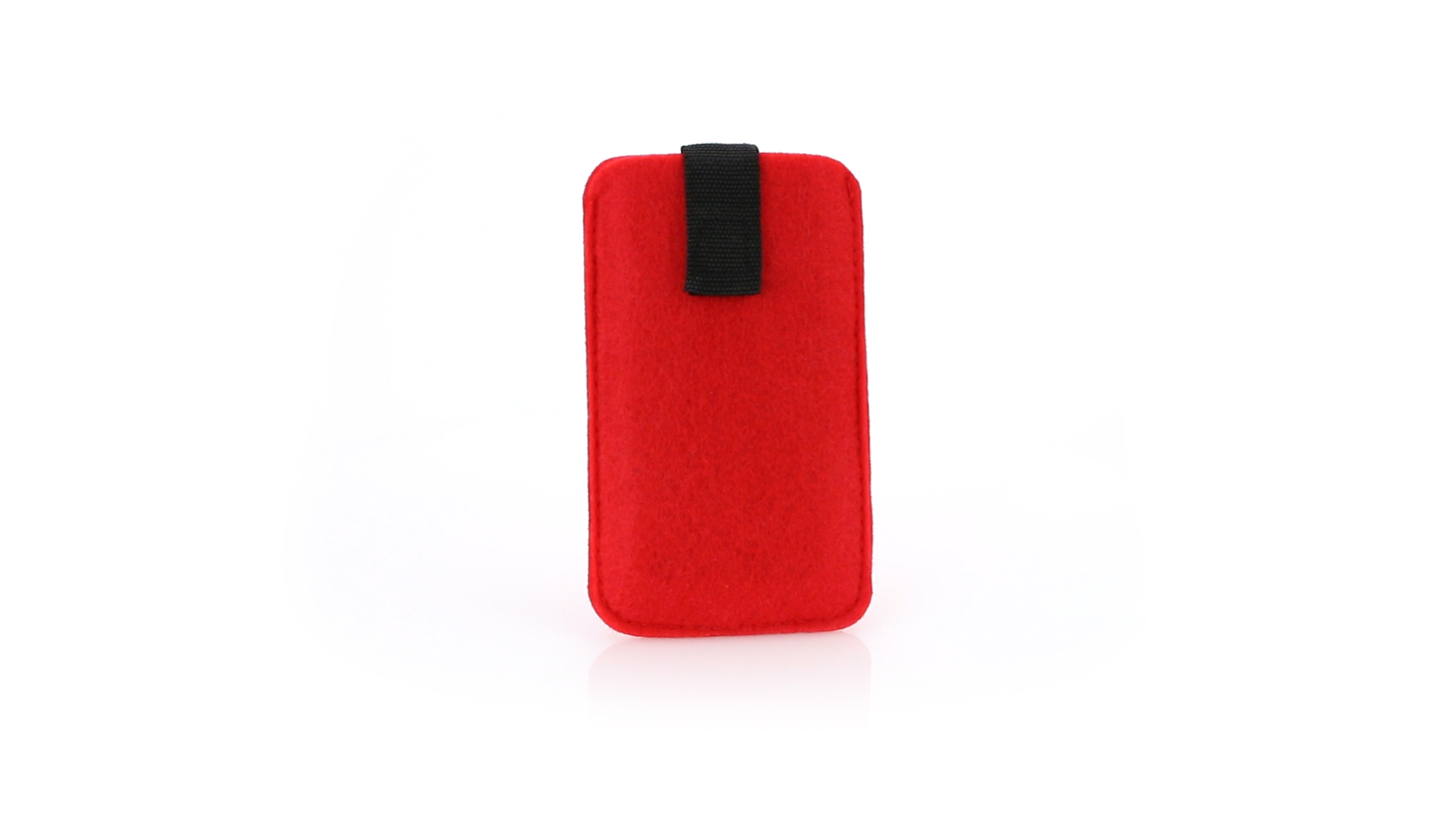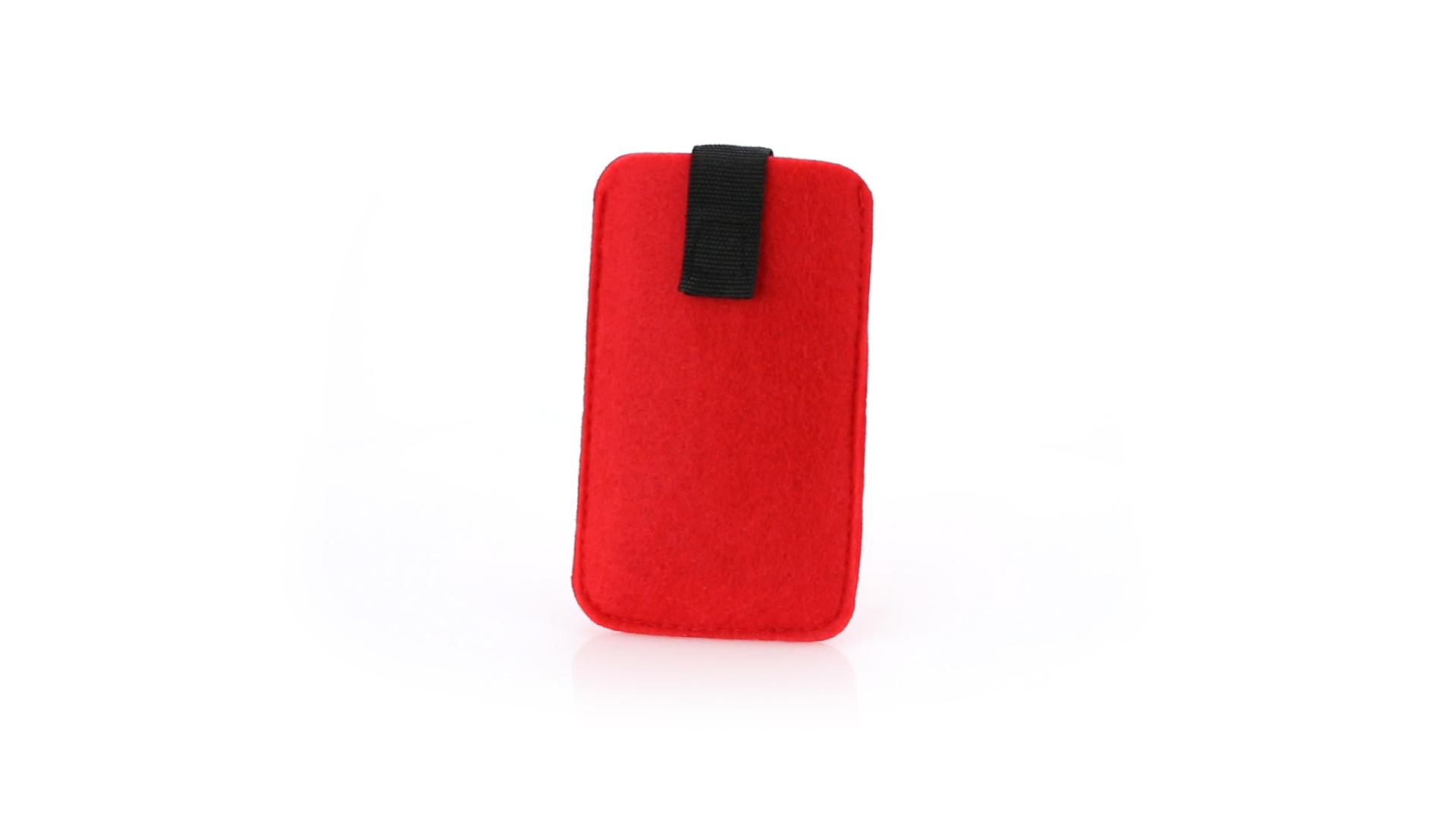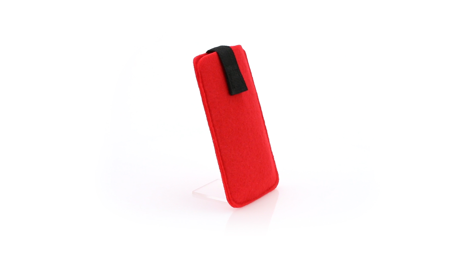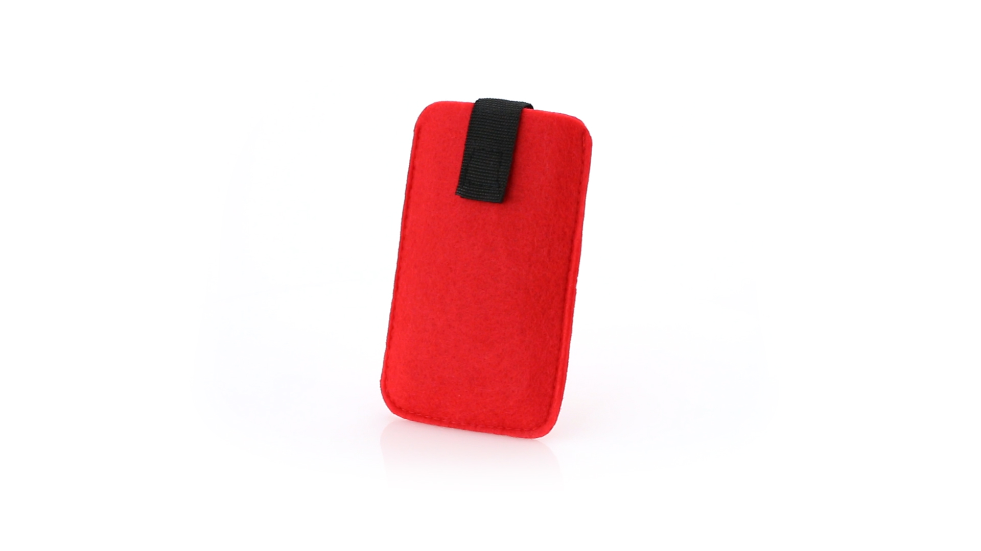 Praktische Hülle für Smartphone mit Klettverschluss. Aus weichem Filz in auffälligen Farben.