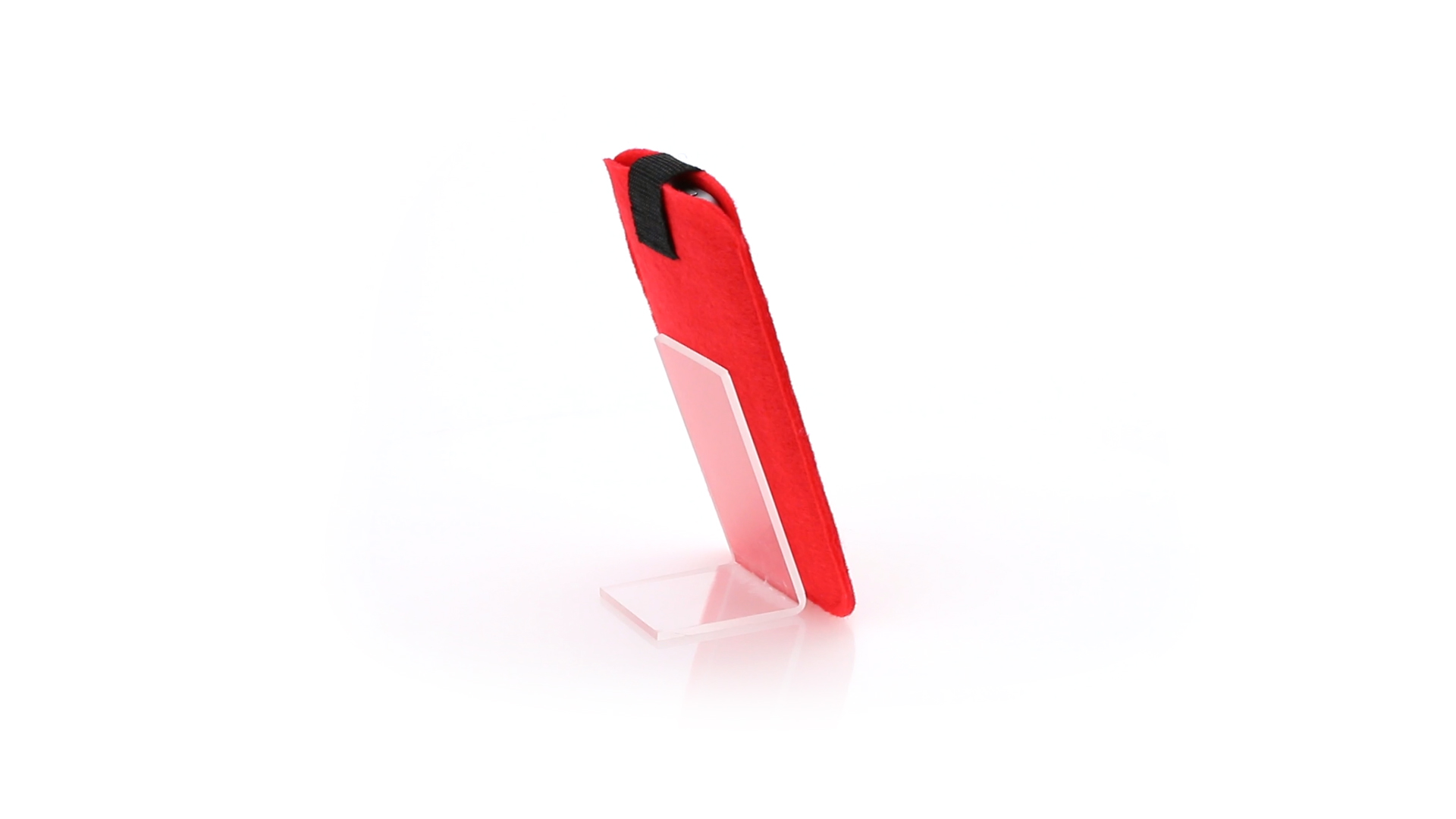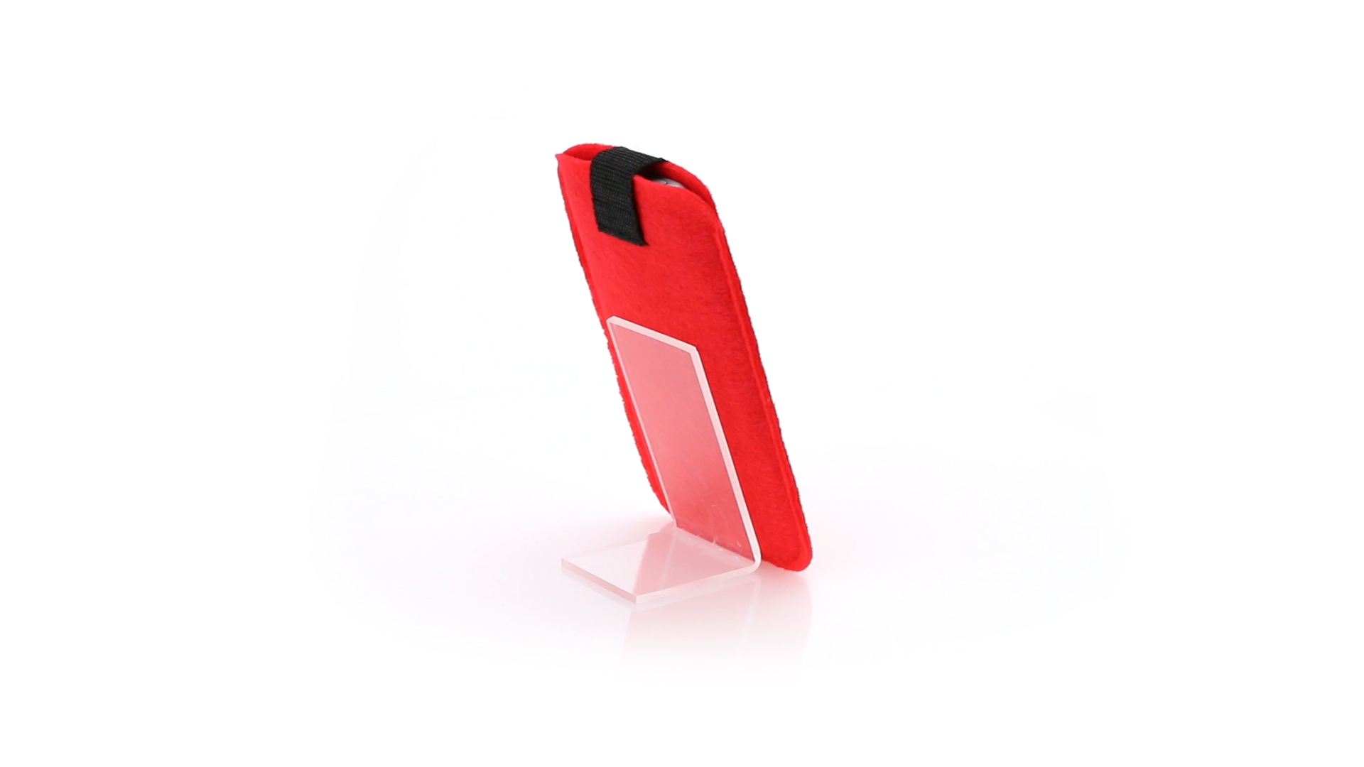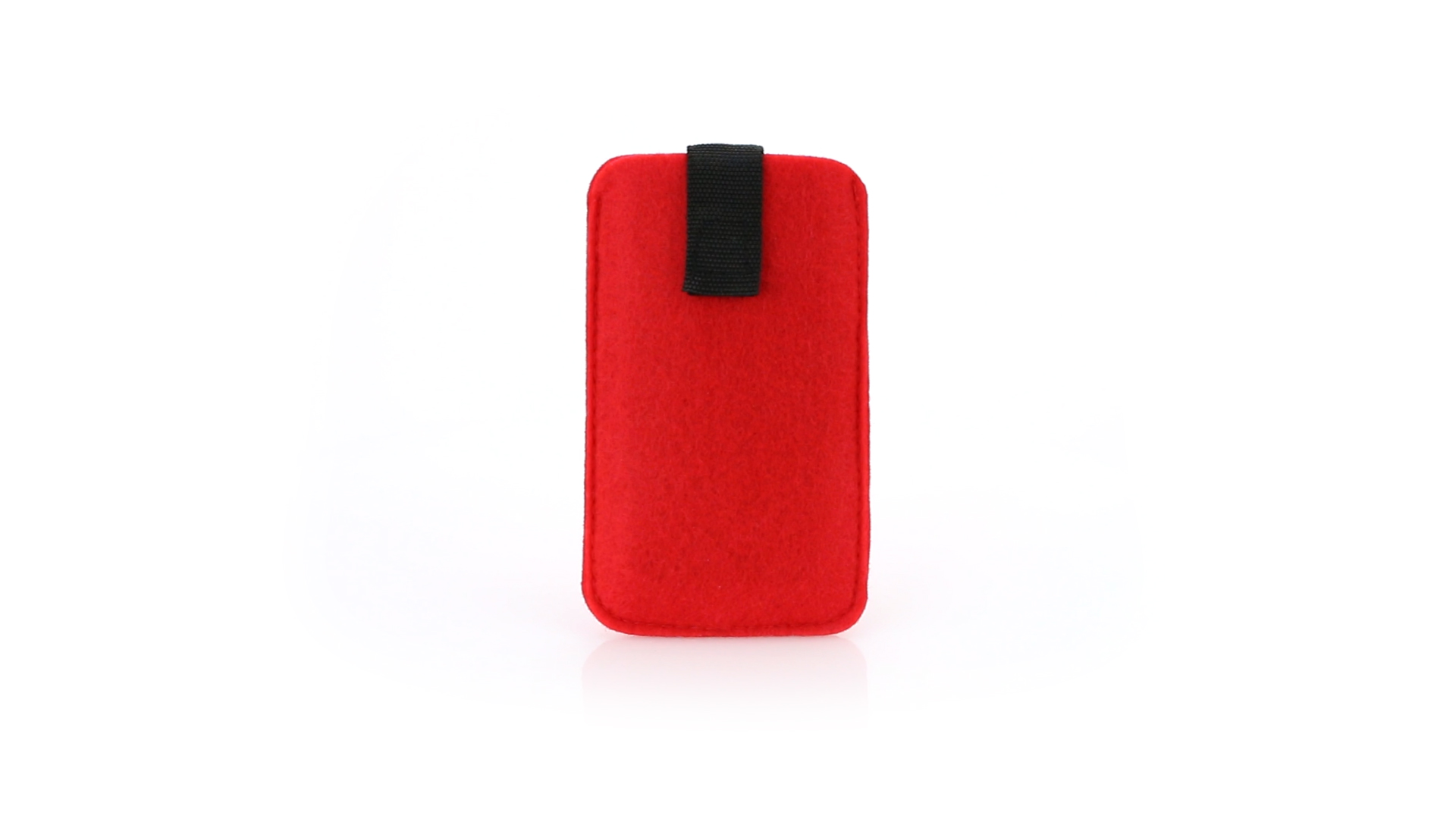 Praktische Hülle für Smartphone mit Klettverschluss. Aus weichem Filz in auffälligen Farben.