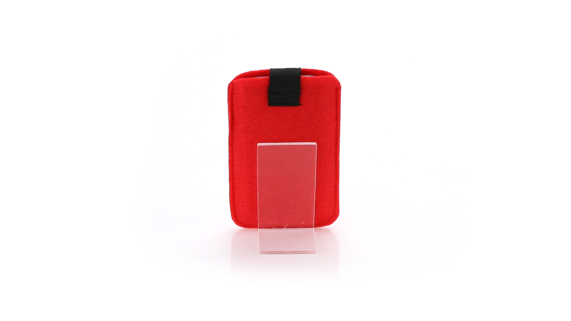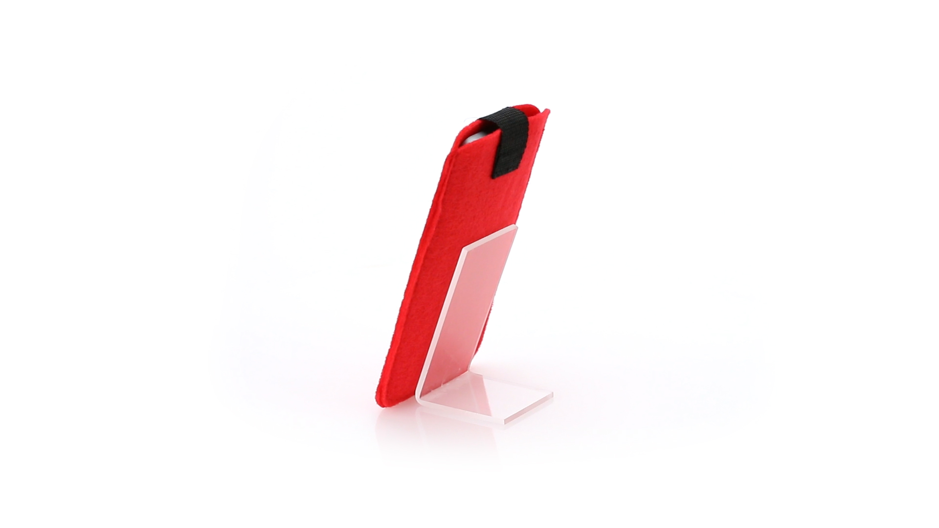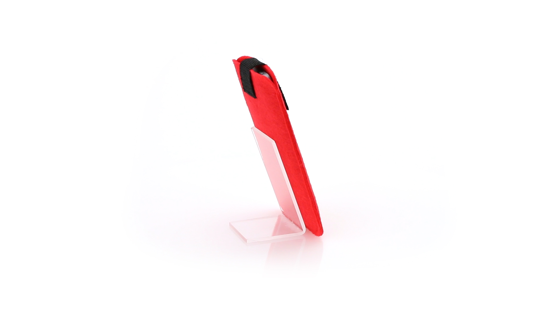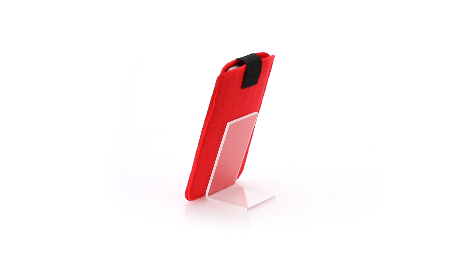 Praktische Hülle für Smartphone mit Klettverschluss. Aus weichem Filz in auffälligen Farben.