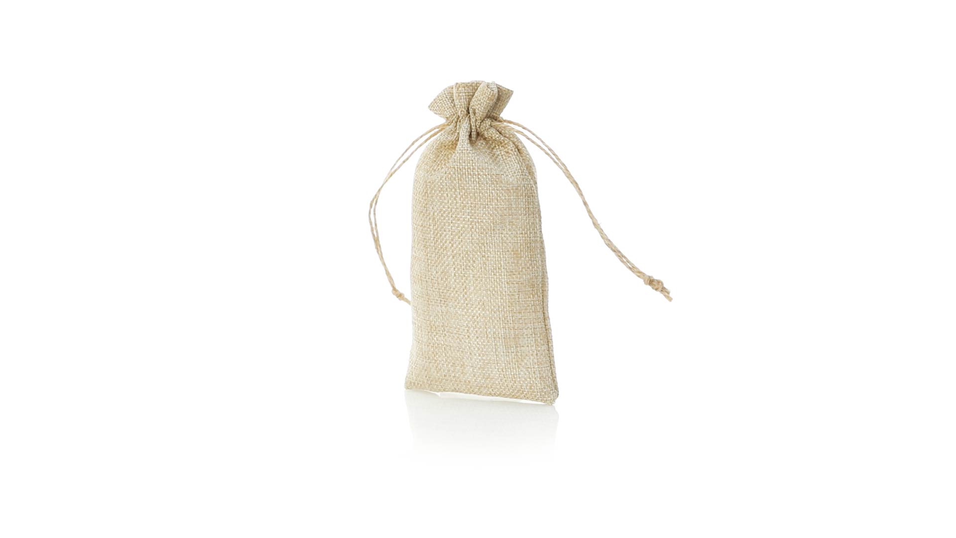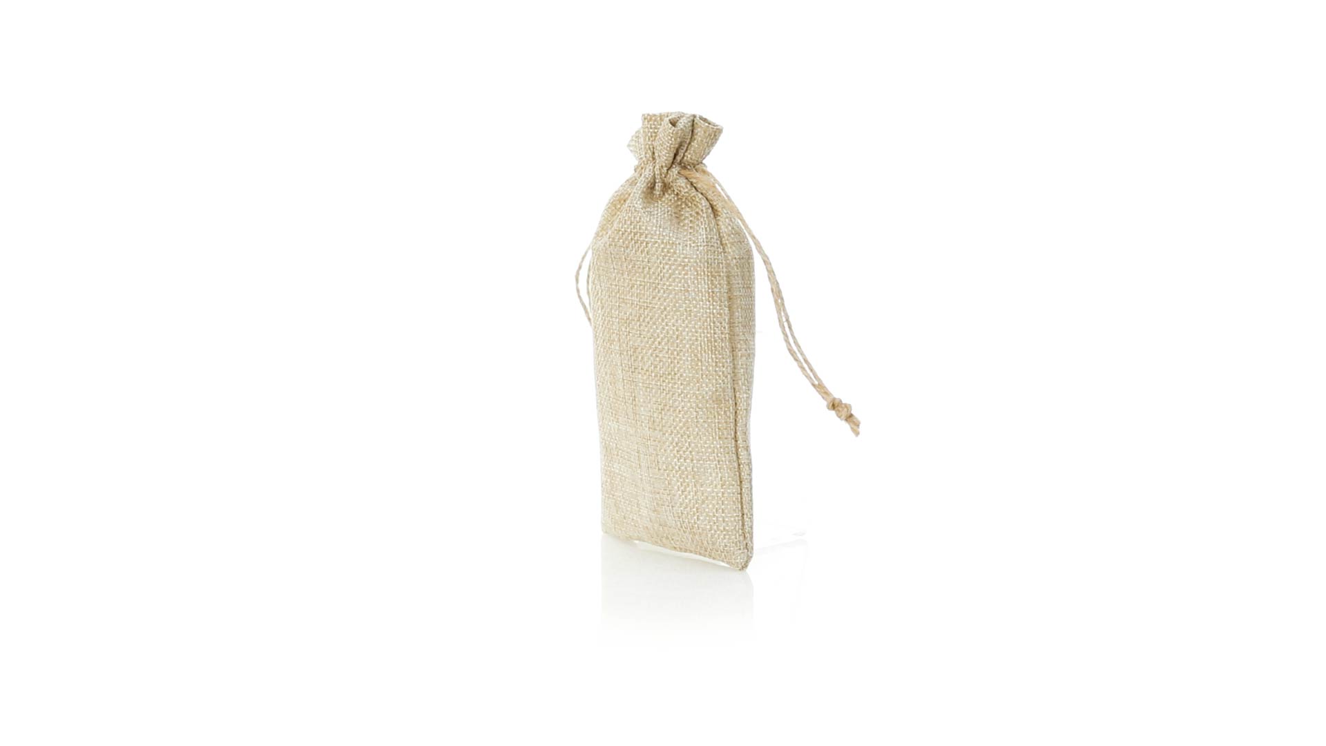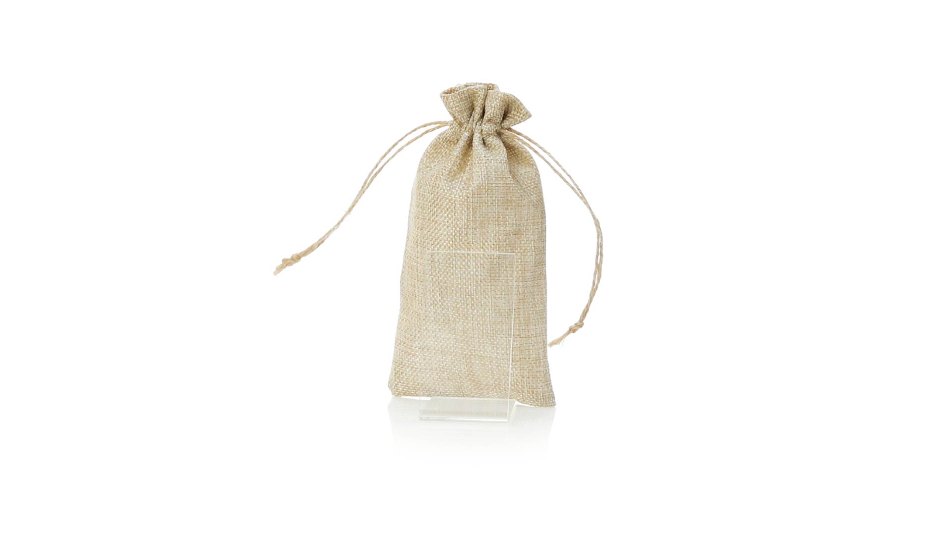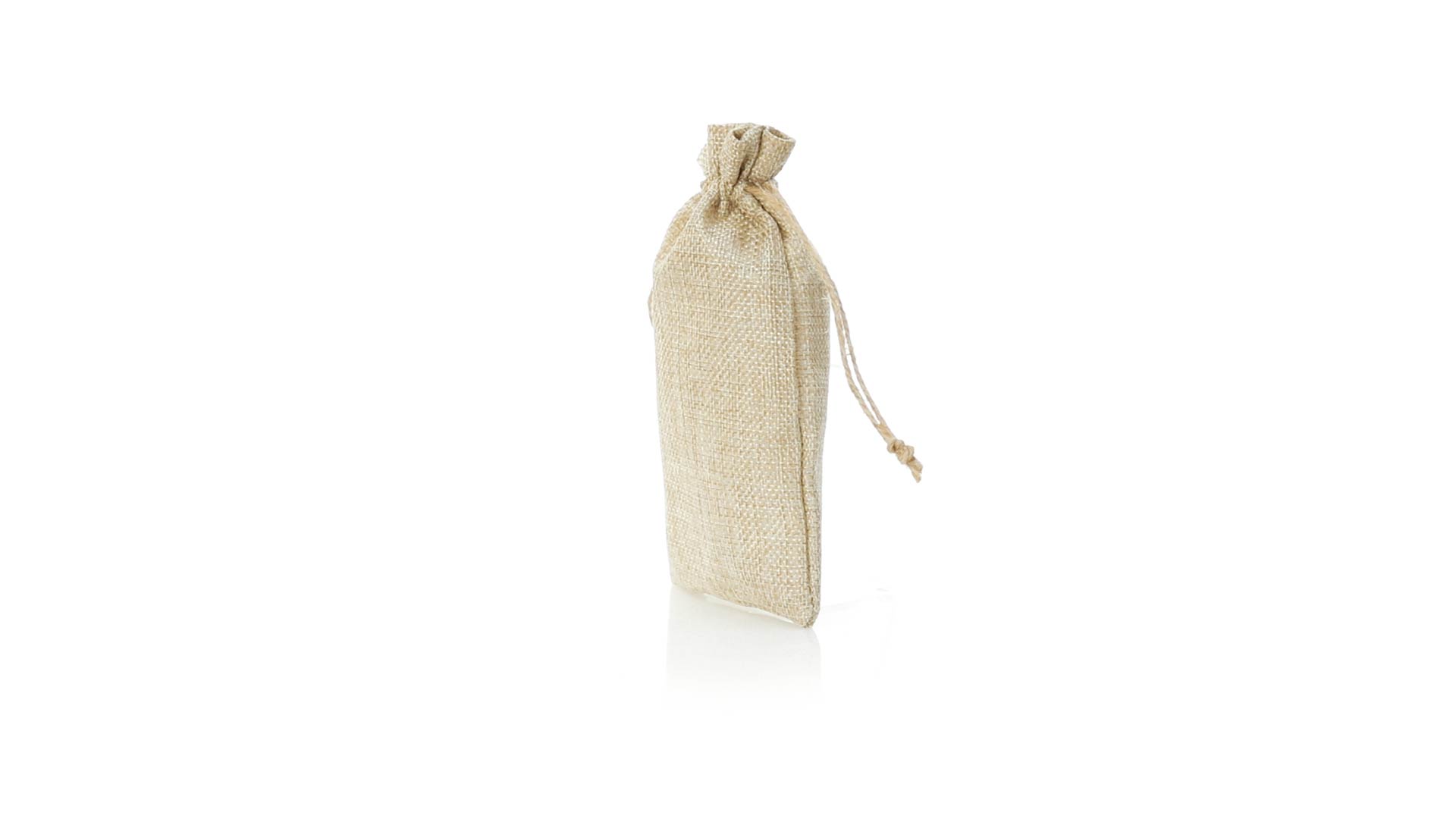 Polyesterbeutel in Rohausführung, mit verstellbaren Schnüren und weicher Innenseite.