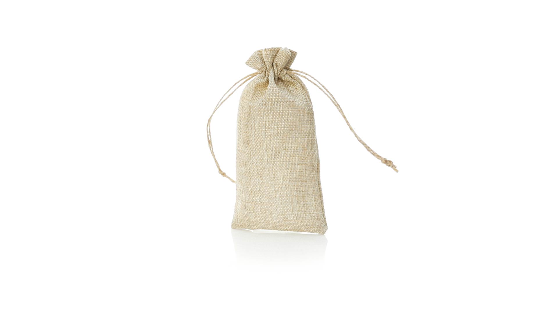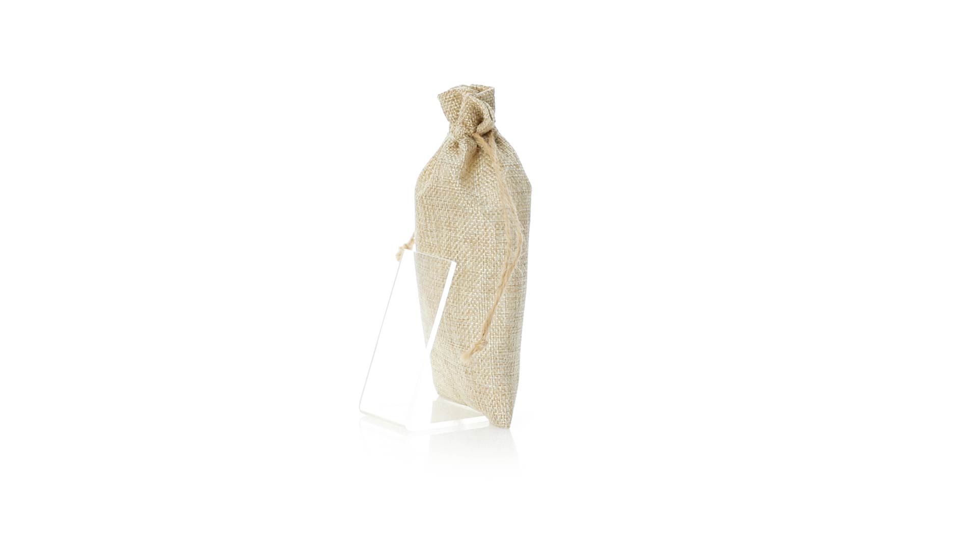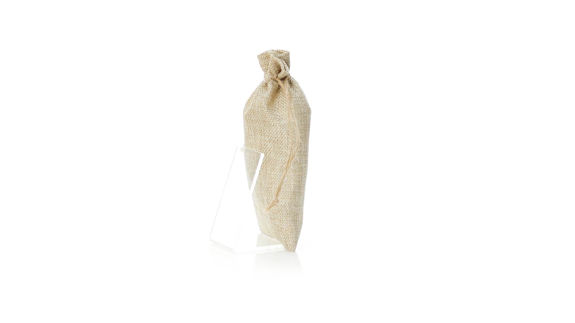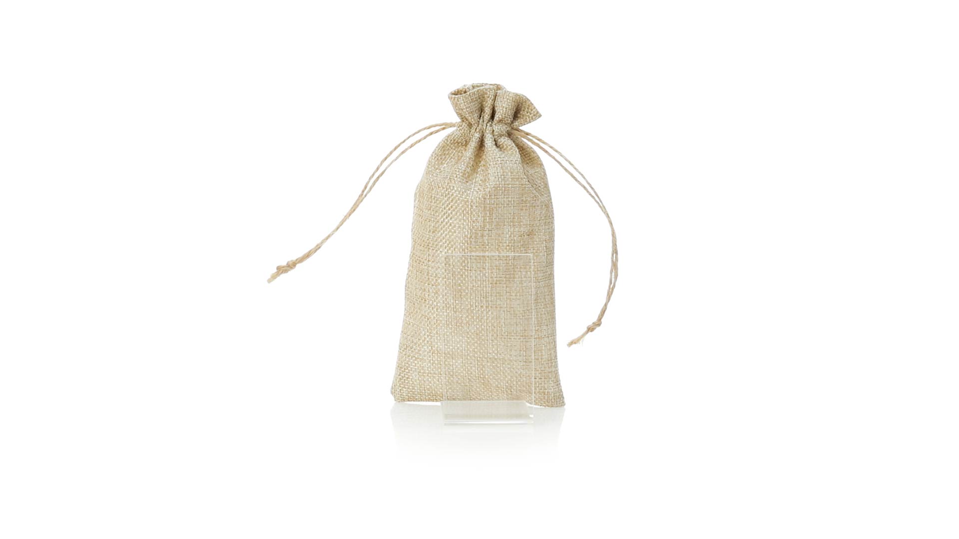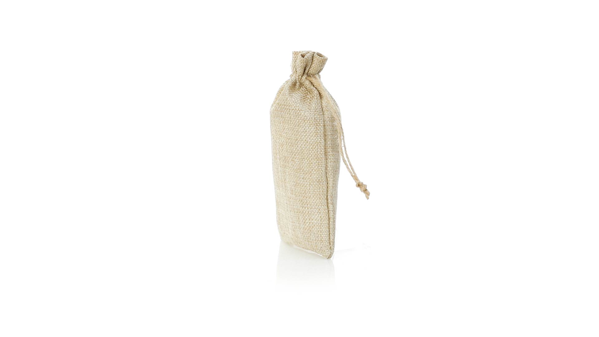 Polyesterbeutel in Rohausführung, mit verstellbaren Schnüren und weicher Innenseite.