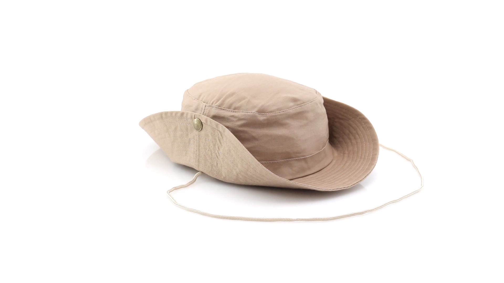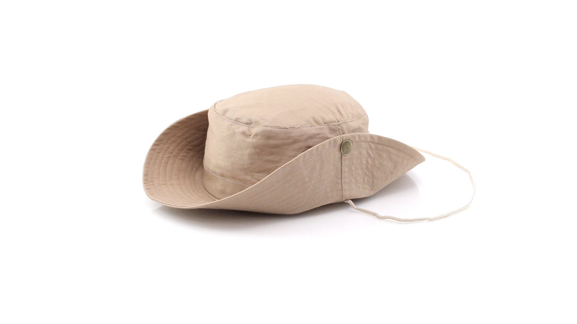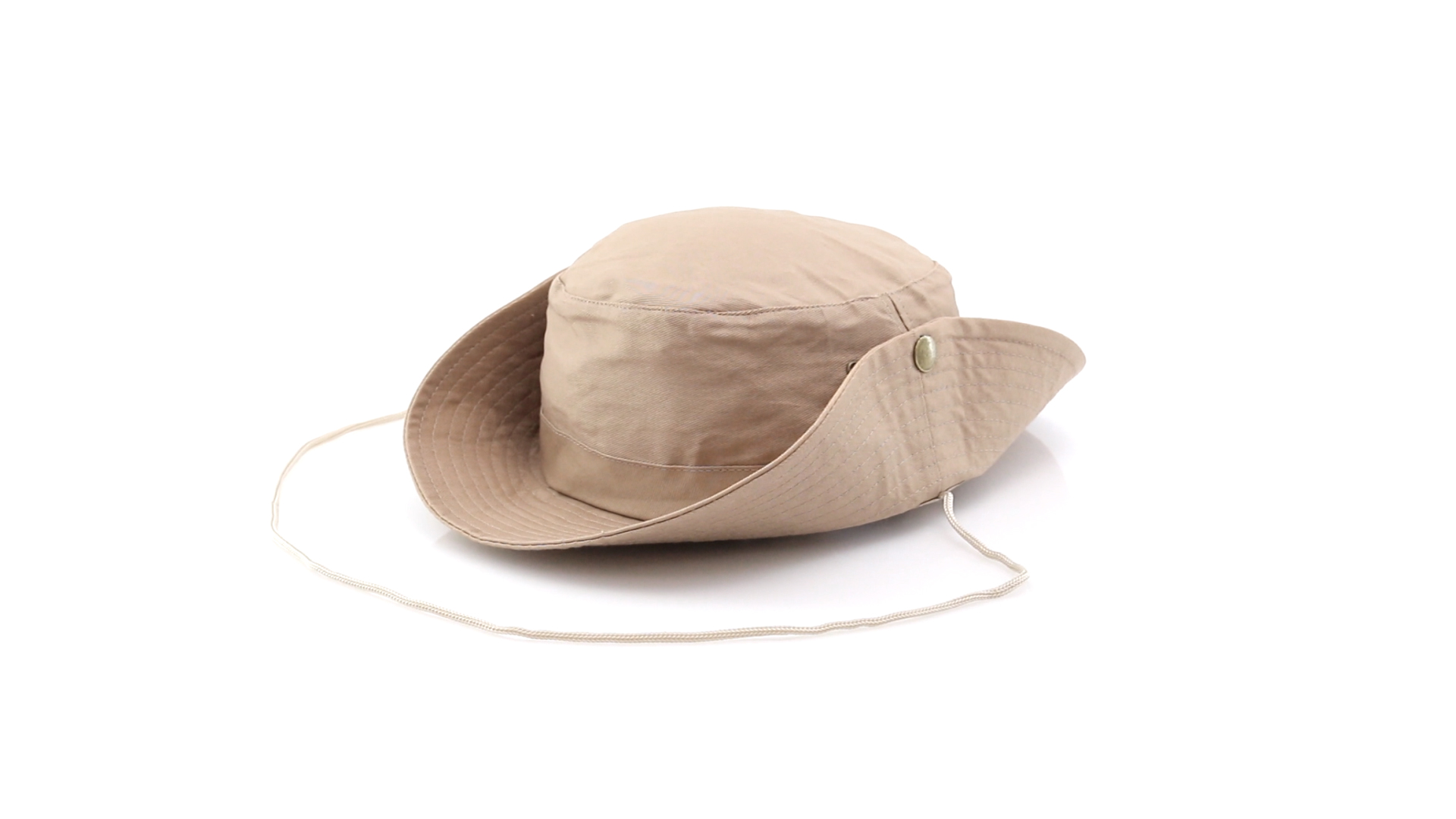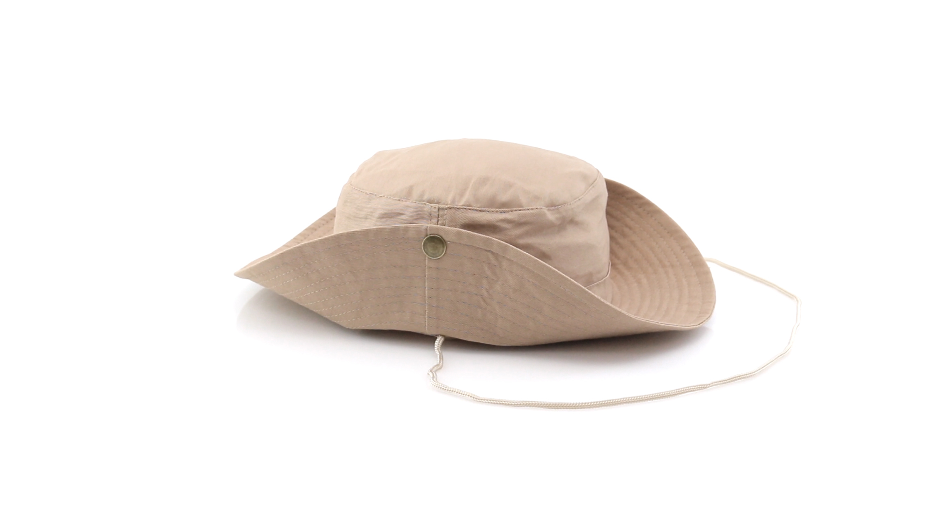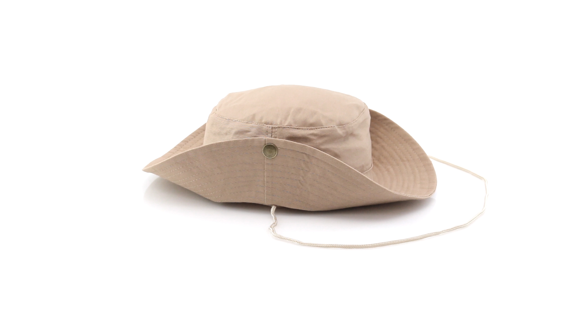 Safarihut aus Baumwolle. Angenehm zu tragen und mit seitlichen Belüftungsöffnungen, verstärkt mit Metallösen. Mit verstellbarer Krempe mit Druckknöpfen sowie farblich passendem Hutband.