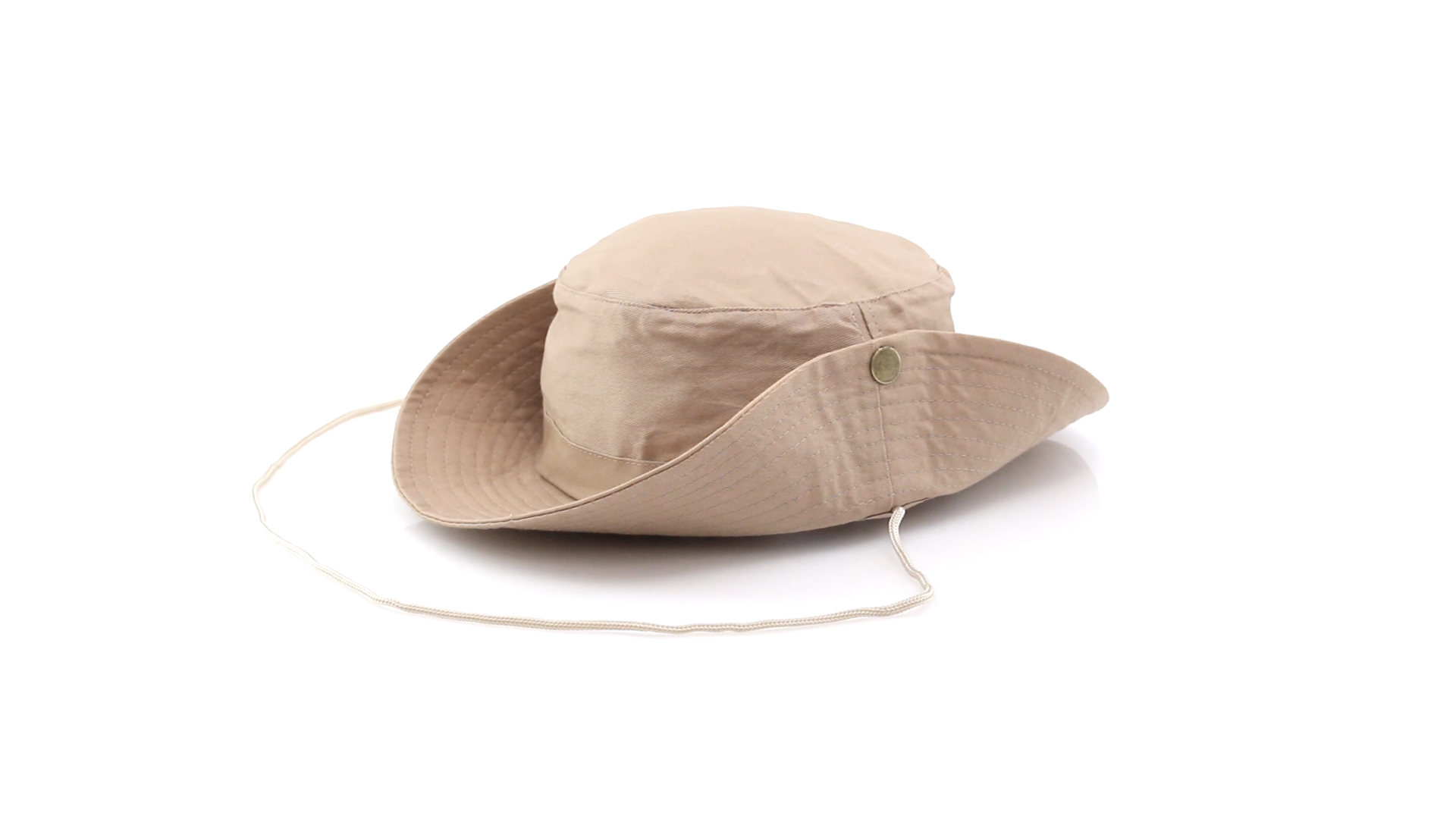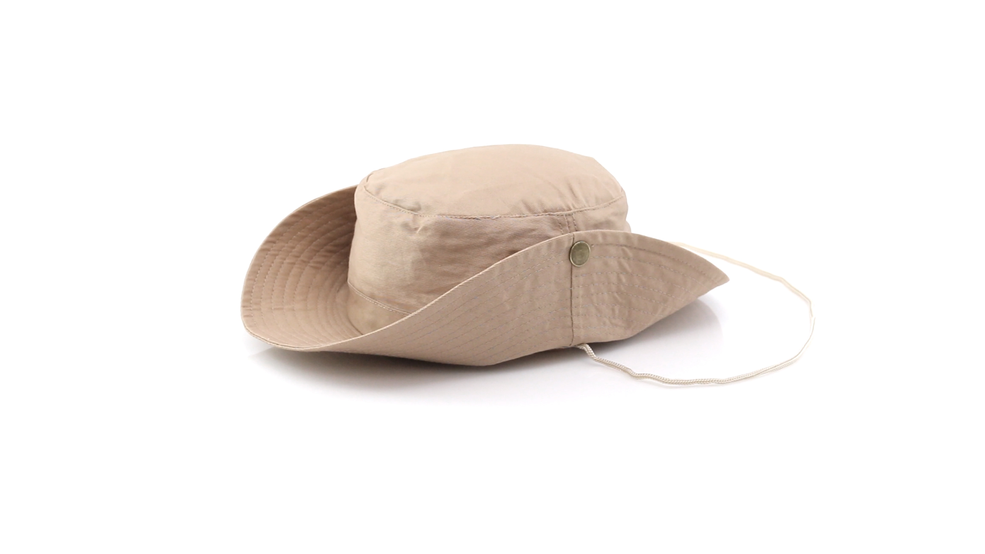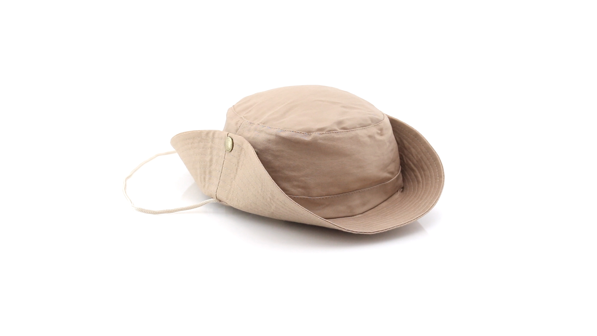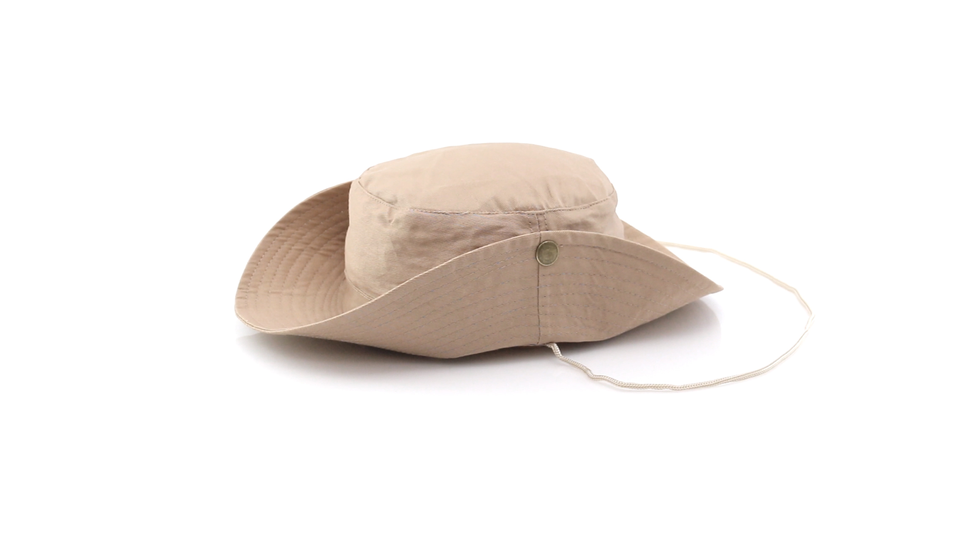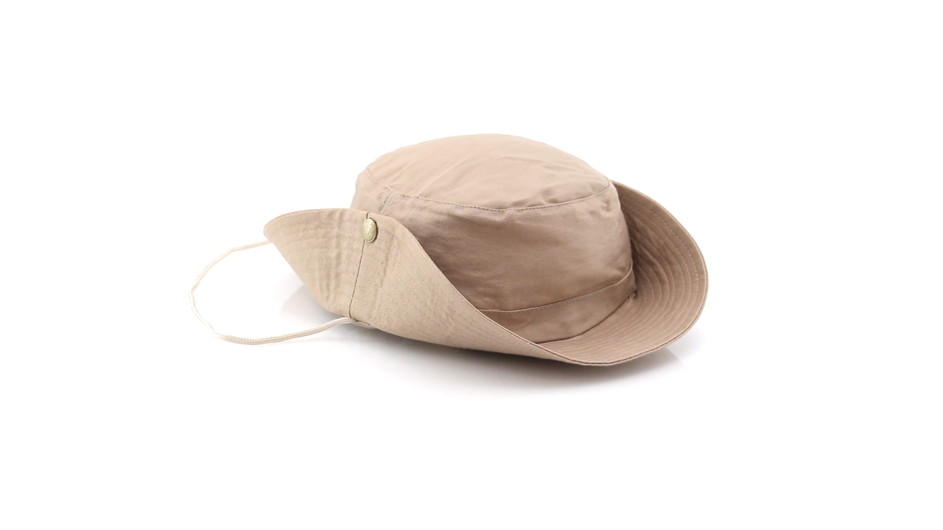 Safarihut aus Baumwolle. Angenehm zu tragen und mit seitlichen Belüftungsöffnungen, verstärkt mit Metallösen. Mit verstellbarer Krempe mit Druckknöpfen sowie farblich passendem Hutband.