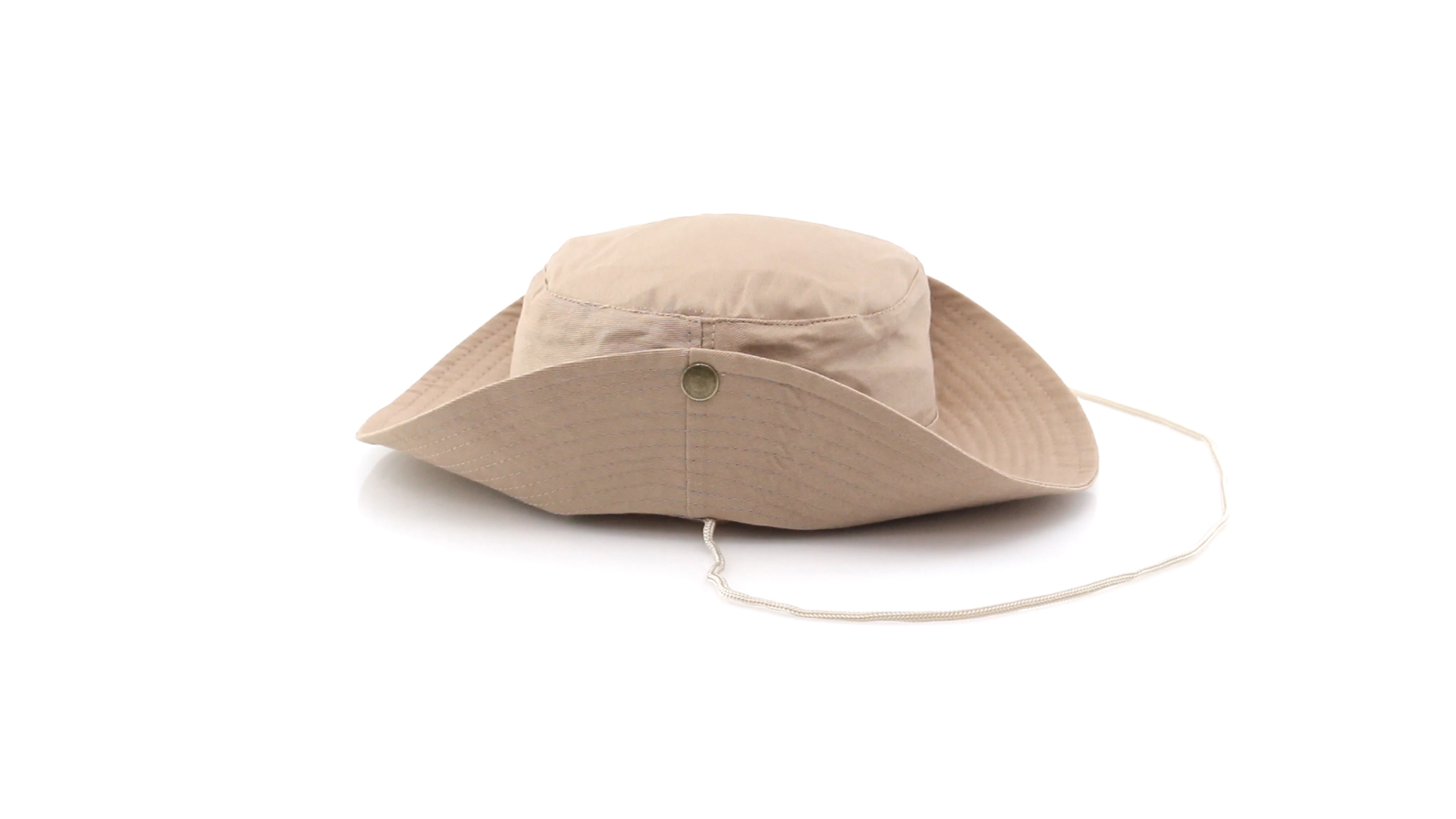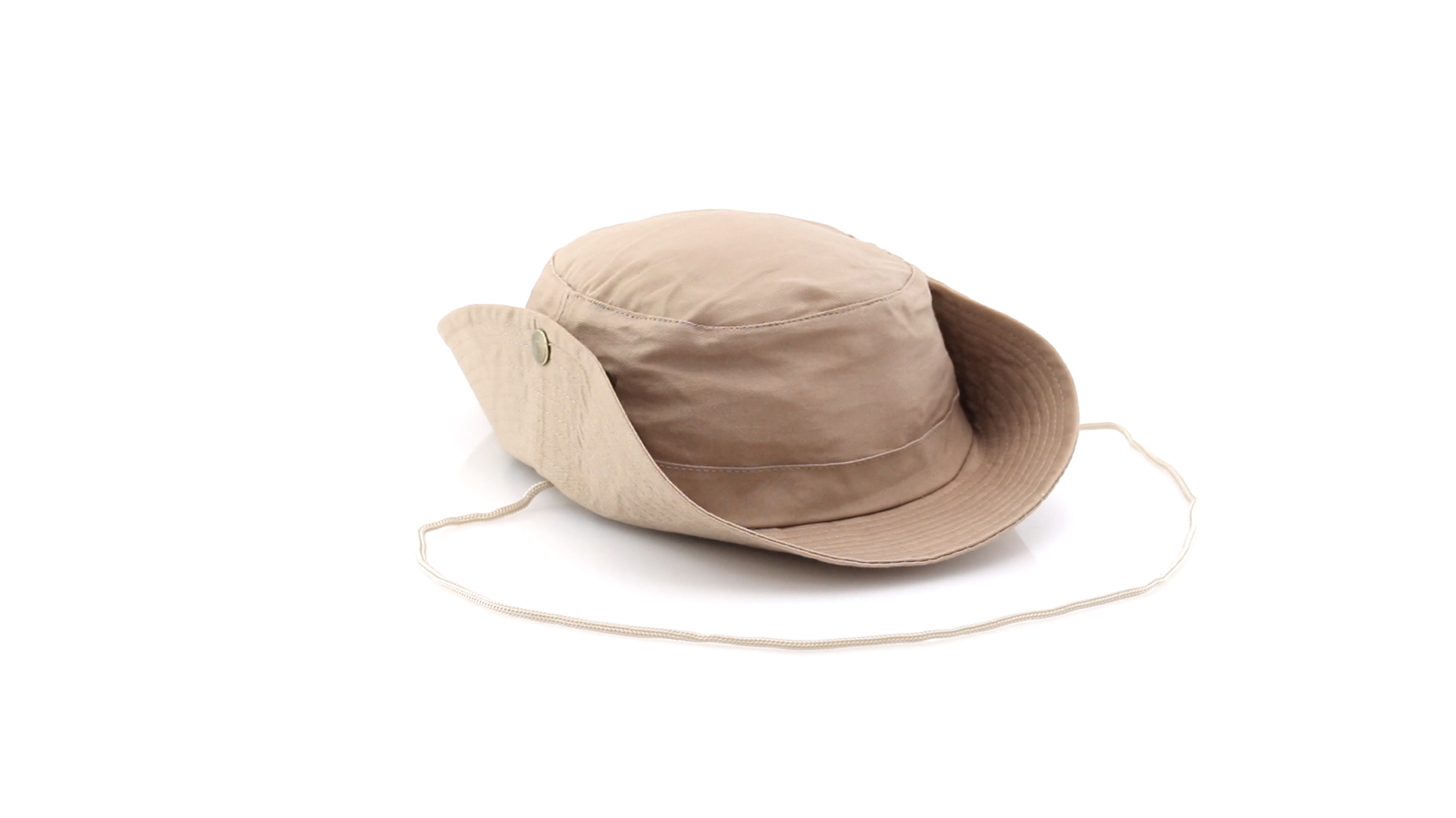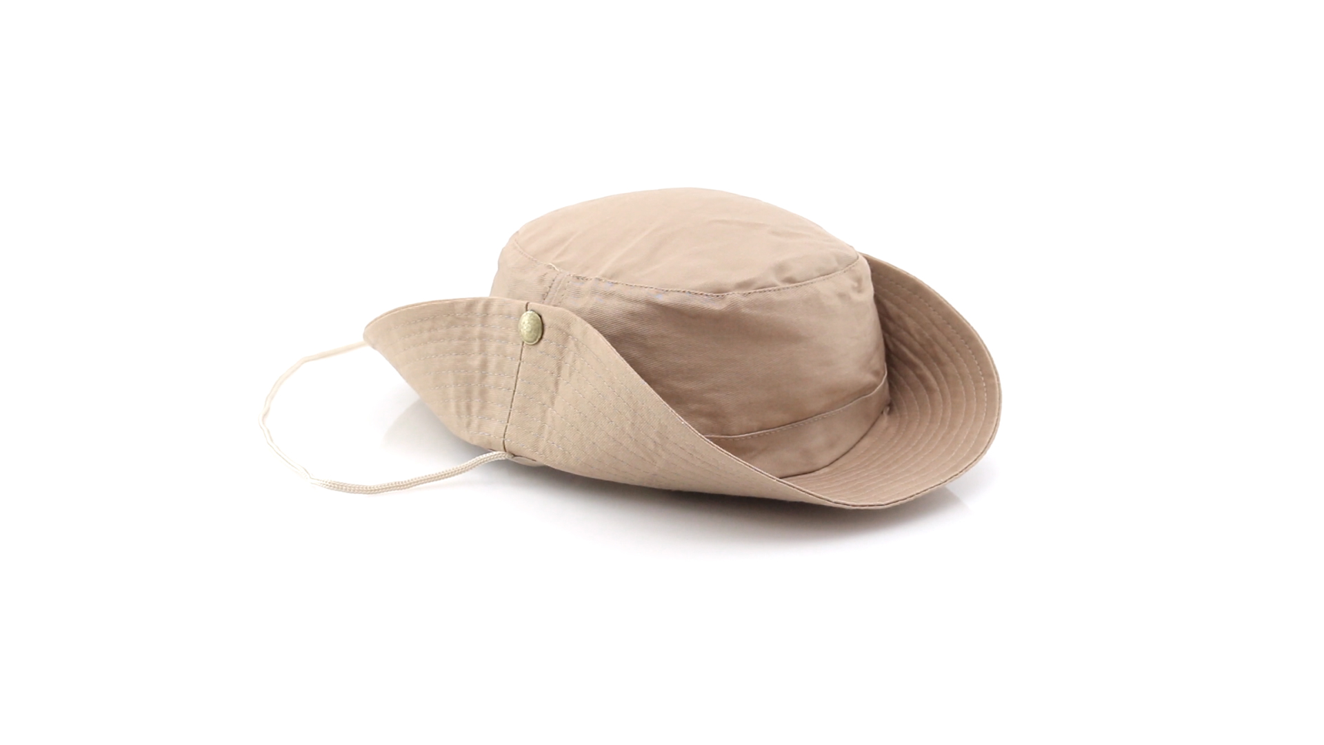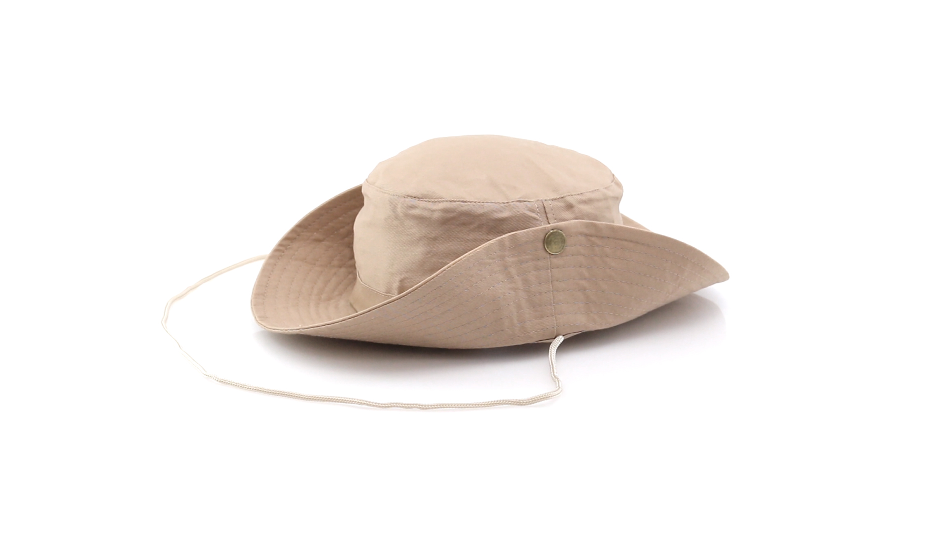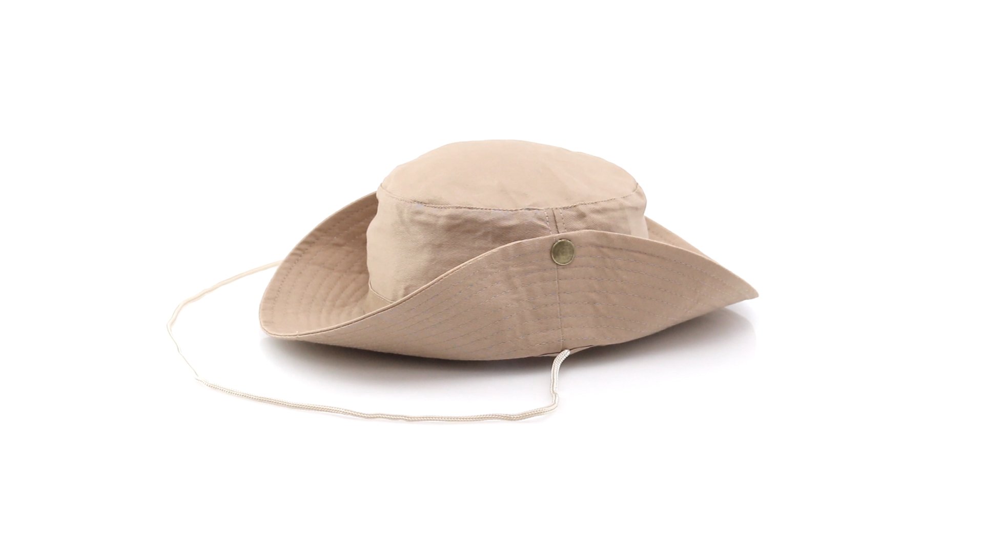 Safarihut aus Baumwolle. Angenehm zu tragen und mit seitlichen Belüftungsöffnungen, verstärkt mit Metallösen. Mit verstellbarer Krempe mit Druckknöpfen sowie farblich passendem Hutband.