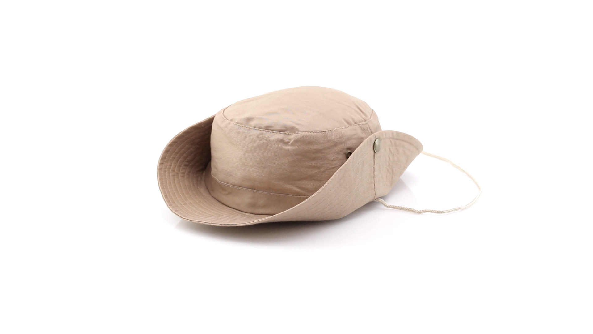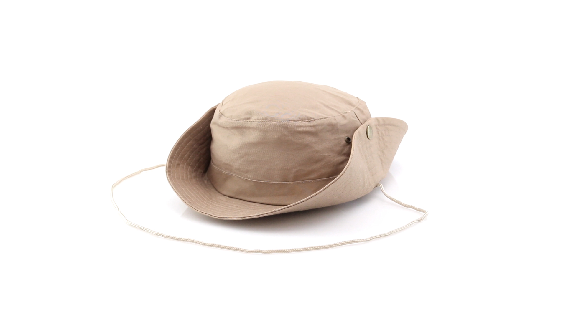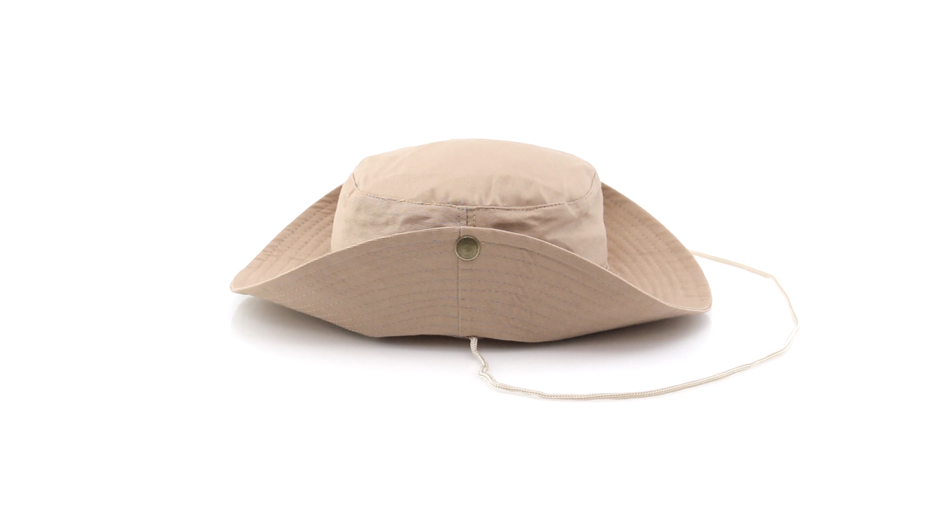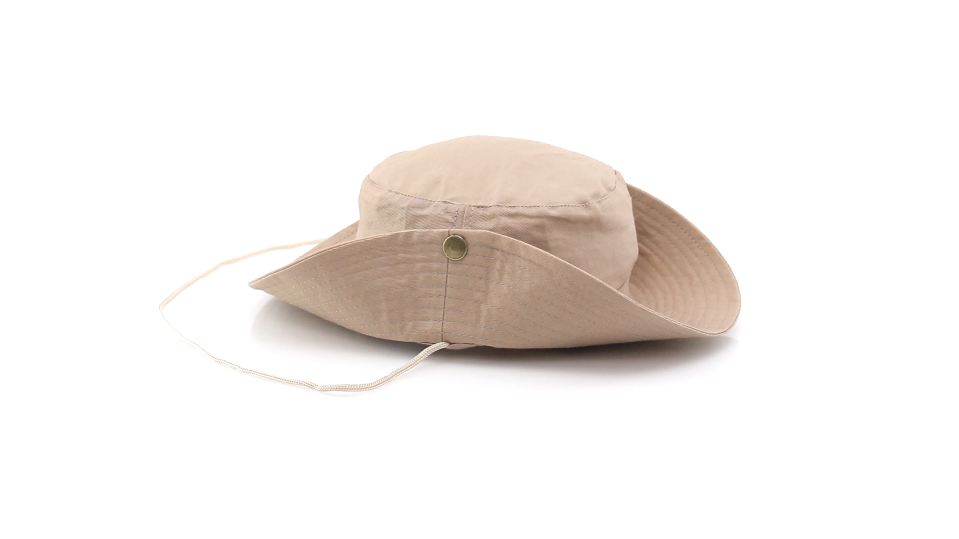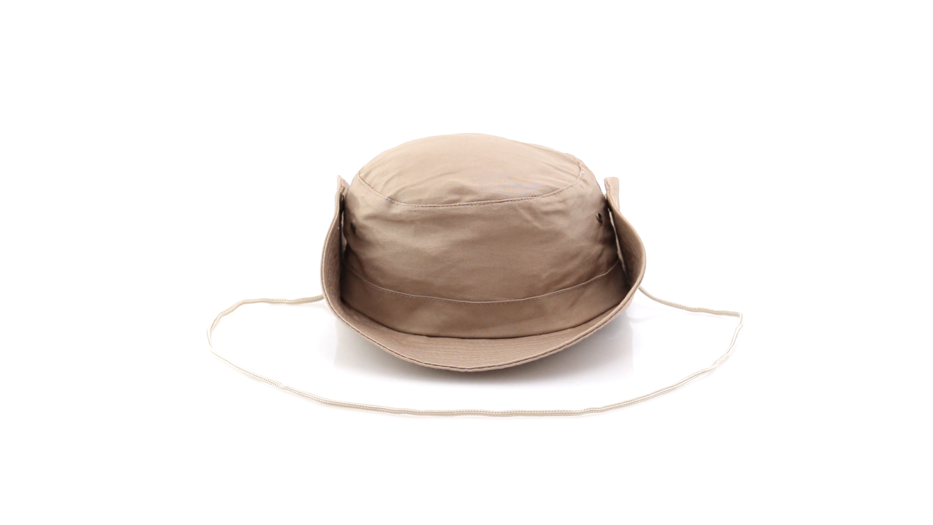Safarihut aus Baumwolle. Angenehm zu tragen und mit seitlichen Belüftungsöffnungen, verstärkt mit Metallösen. Mit verstellbarer Krempe mit Druckknöpfen sowie farblich passendem Hutband.