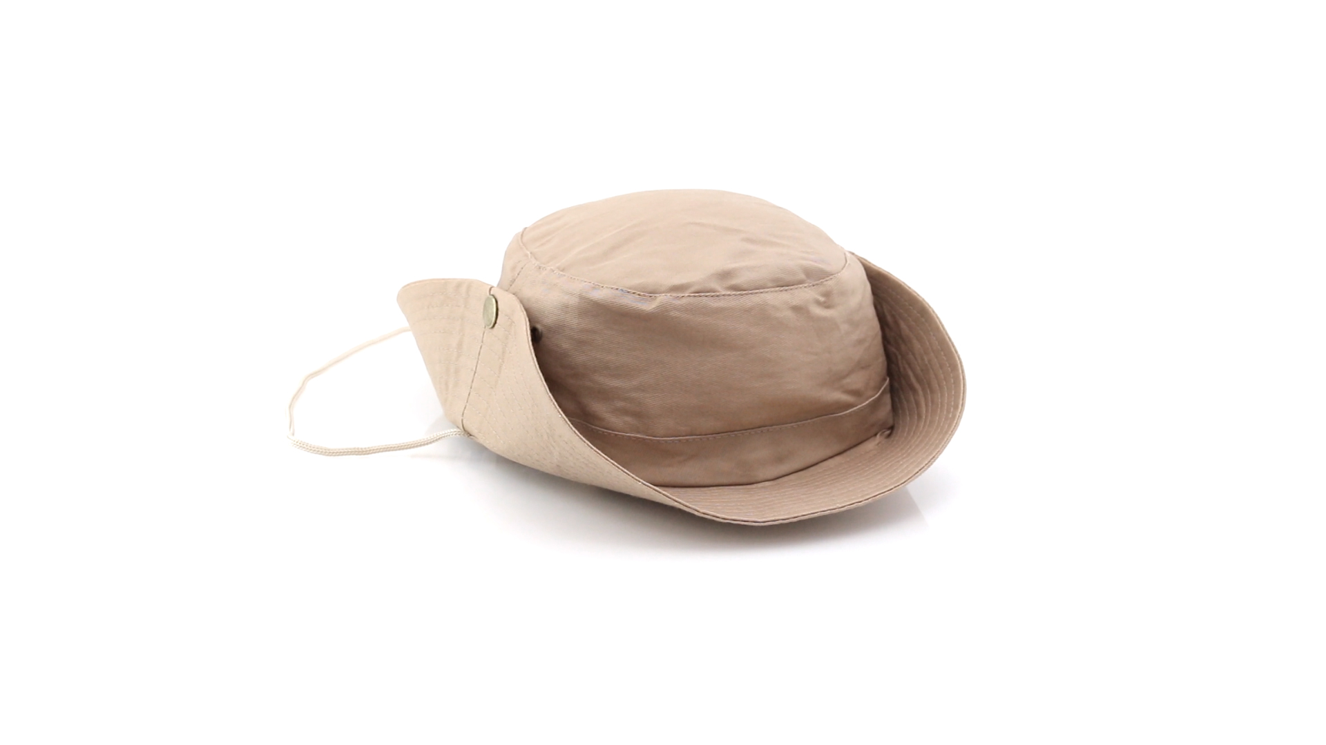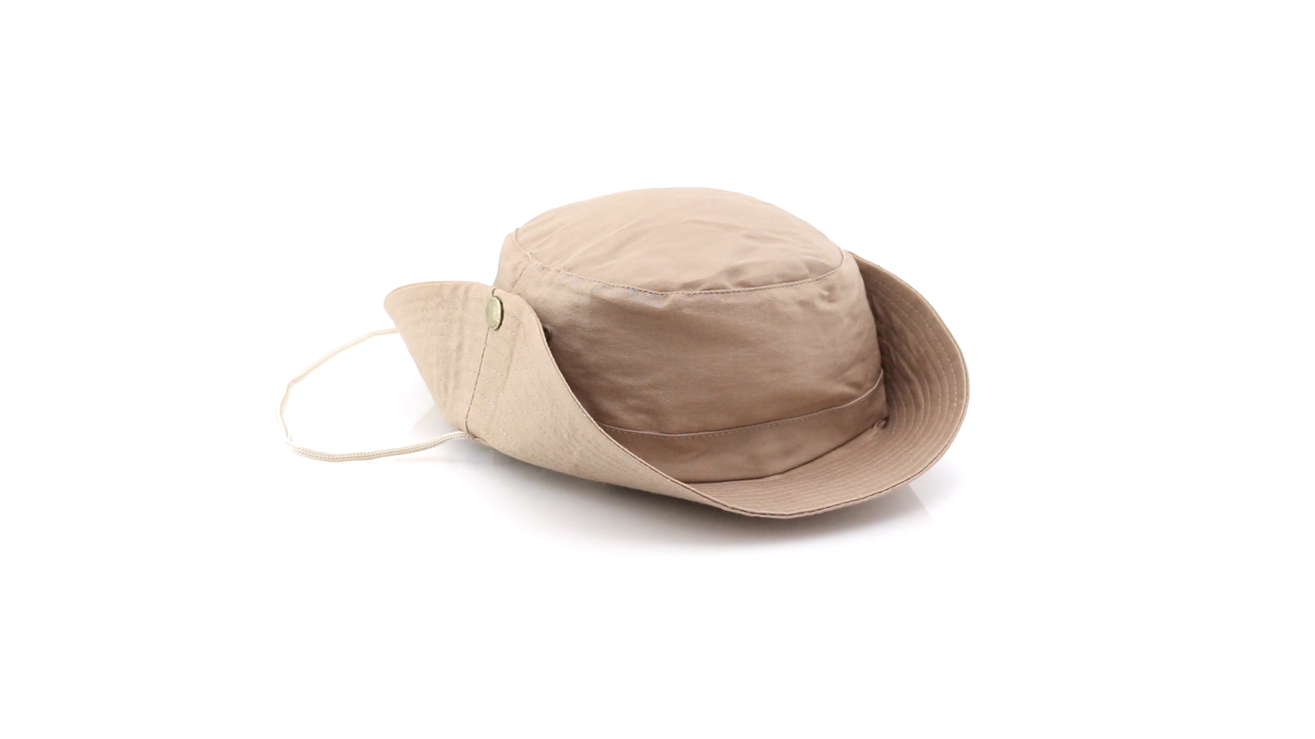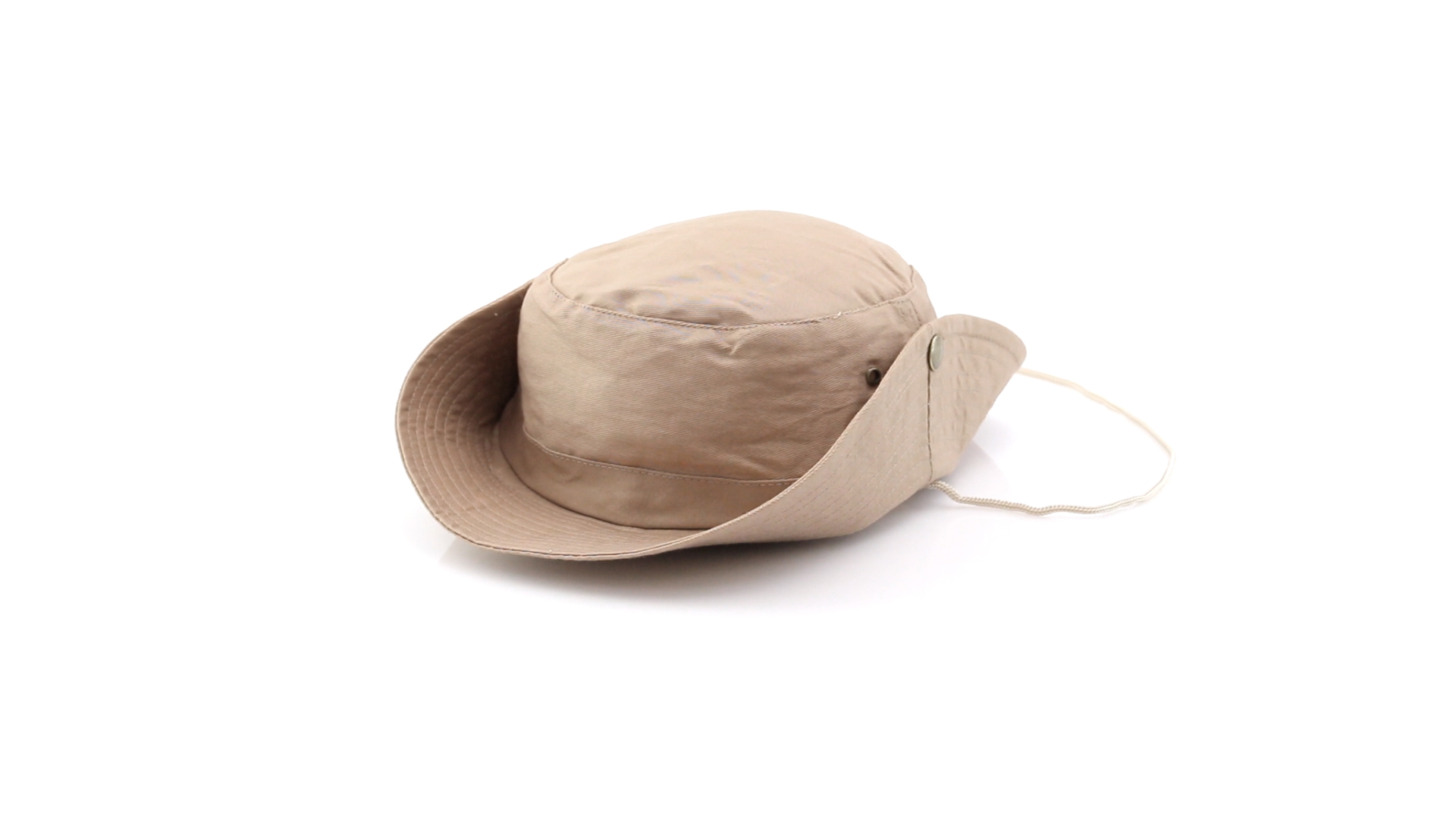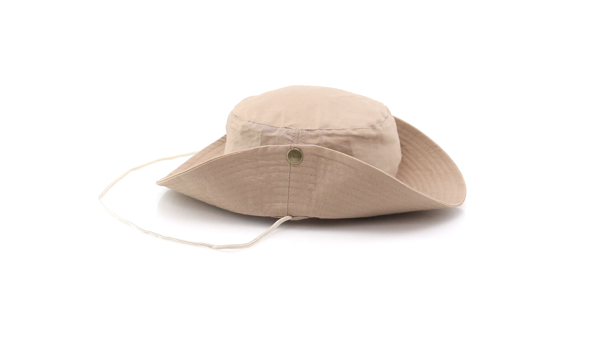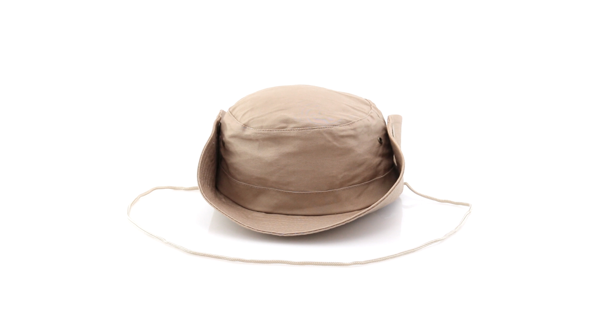 Safarihut aus Baumwolle. Angenehm zu tragen und mit seitlichen Belüftungsöffnungen, verstärkt mit Metallösen. Mit verstellbarer Krempe mit Druckknöpfen sowie farblich passendem Hutband.