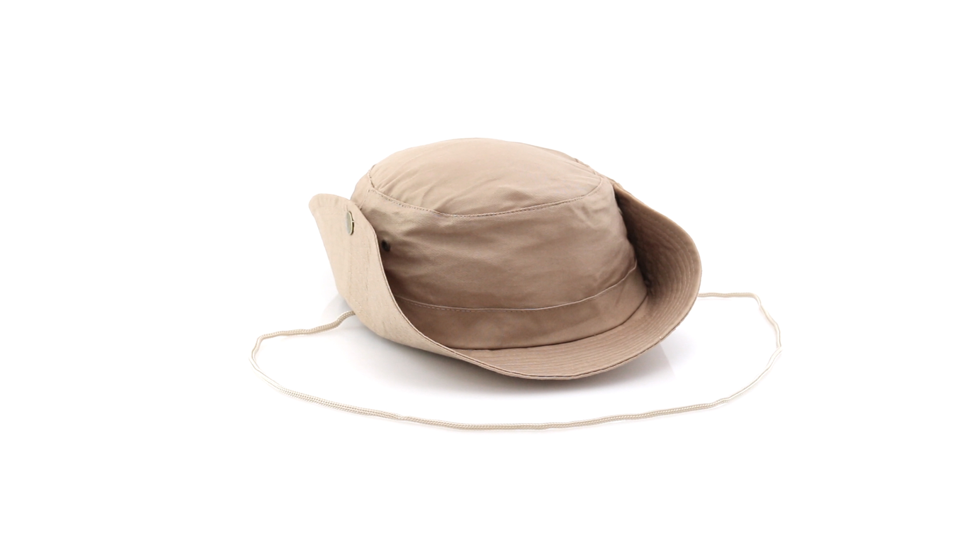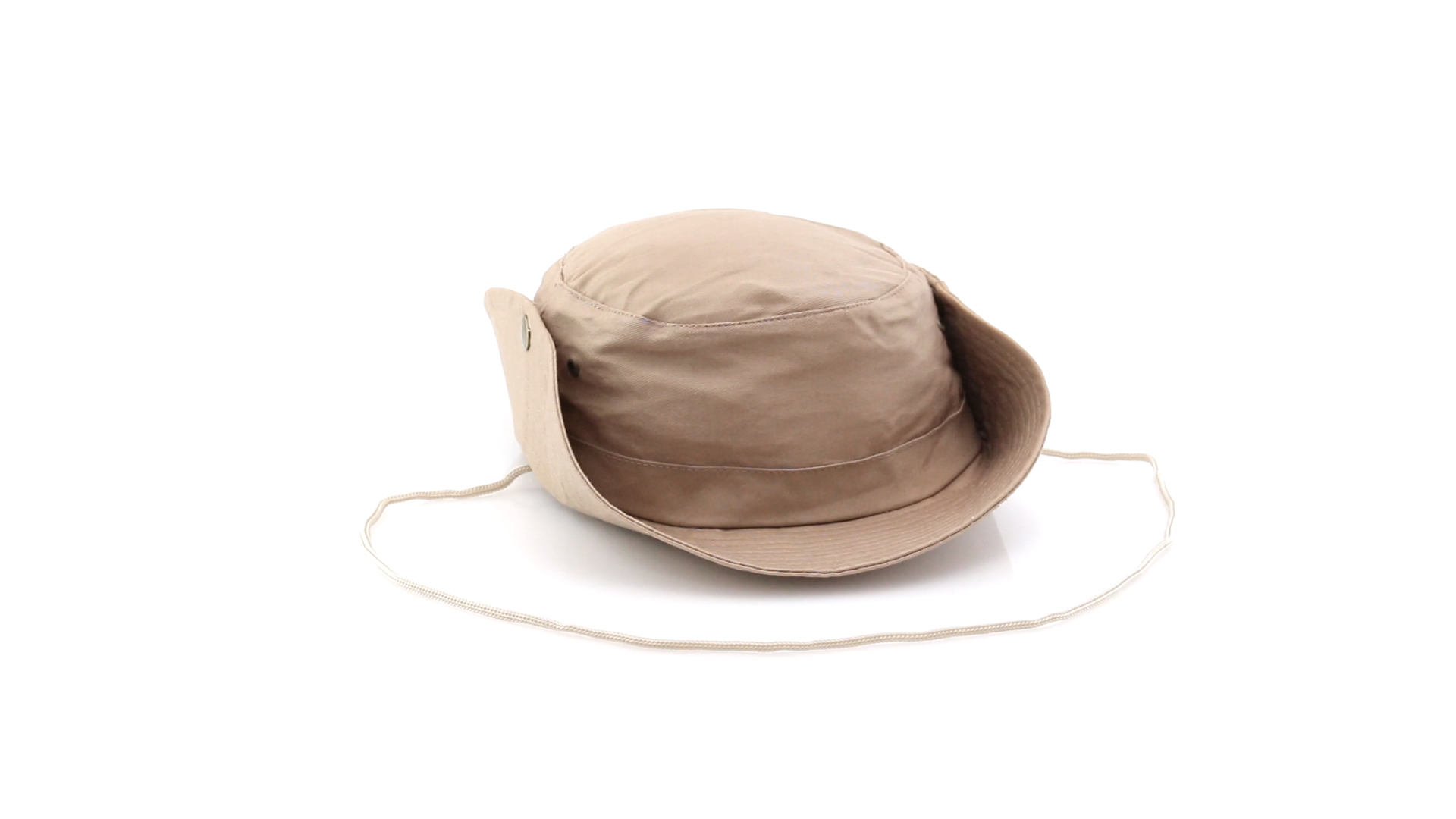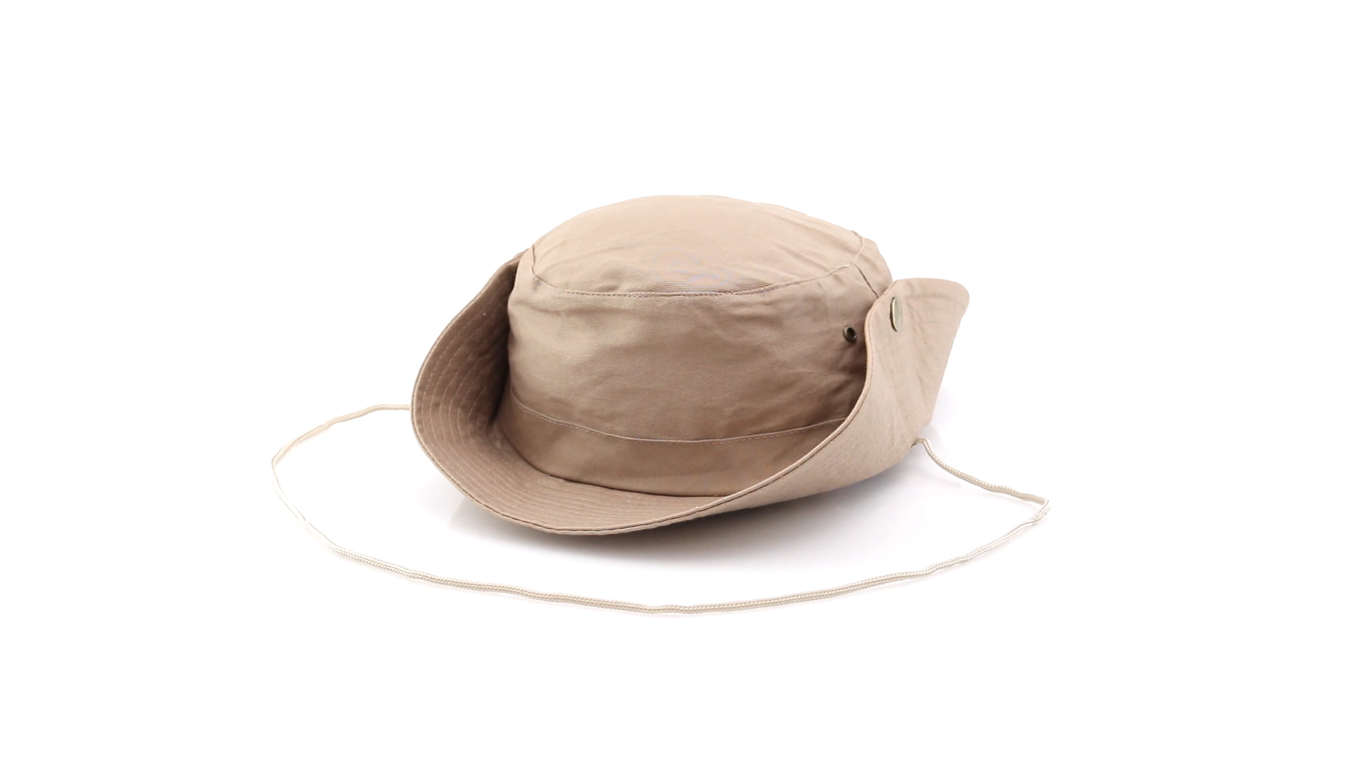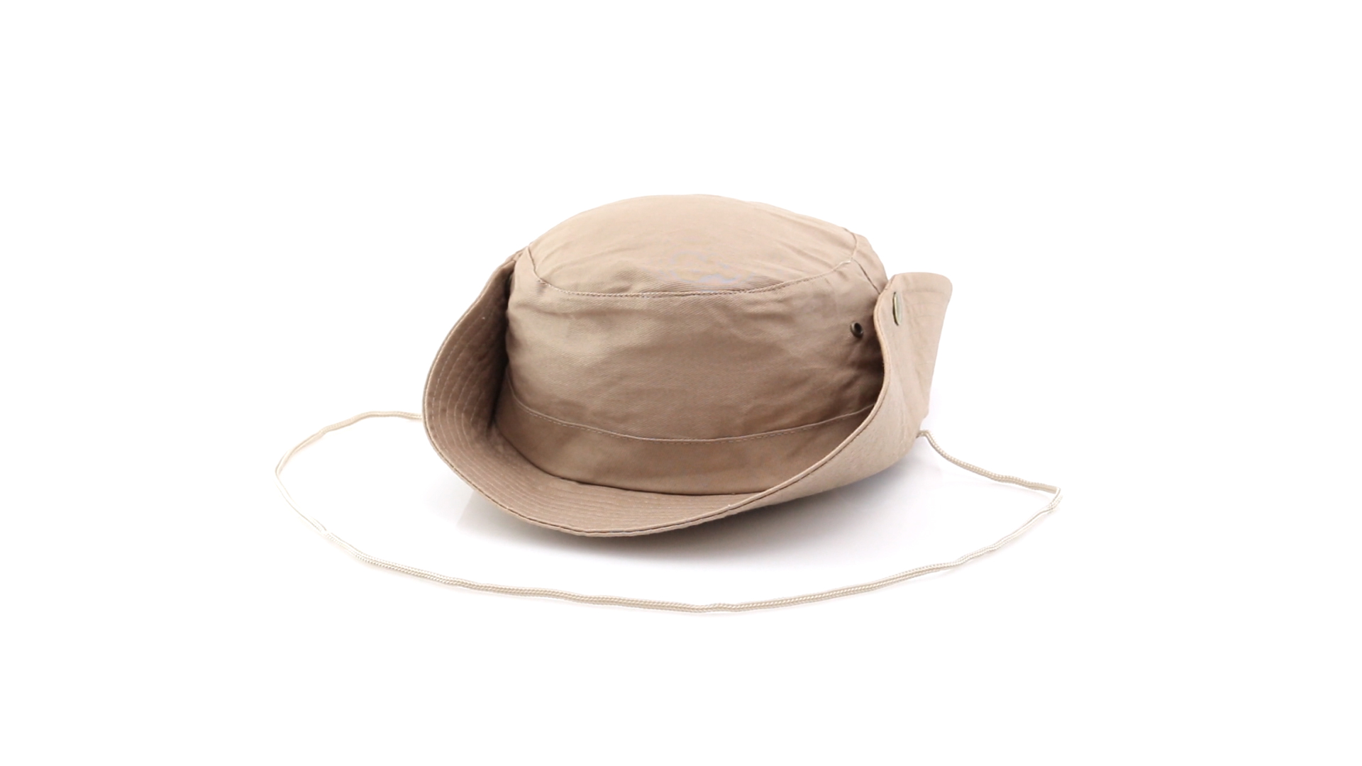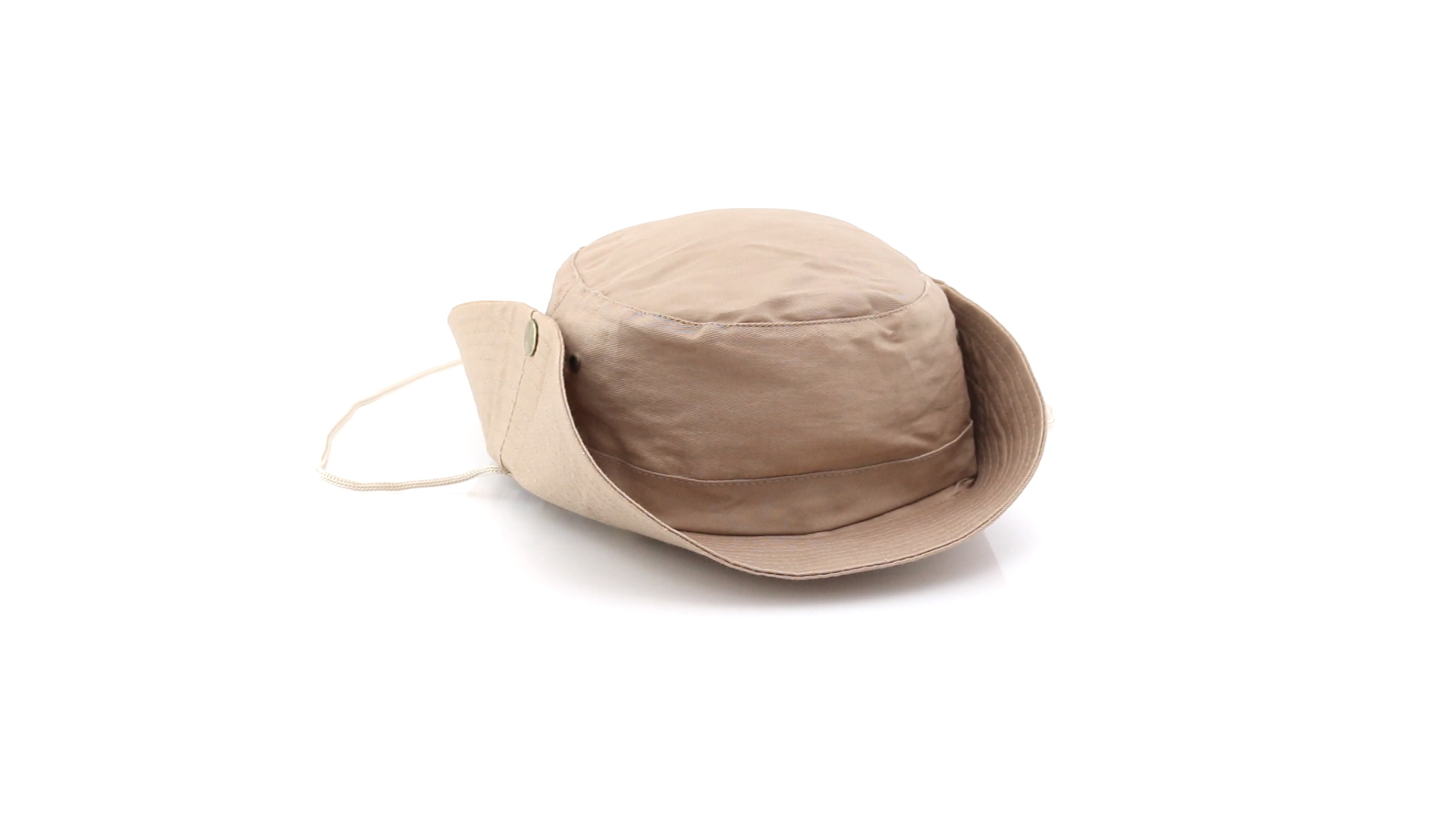 Safarihut aus Baumwolle. Angenehm zu tragen und mit seitlichen Belüftungsöffnungen, verstärkt mit Metallösen. Mit verstellbarer Krempe mit Druckknöpfen sowie farblich passendem Hutband.