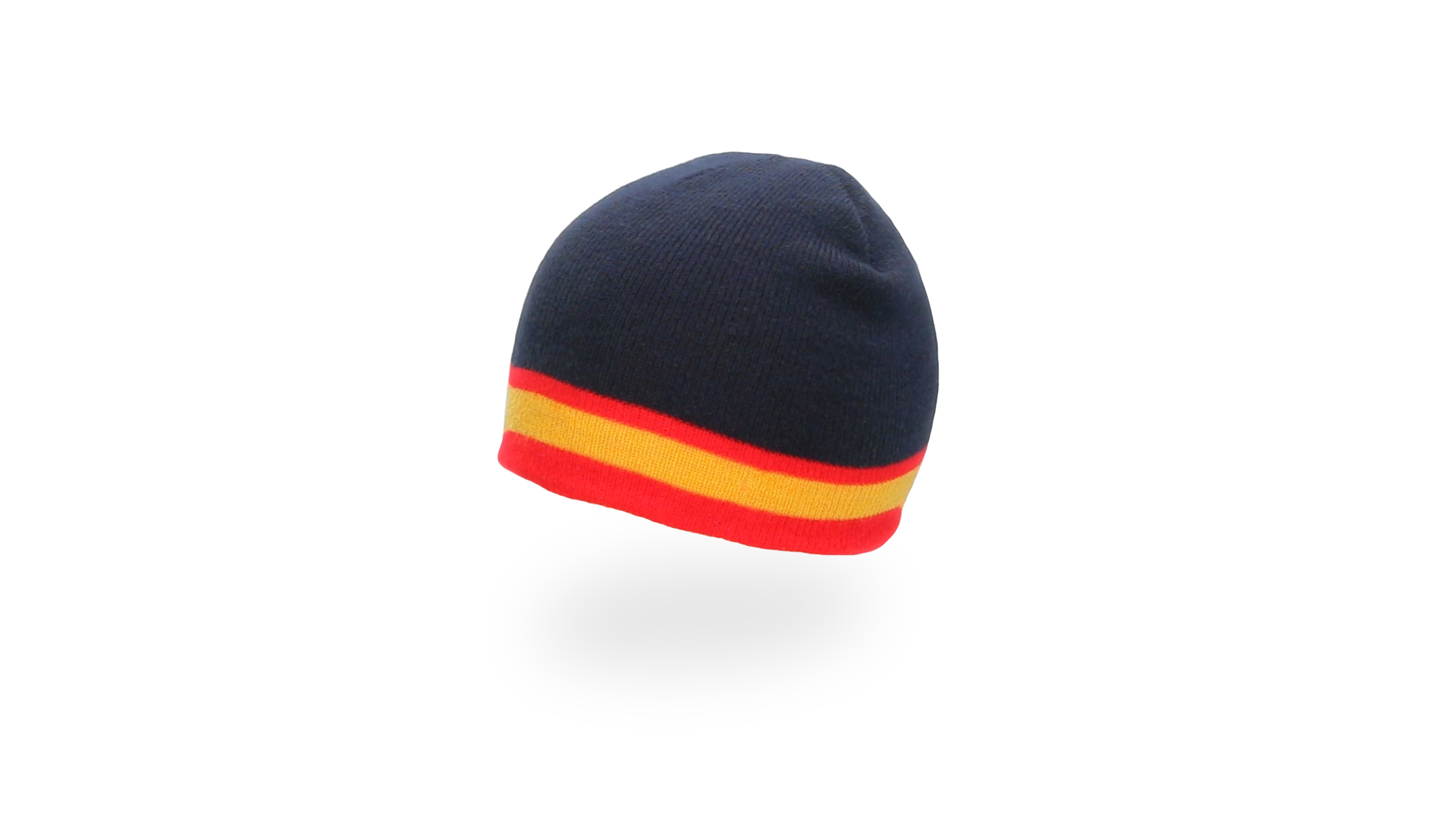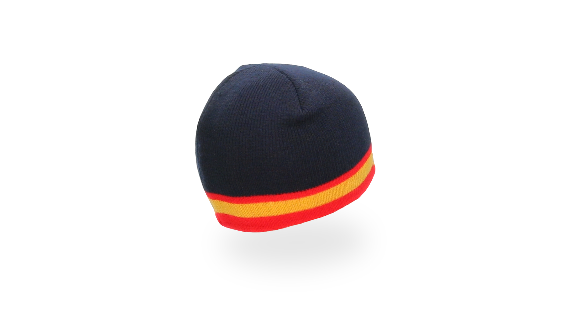 Weiche, warme Mütze aus einem Baumwoll/Polyester-Mischgewebe mit Spanien-Design. Doppellagig und erhältlich in Blau und Weiss.