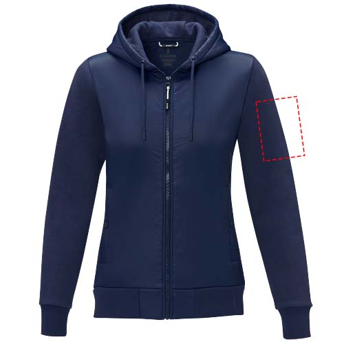 Die Darnell Hybridjacke für Damen - eine perfekte Verbindung von Stil und Funktionalität. Sie besteht zum Teil aus 38 g/m² dull cire 380T Nylongewebe, das für Strapazierfähigkeit und ein leichtes Tragegefühl sorgt. Der Kontraststoff ist ein Strickstoff aus Baumwolle und Polyester (345 g/m²), der für Komfort und Bewegungsfreiheit sorgt. Die Innenseite der Jacke ist gebürstet und bietet zusätzliche Wärme und ein weiches Tragegefühl. Die Jacke ist mit einer Innentasche ausgestattet, in der Sie Ihre wichtigsten Utensilien bequem verstauen können. Die elastischen Flachstrick-Rippbündchen an den Ärmeln und am unteren Saum sorgen für einen bequemen und sicheren Sitz und verleihen dem Gesamtdesign einen Hauch von Raffinesse. Die Darnell Hybridjacke ist eine perfekte Wahl für den Alltag und legere Anlässe. Diese Jacke hat eine taillierte Form für einen femininen Look.