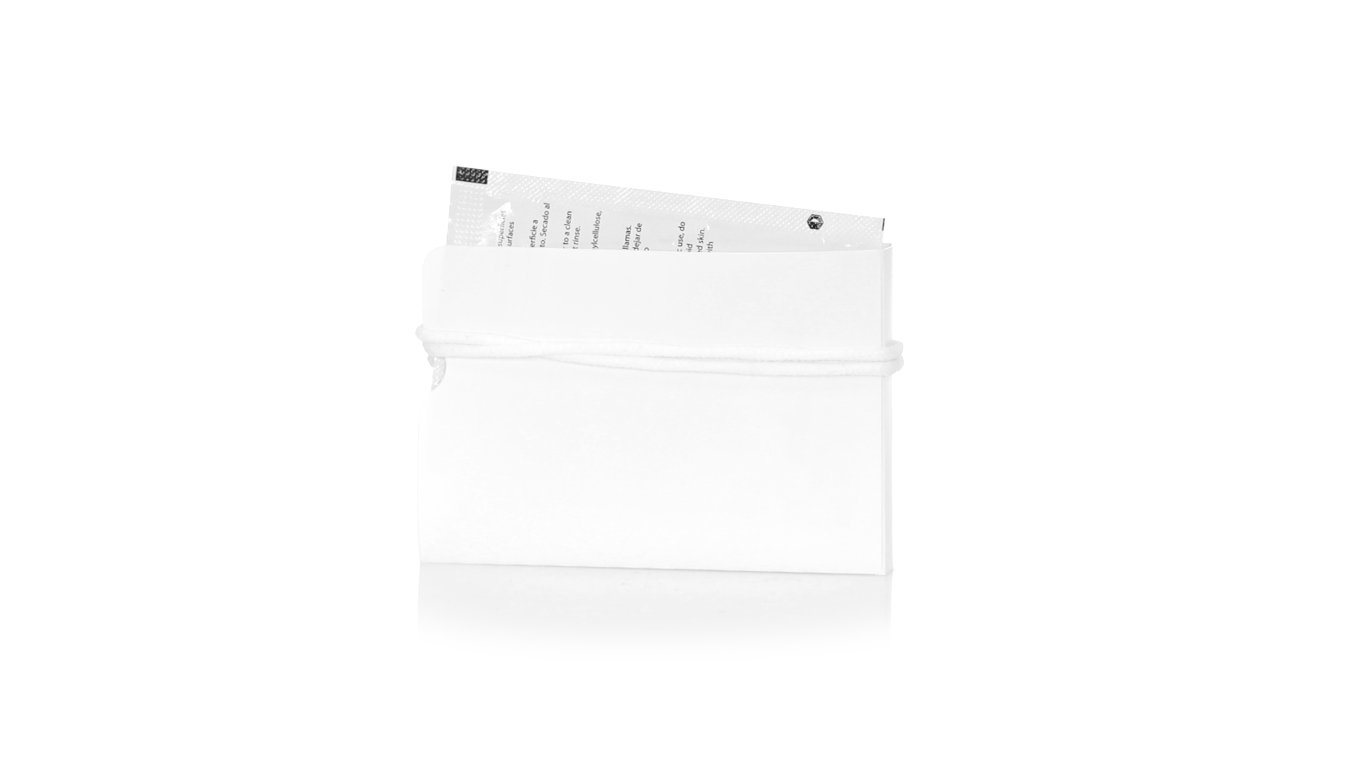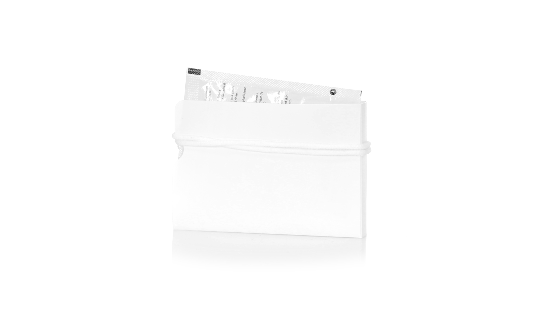 Hygieneset bestehend aus Maske, Desinfektionstuch und Maskenhalter. Präsentiert in einem kompakten Maskenhalter-Etui aus widerstandsfähigem PP-Material mit weisser Oberfläche und einem breiten Druckbereich. Der Inhalt: Hygienische Dreischichtmaske mit heissversiegelter Oberfläche, elastischem Verschluss und anpassbarem Nasenbügel für einen festen Sitz. Äussere und innere Schichten aus Vliesstoff (Polypropylen). Zwischenschicht aus Meltblownmaterial (bestehend aus 90% Polypropylen und 10% Viskose). In Übereinstimmung mit UNE 0064-1:2020 . Bakterielle Filtrationseffizienz (BFE) ≥ 95%. Atmungsaktivität (Differenzdruck) < 60 Pa/cm2 Nicht wiederverwendbar. 3 Schichten. Aussen 1: Nicht gewebte (Polypropylen) Mittelschicht: Meltblownmaterial (90% Polypropylen/ 10% Viskose). Aussenseite 2: Vliesstoff (Polypropylen). 1x hydro-alkoholisches Desinfektionstuch zur Reinigung und Desinfektion von Händen und Oberflächen, die häufig benutzt werden (Smartphones, Einkaufswagenstangen, Tastaturen...) Hergestellt aus kompostierbarem Material und präsentiert in einer 2 ml Einzeldosis-Packung, mit einer breiten Druckfläche. Alkoholgehalt: 70%. Grösse des Tuches (ungefaltet): 15,5x16,5 cm. Grösse des Umschlags: 6,7x8 cm. Zertifizierung 94/62/EG verfügbar. Wischtuch 100% kompostierbar 1 x Maskenhalter aus widerstandsfähigem PP-Material. Dank seiner kompakten Grösse kann er aufgrund der originellen Verschlussart, die durch die elastischen Bänder der Maske (nicht im Lieferumfang enthalten) gewährleistet wird, bequem in der Tasche aufbewahrt werden. Mit praktischem Faltsystem, das einen schnellen Zugriff auf die Maske ermöglicht. Nach Gebrauch leicht zu desinfizieren und in durchsichtiger und einfarbig weisser Ausführung erhältlich, ideal zum Bedrucken.