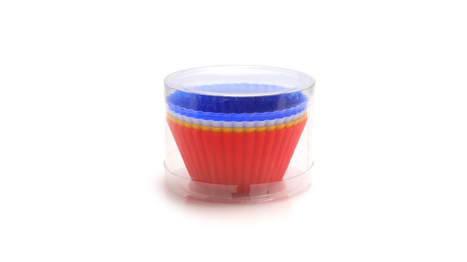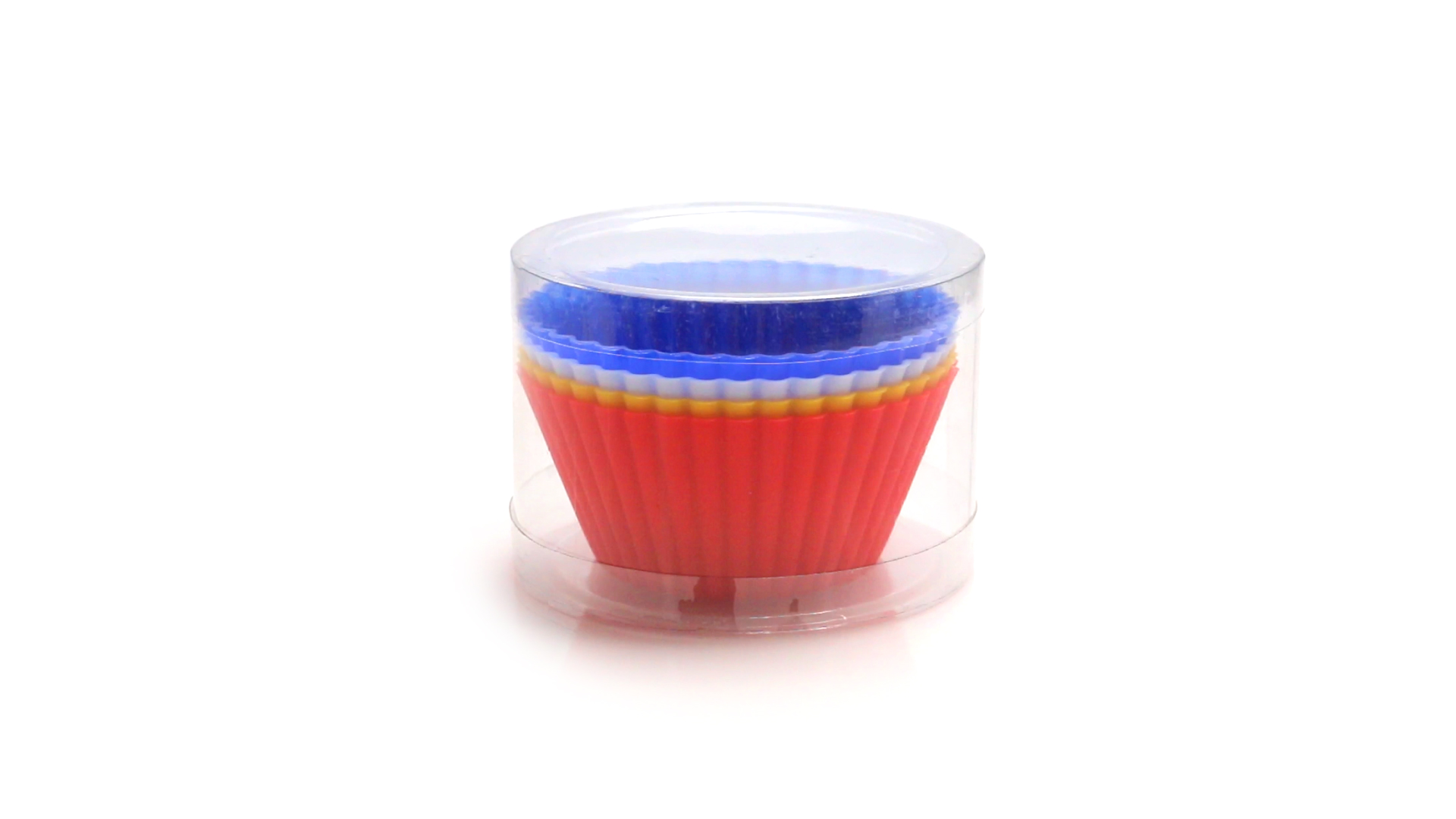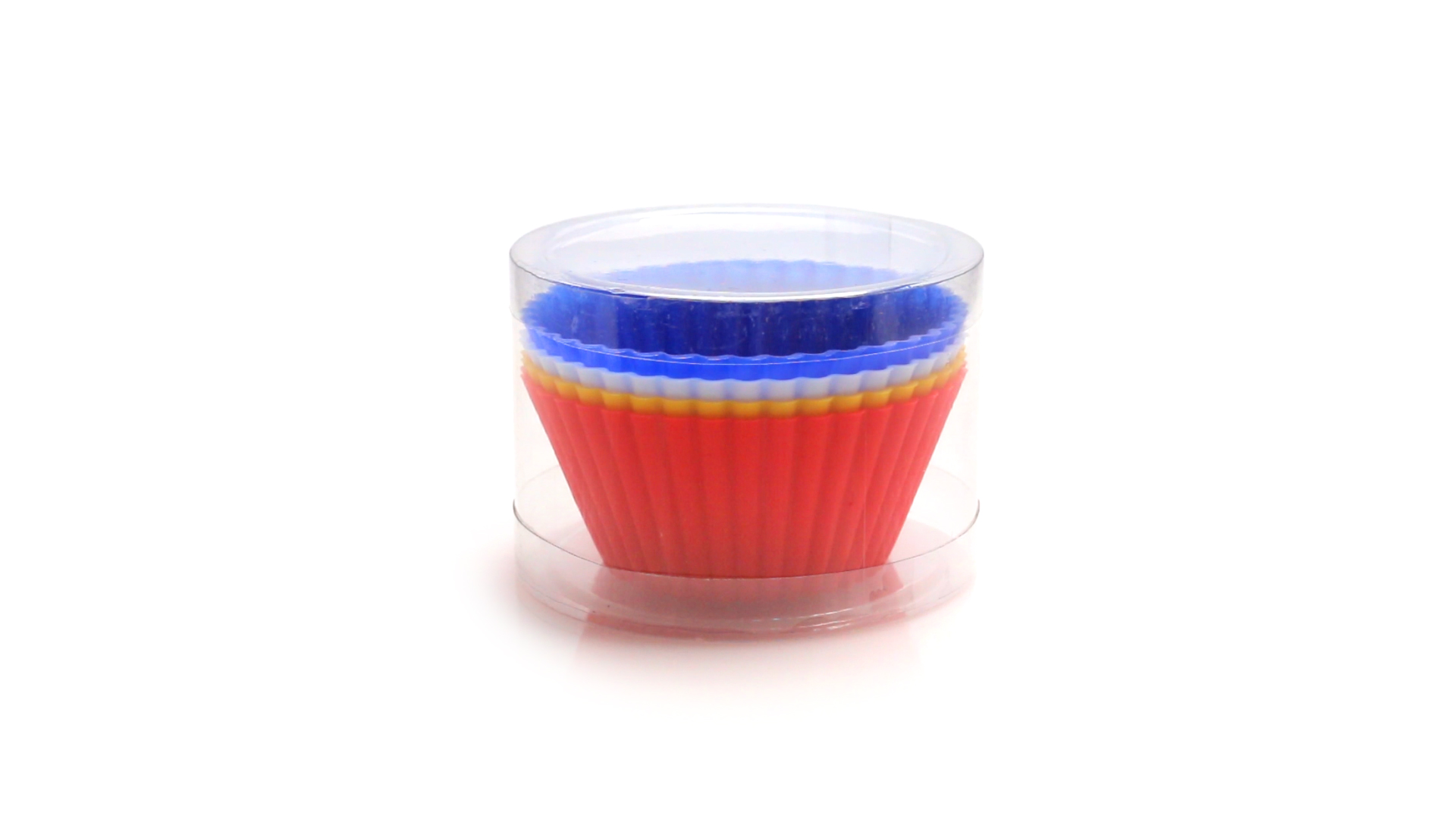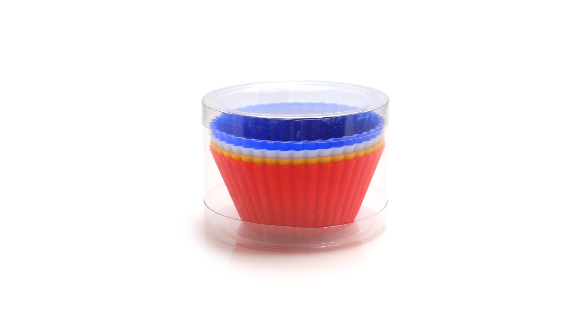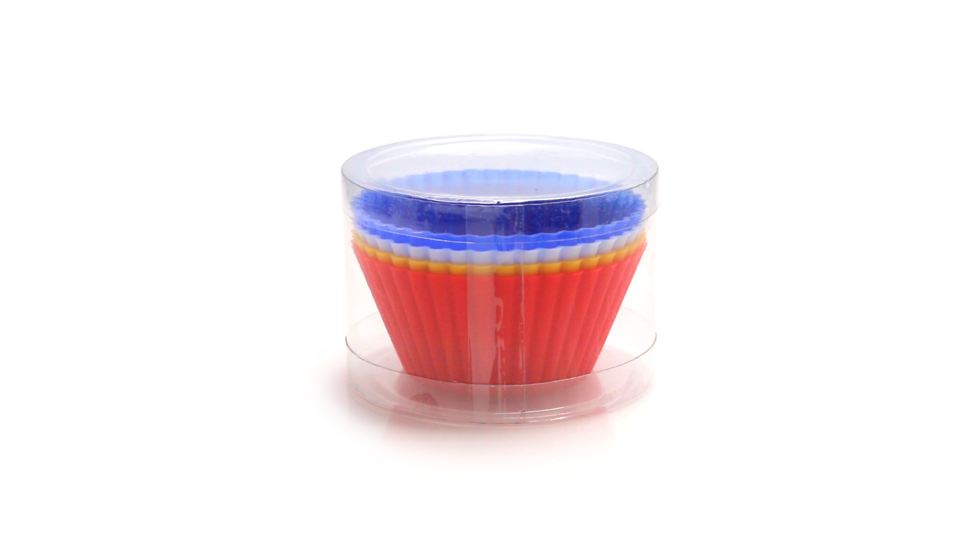 Set aus 4 Silikonformen in fröhlichen Farben. Beständigkeit gegen Temperaturen von bis zu 240 °C.