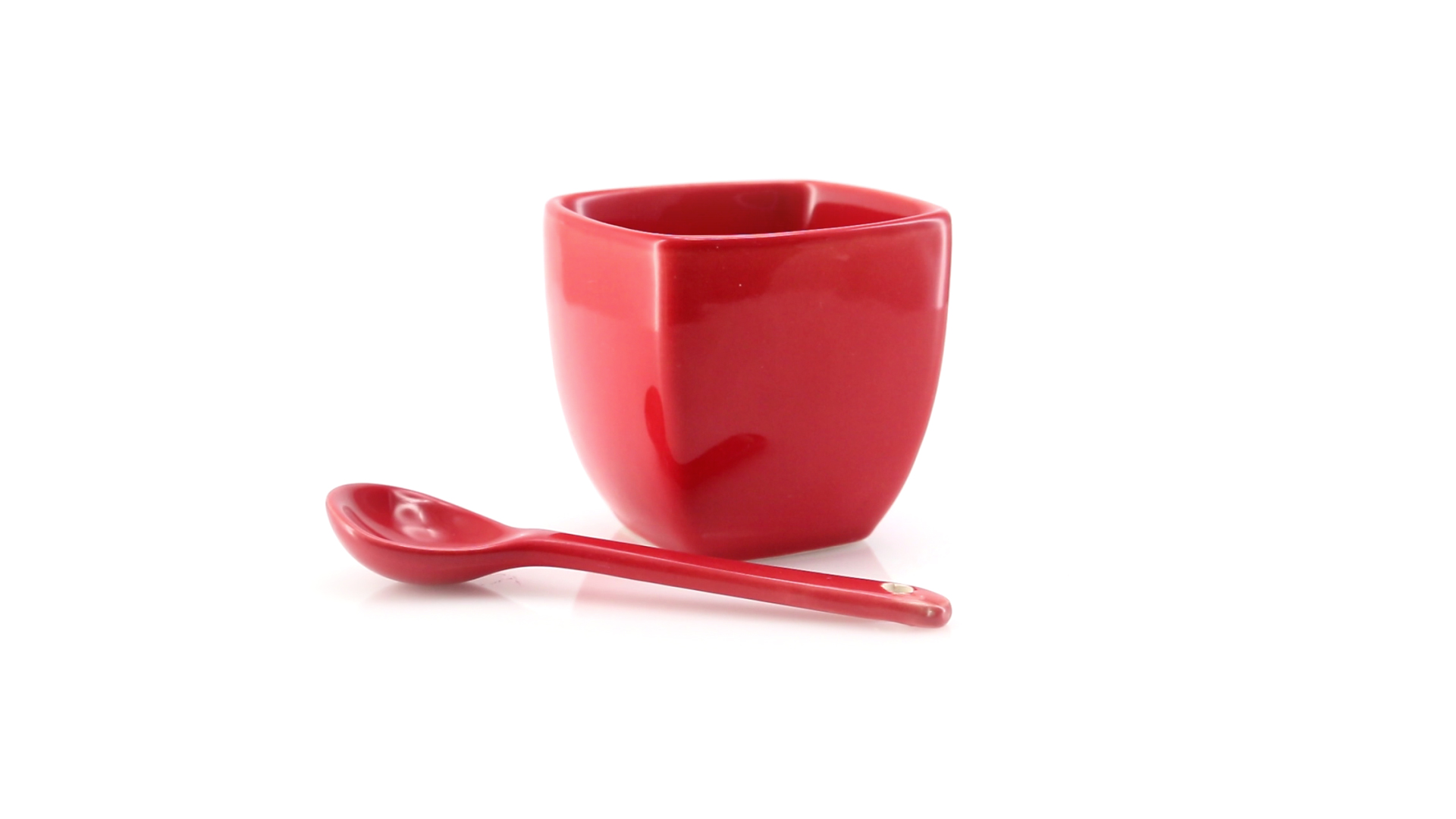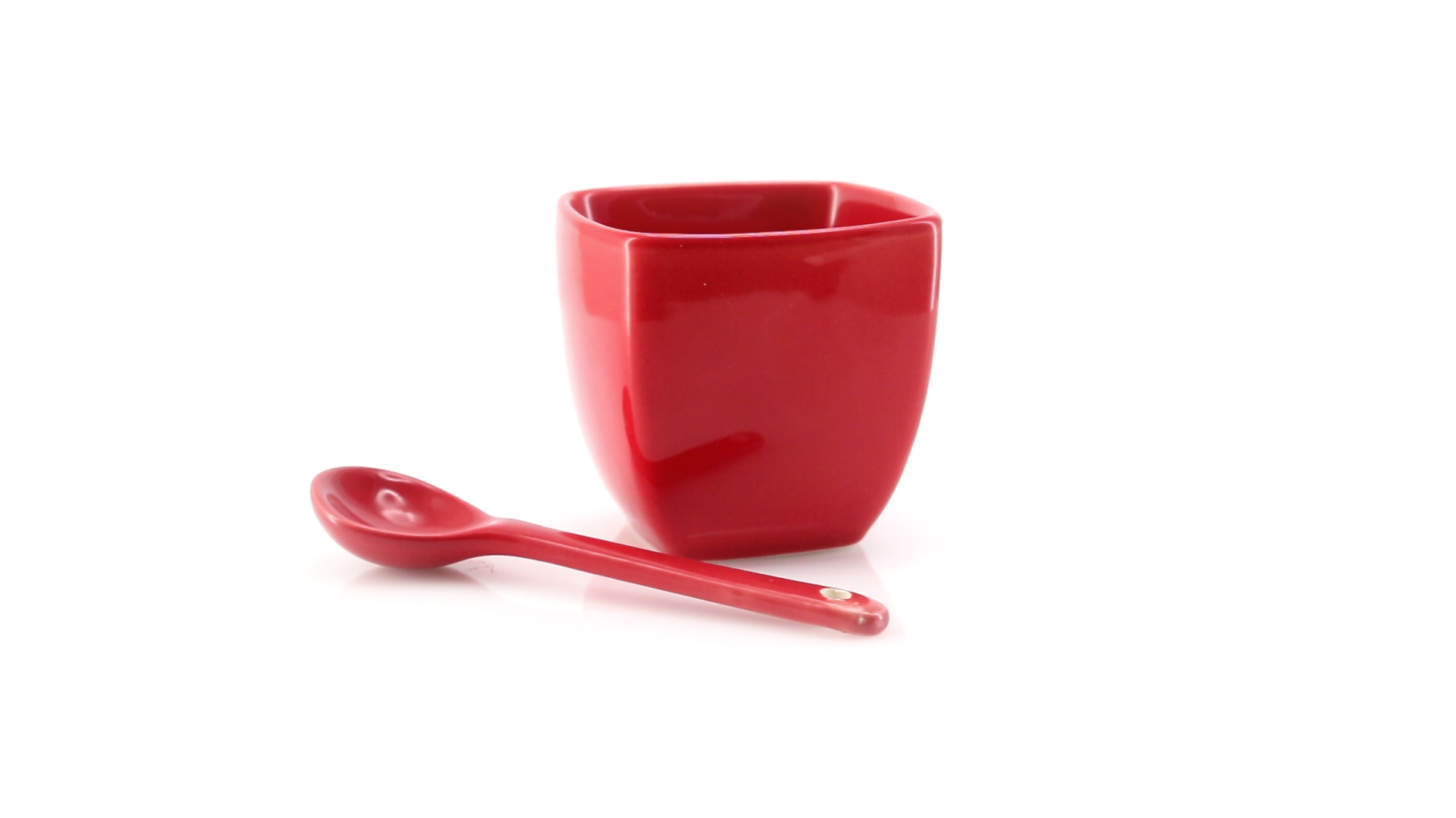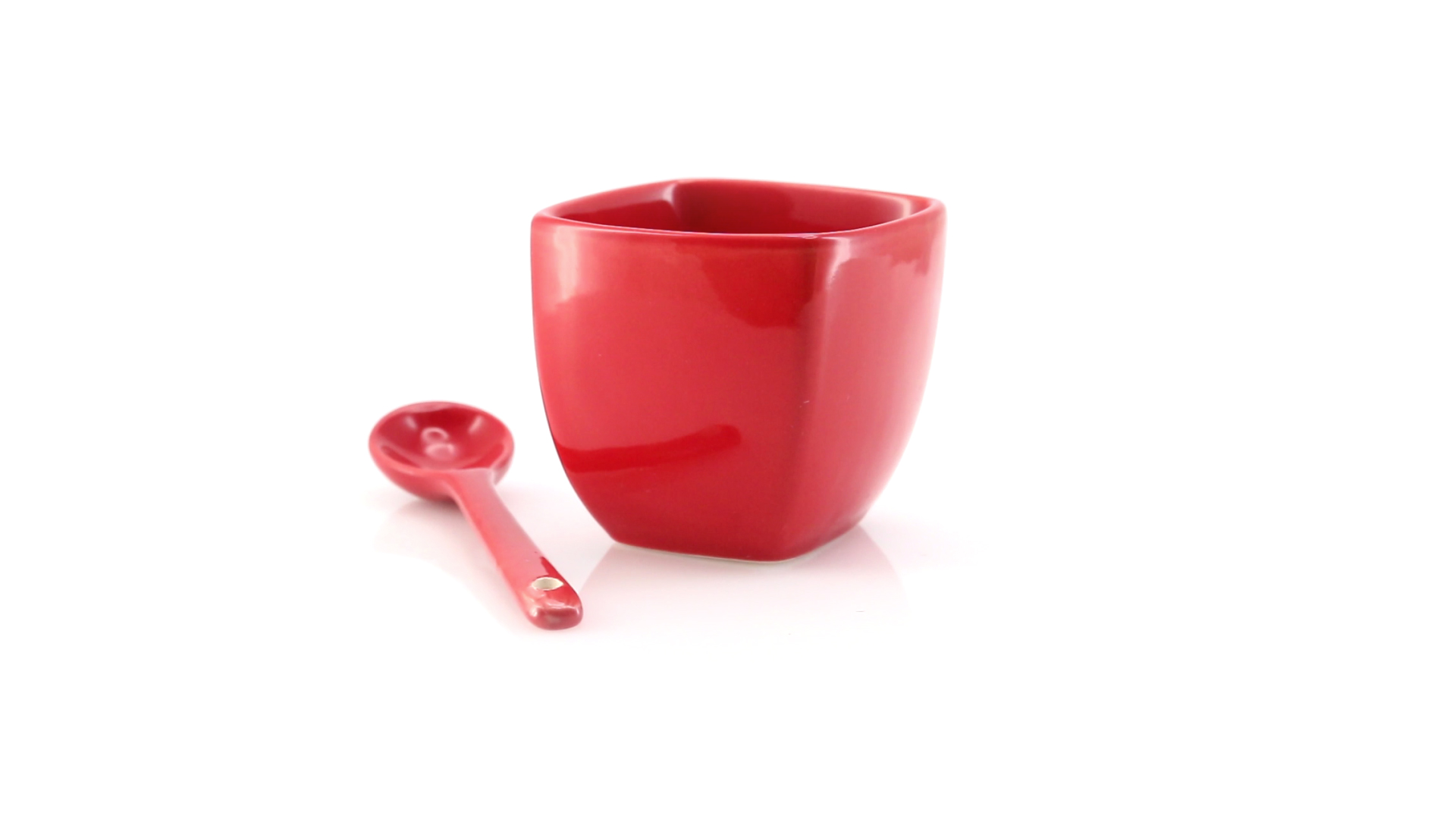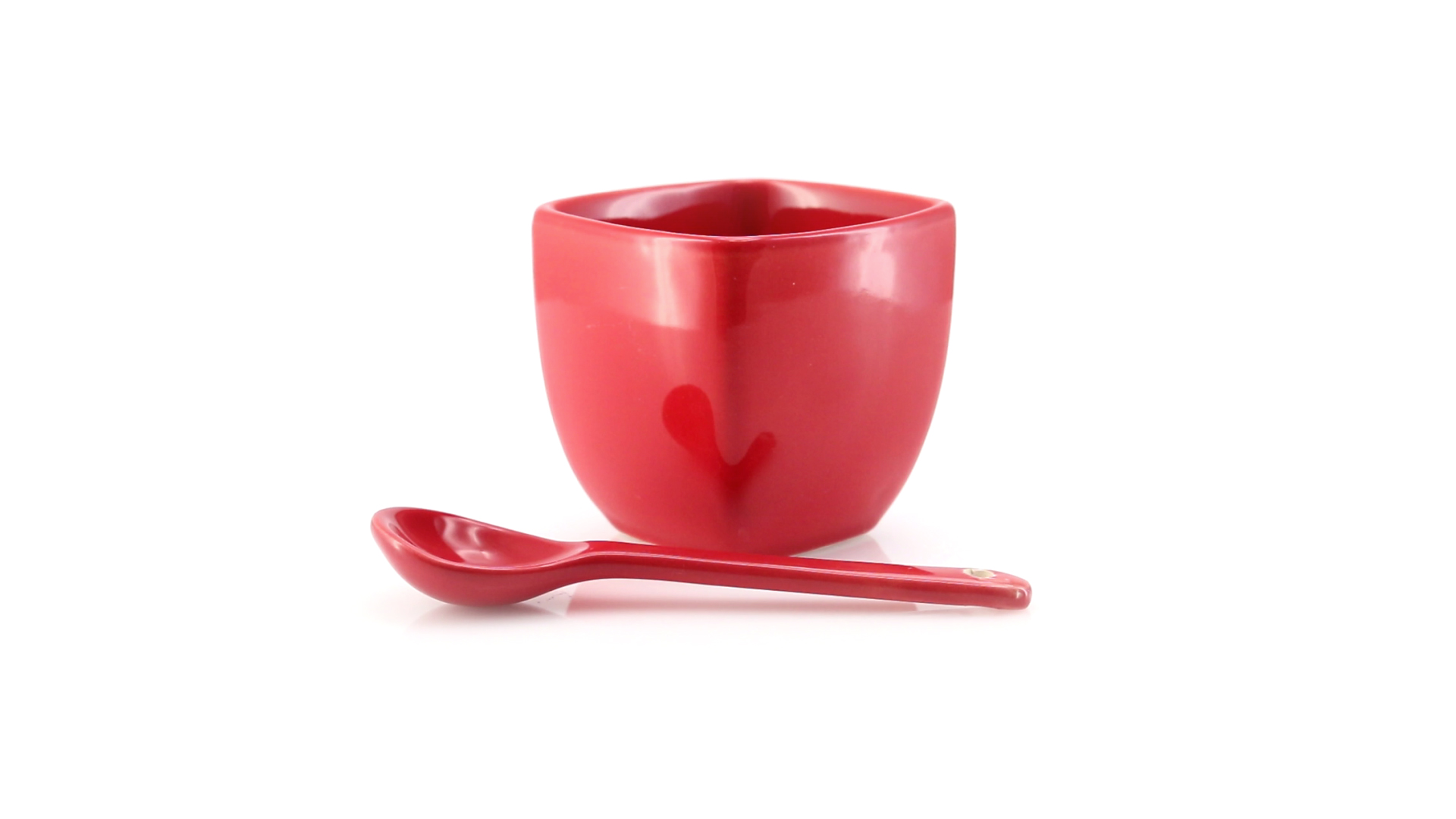 Sauciere aus Keramik mit farblich passendem Löffel in lebendigen Farben. Präsentiert in einer individuellen Box.