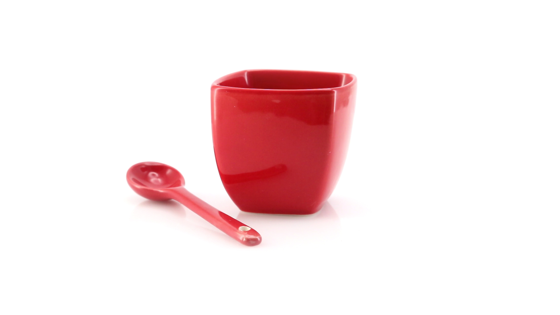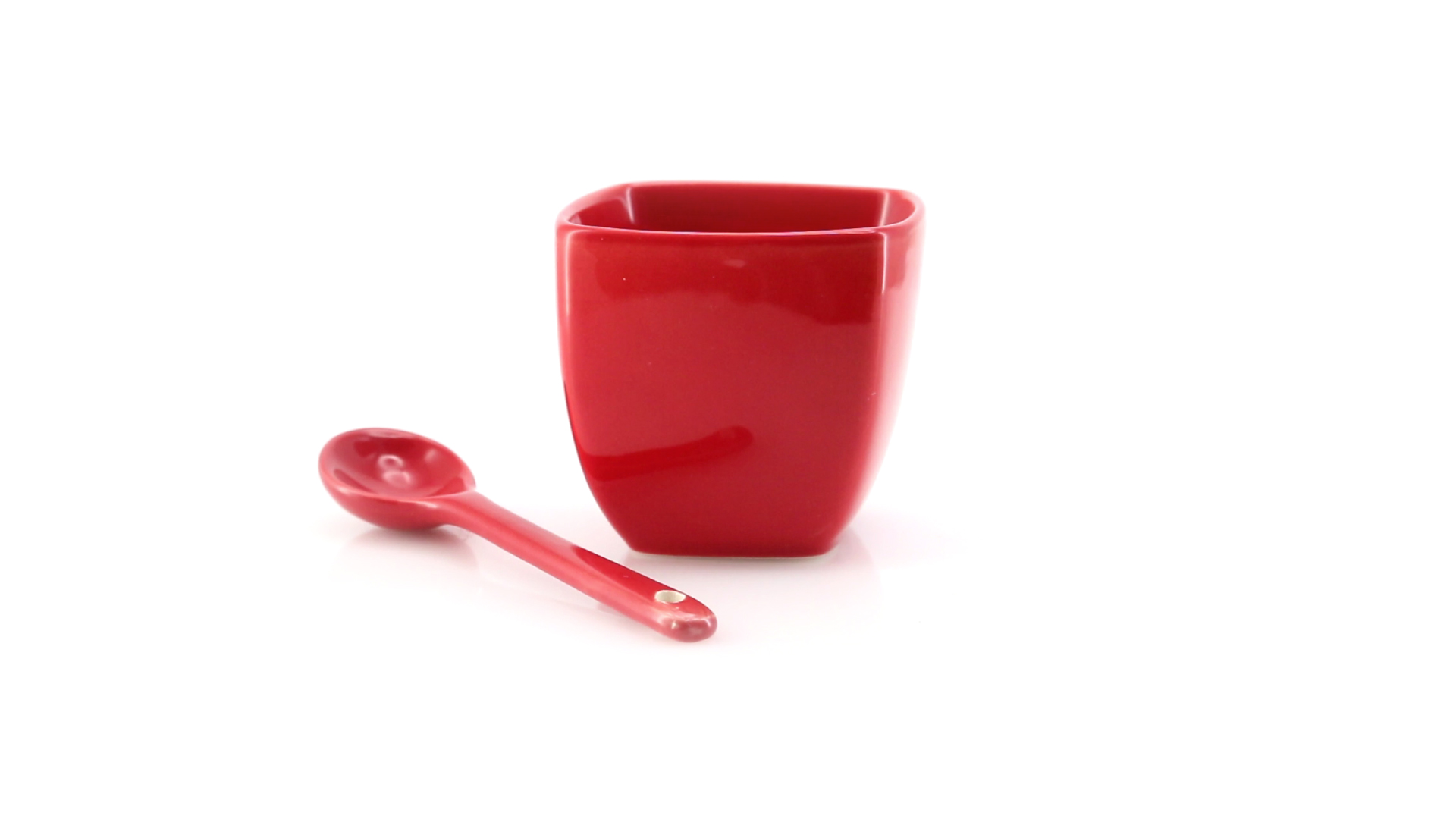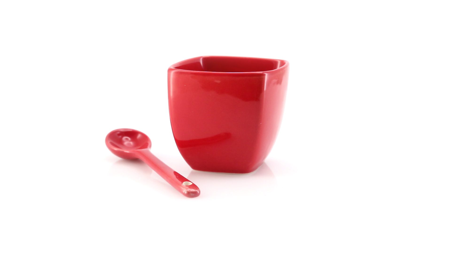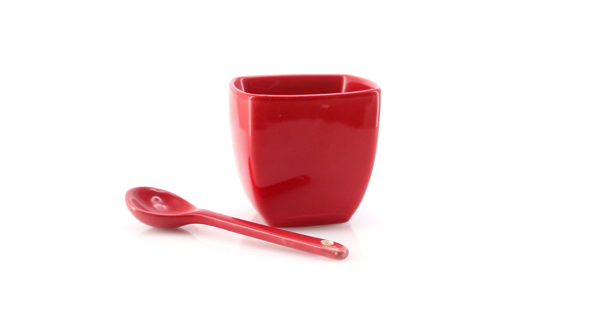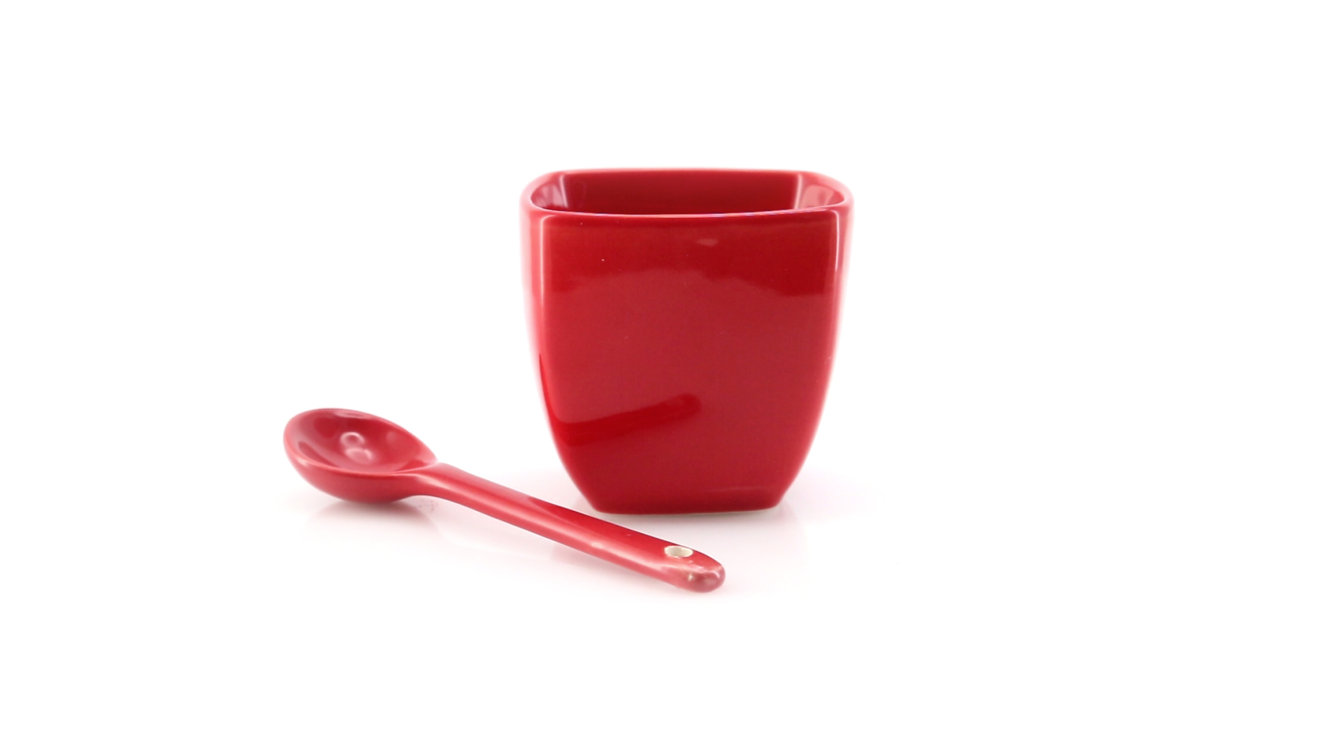 Sauciere aus Keramik mit farblich passendem Löffel in lebendigen Farben. Präsentiert in einer individuellen Box.