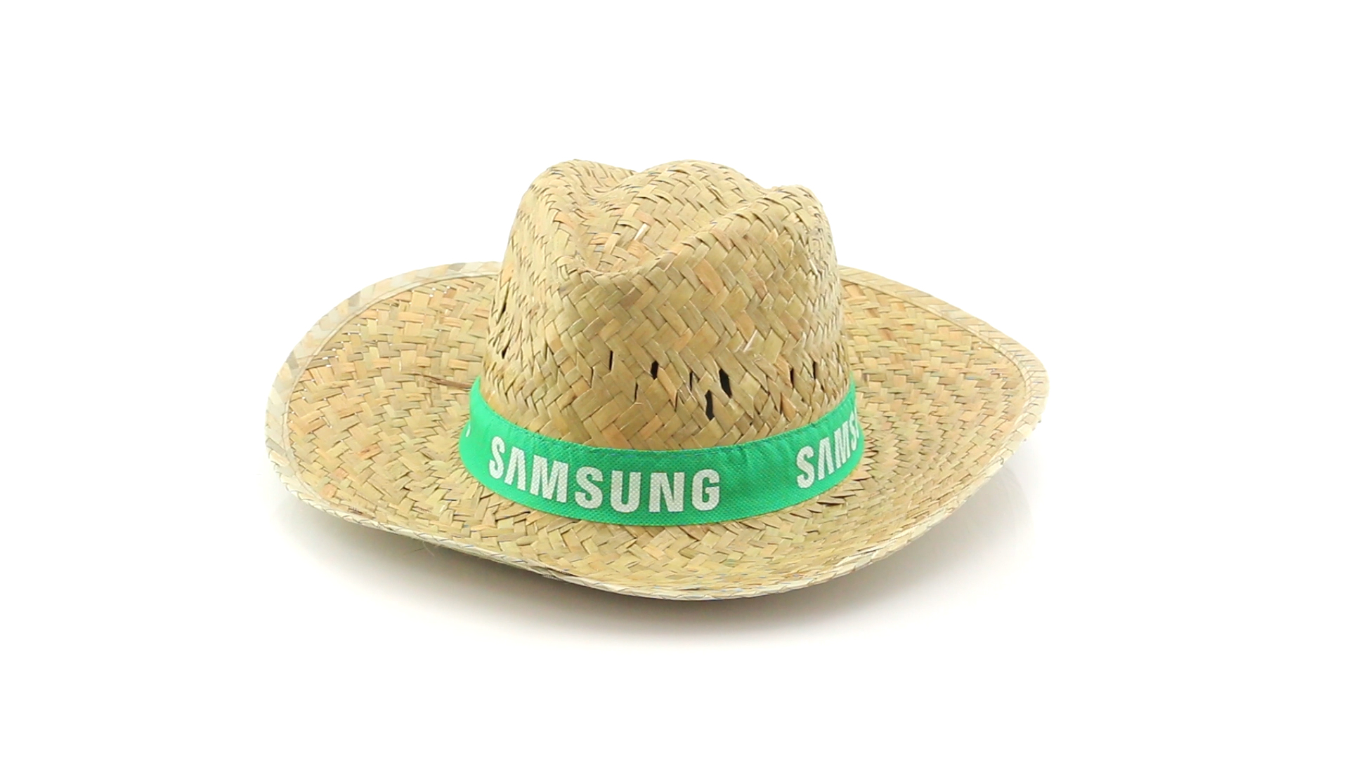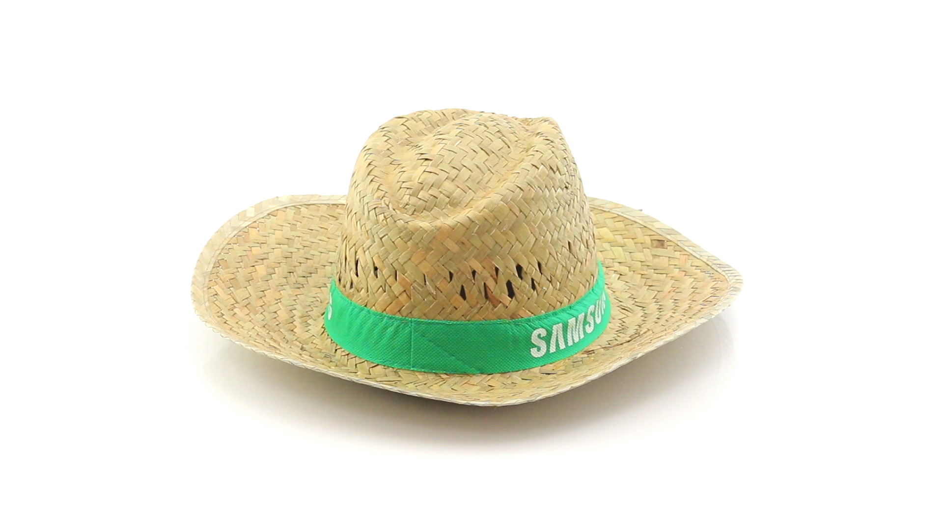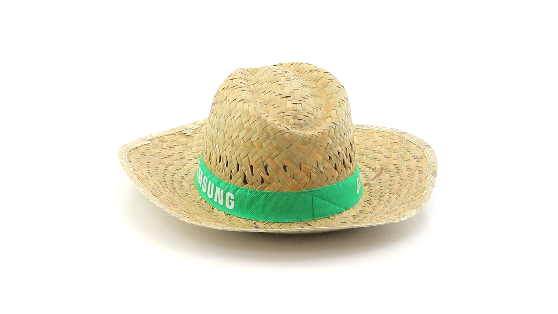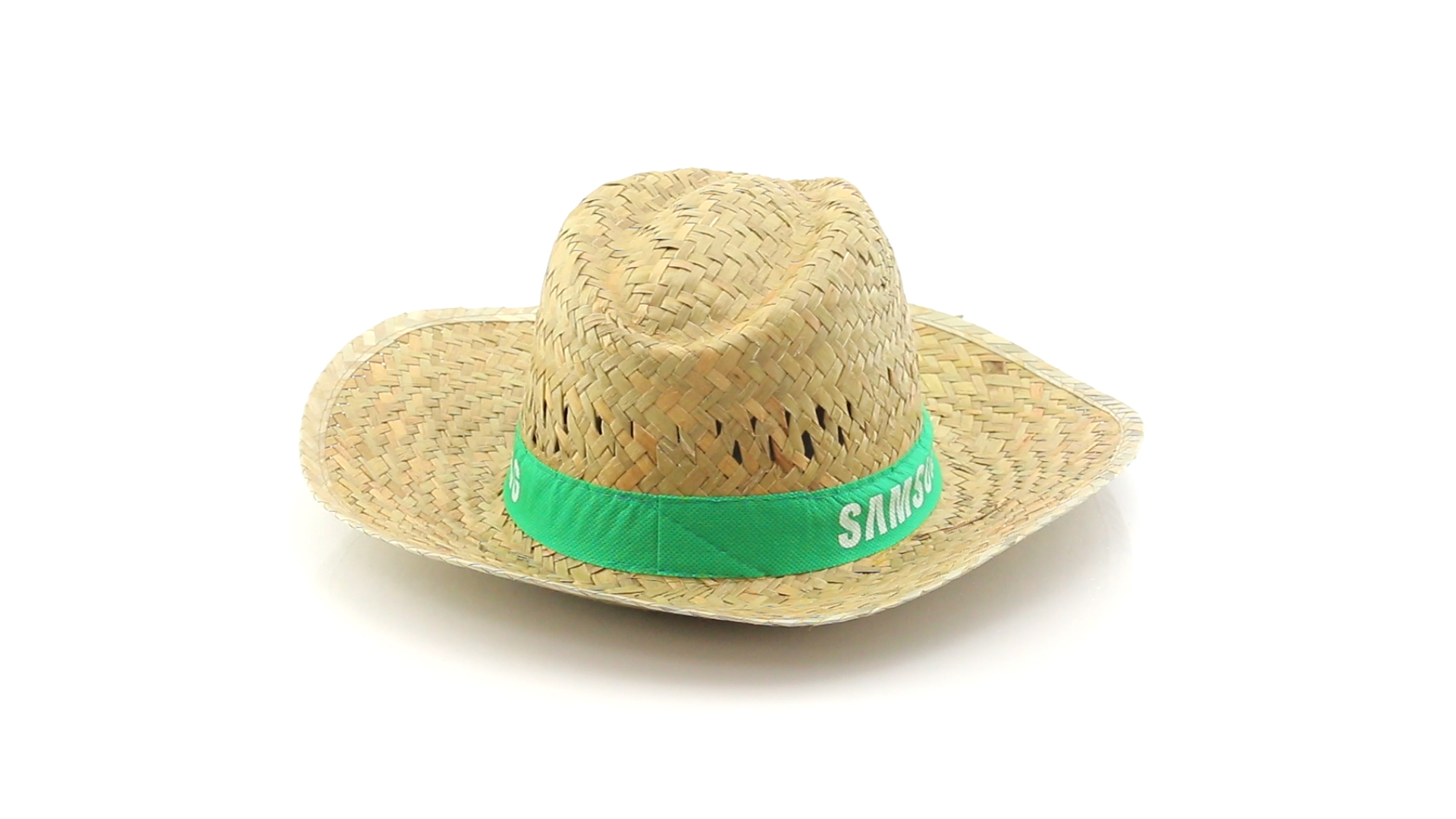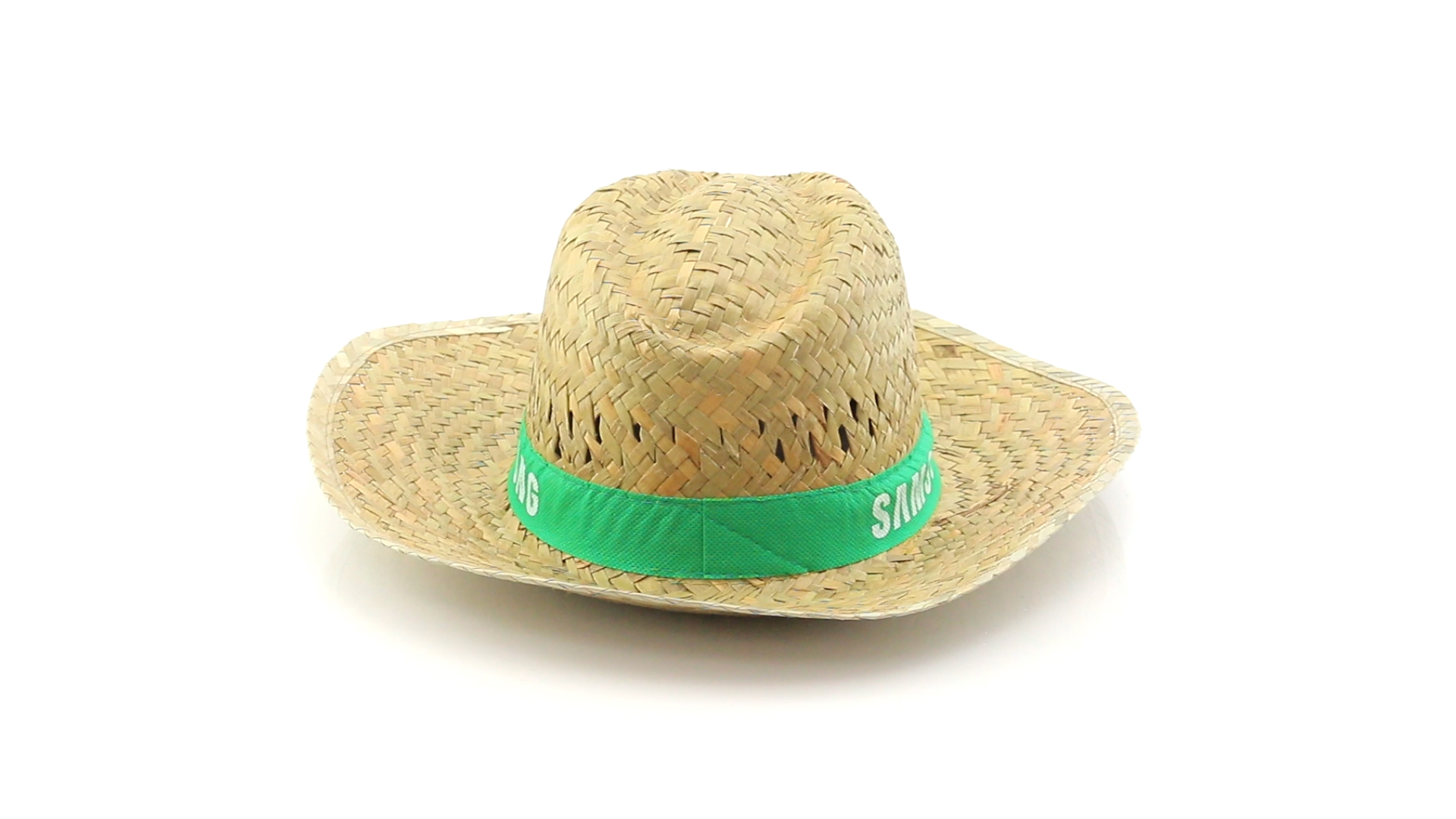 Strohhut. Er ist aus geflochtenem Stroh in natürlicher grüner Farbe hergestellt und durch seine Machart atmungsaktiv. Er hat ein Innenband, um ihn bequemer zu machen.