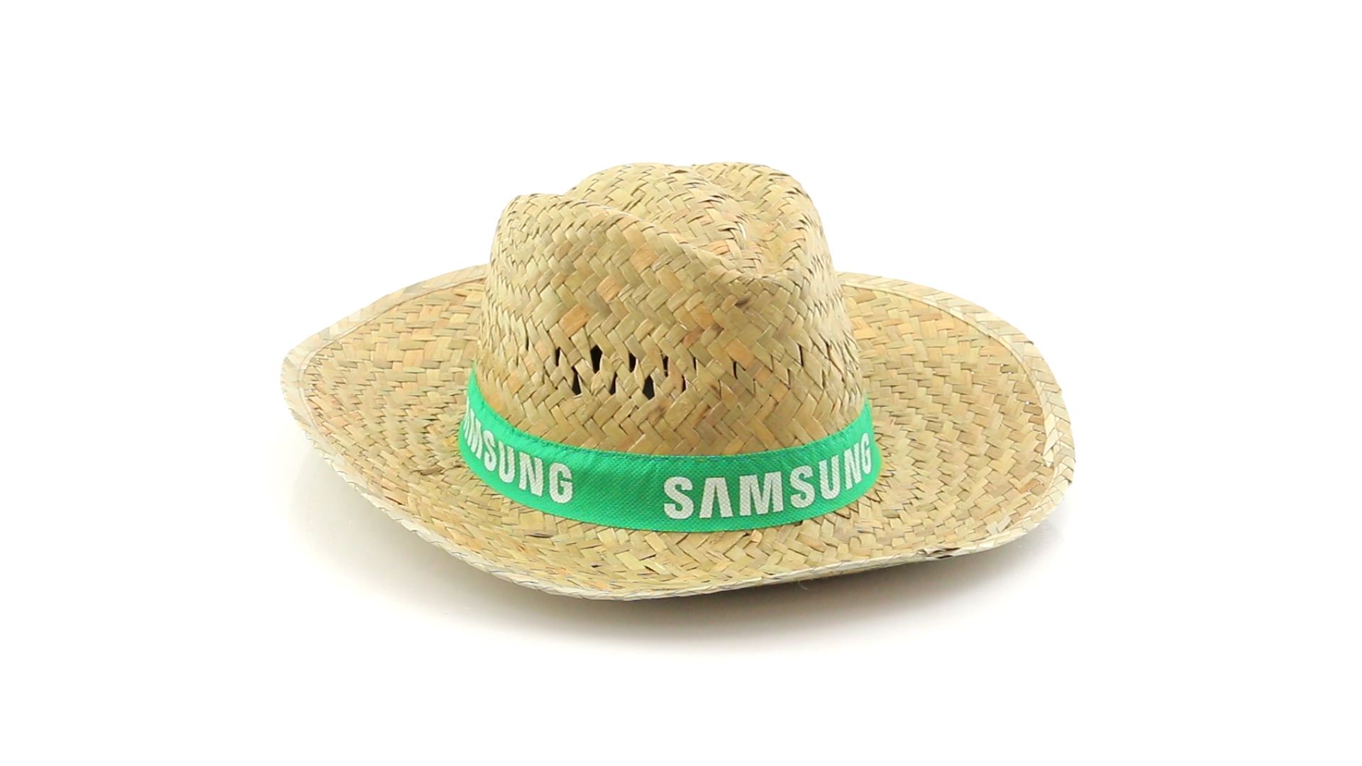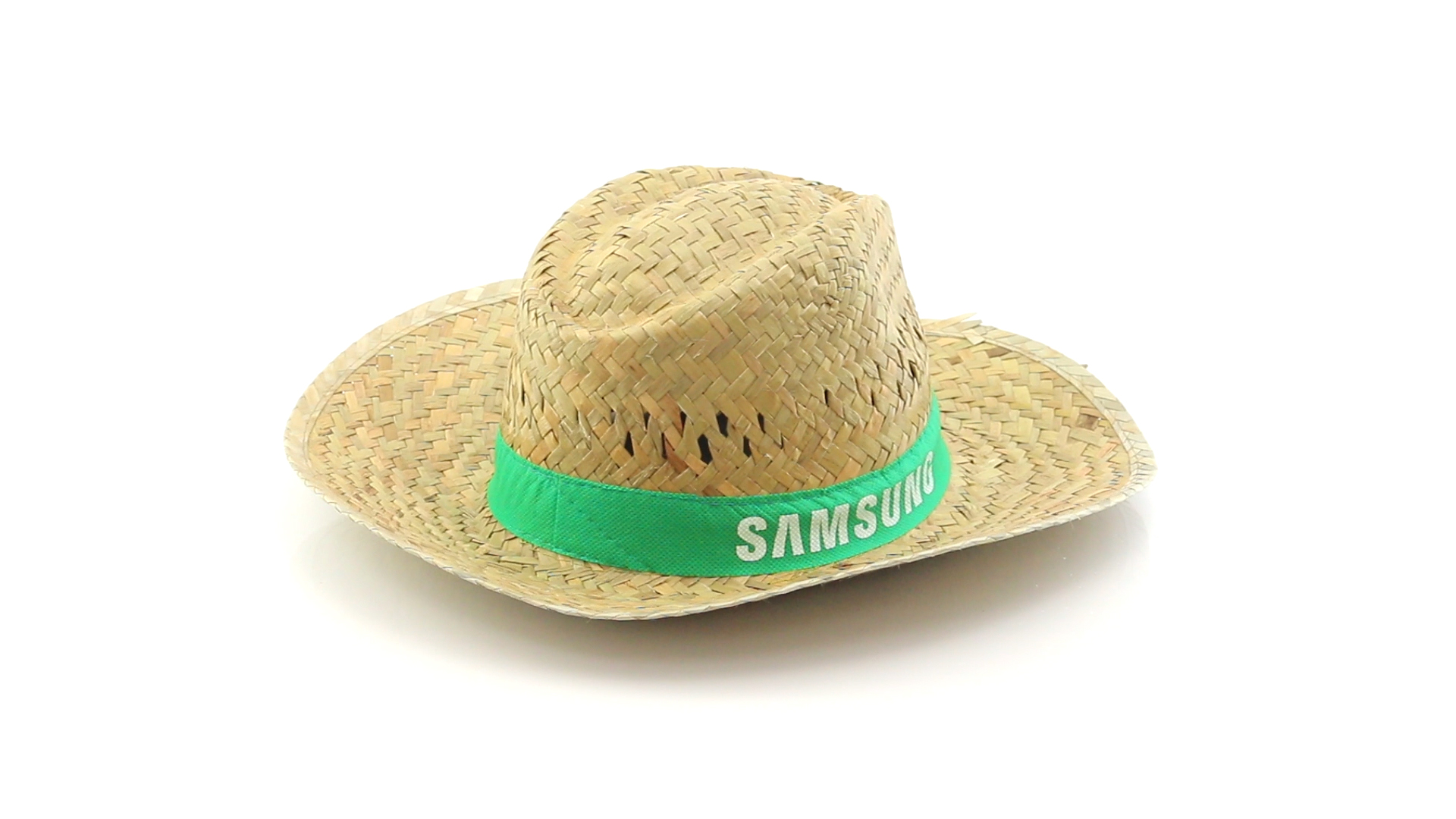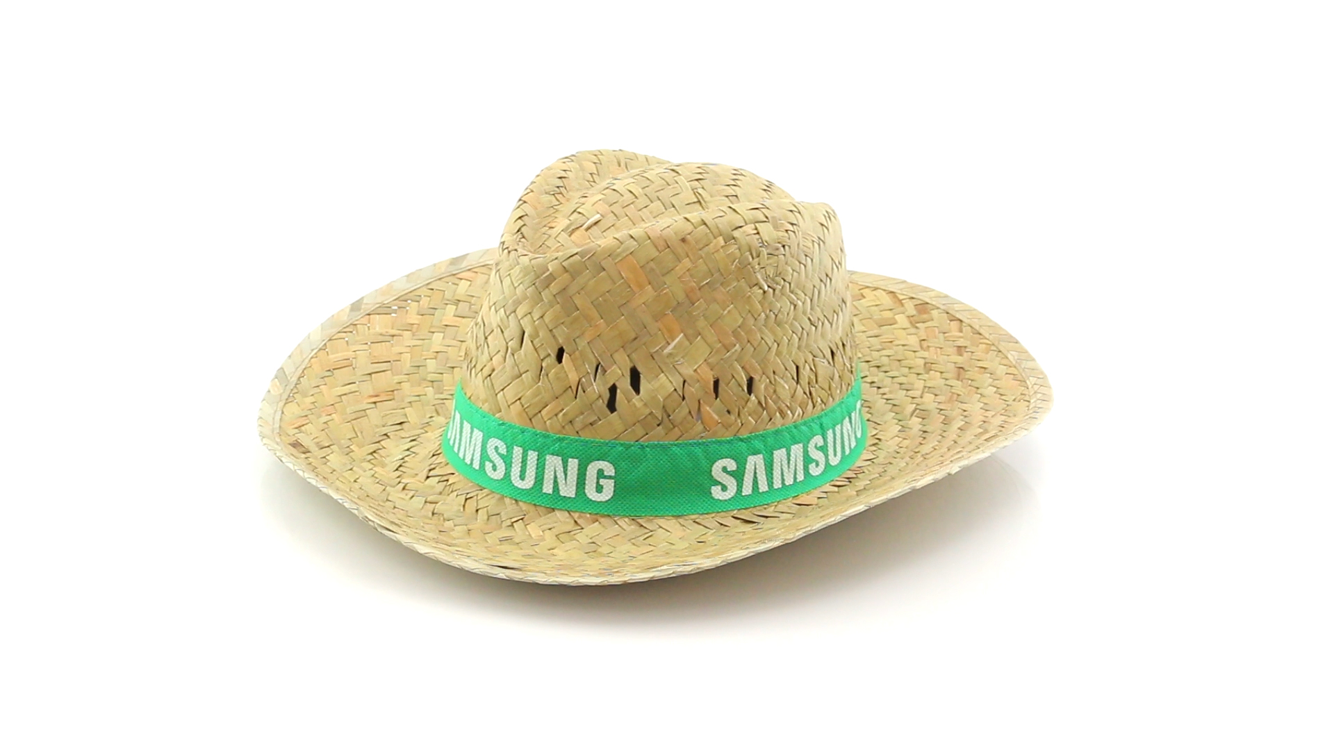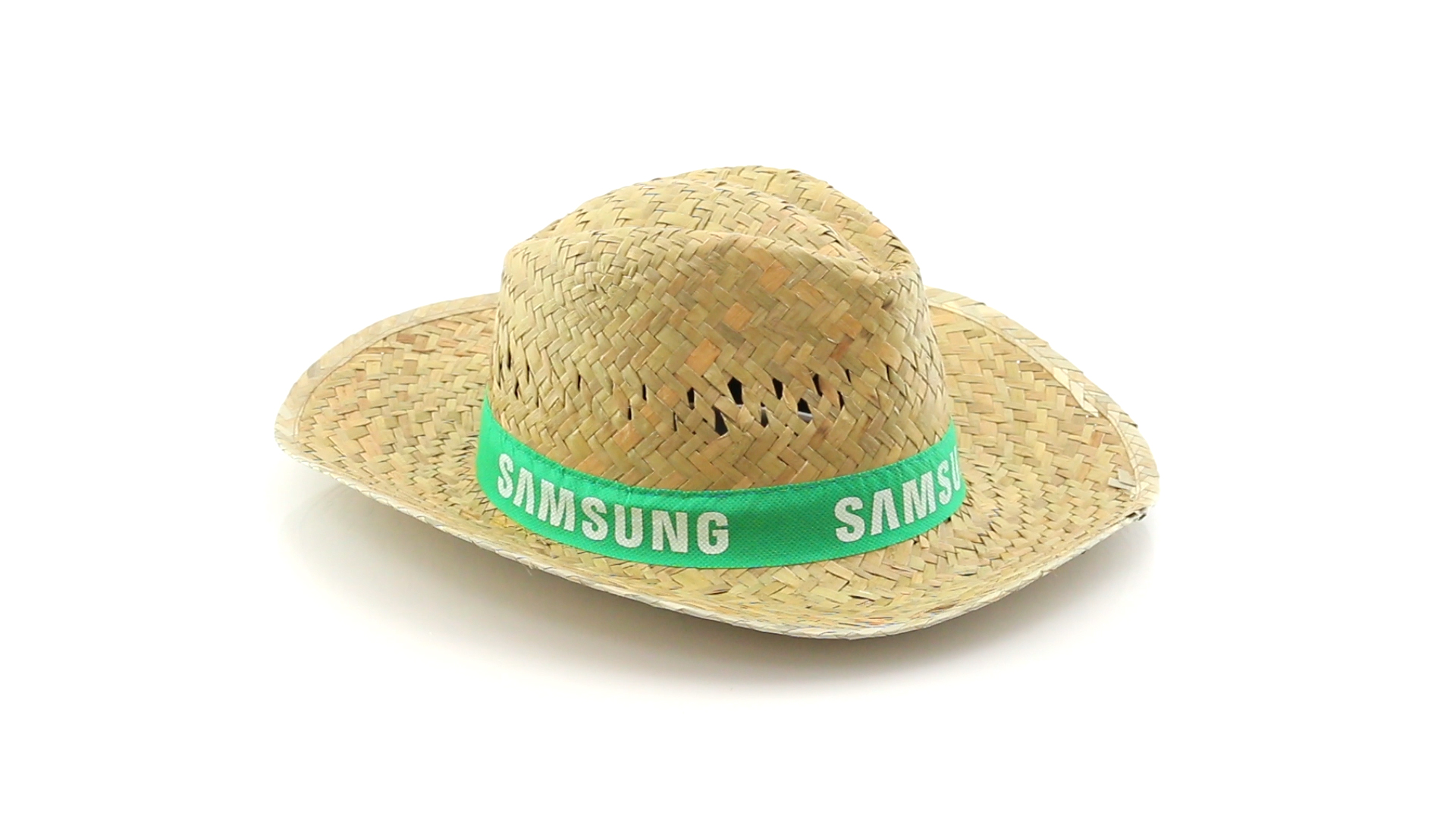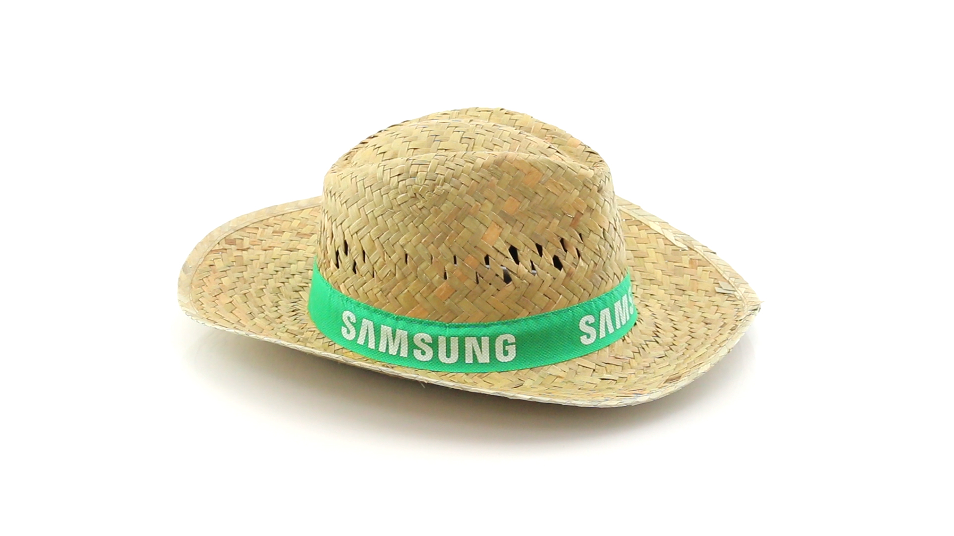 Strohhut. Er ist aus geflochtenem Stroh in natürlicher grüner Farbe hergestellt und durch seine Machart atmungsaktiv. Er hat ein Innenband, um ihn bequemer zu machen.