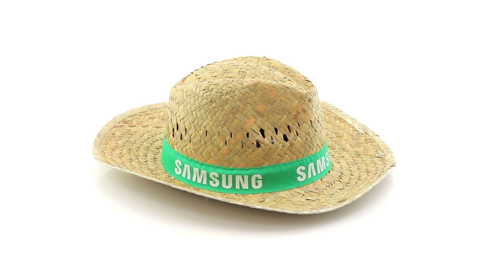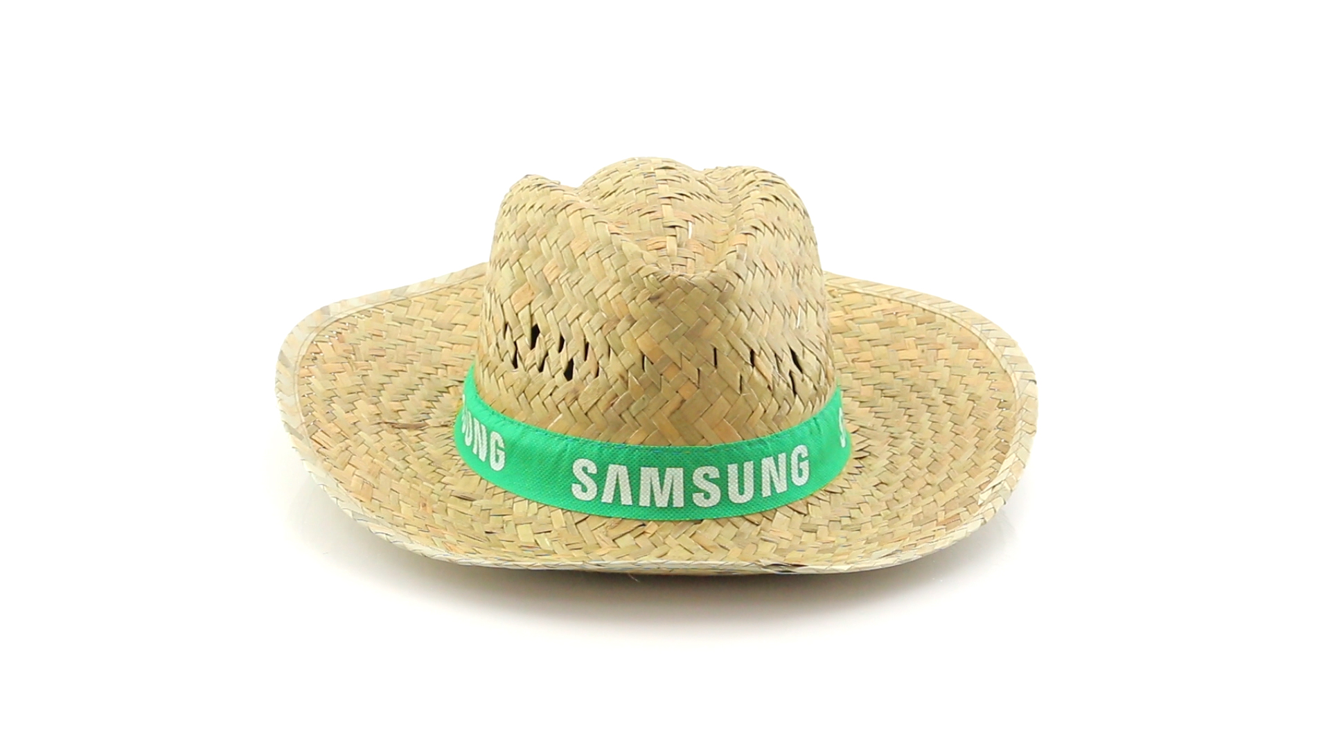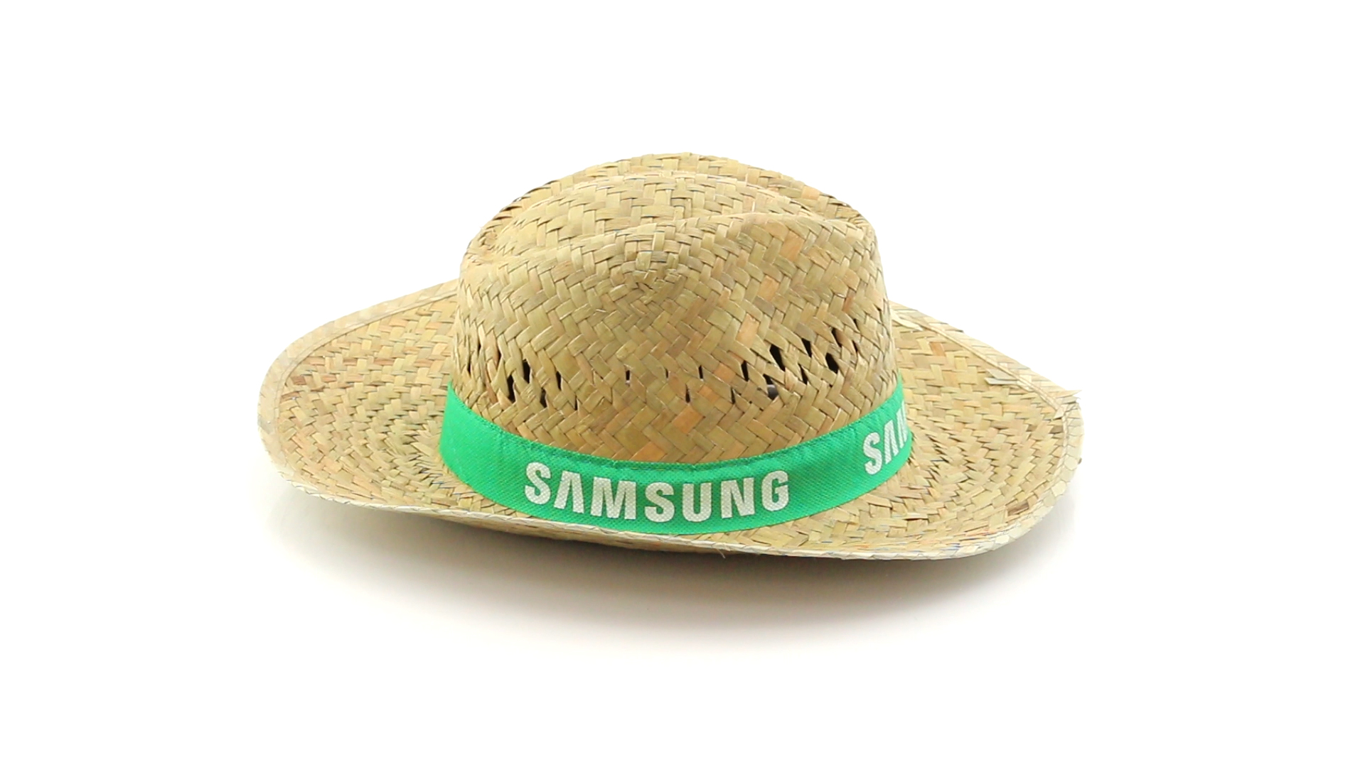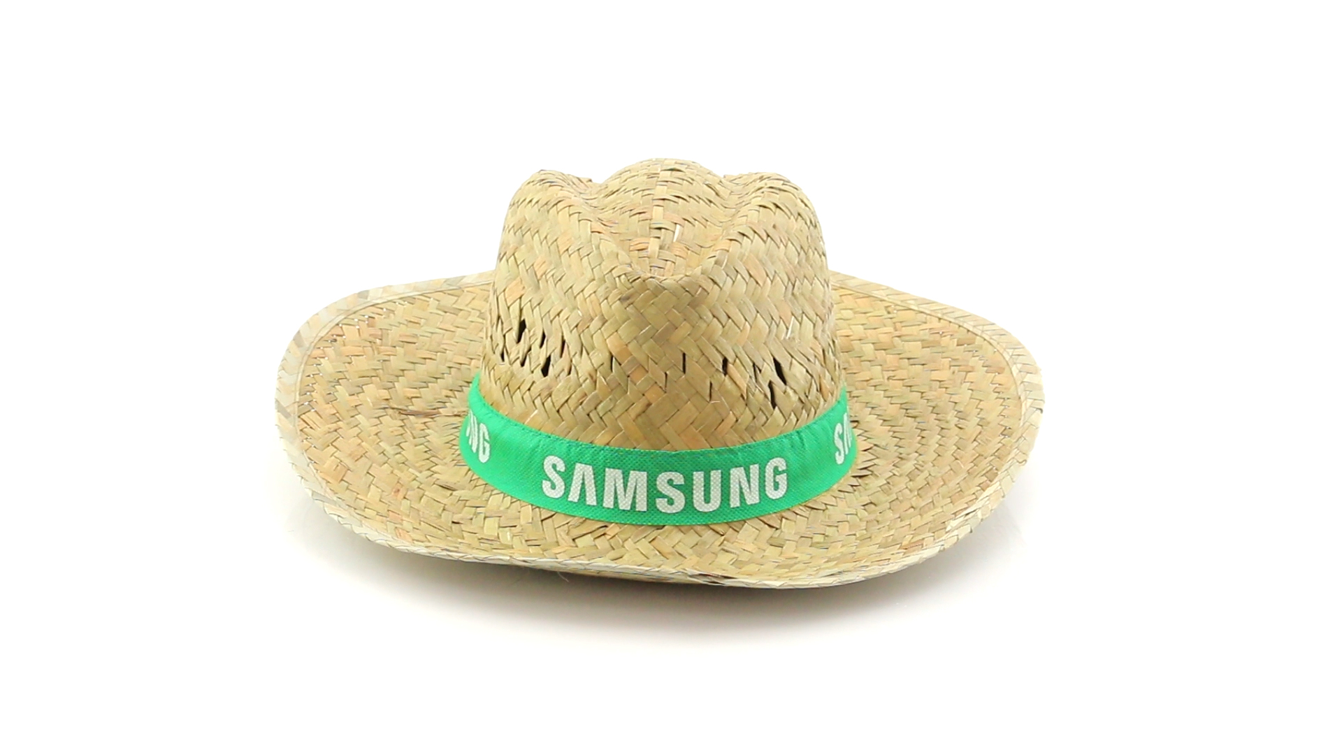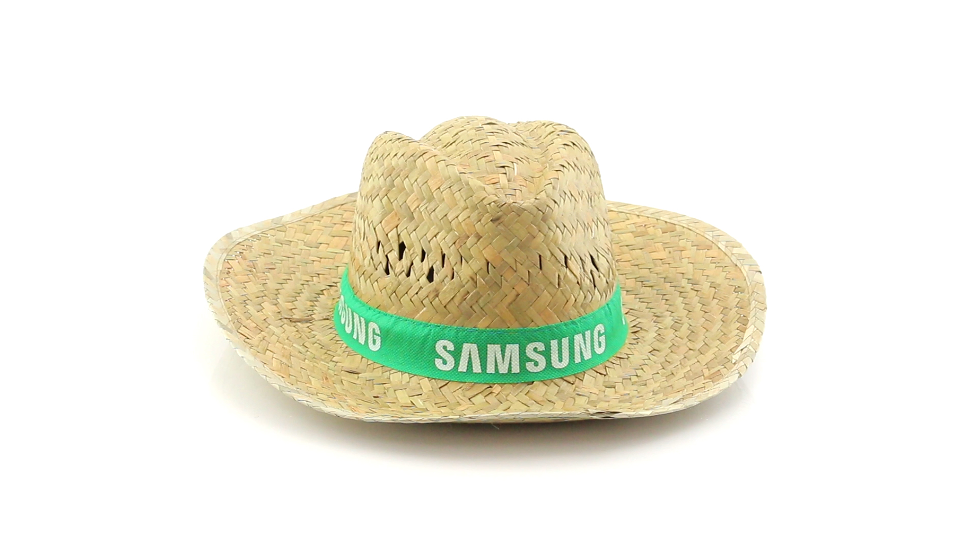Strohhut. Er ist aus geflochtenem Stroh in natürlicher grüner Farbe hergestellt und durch seine Machart atmungsaktiv. Er hat ein Innenband, um ihn bequemer zu machen.