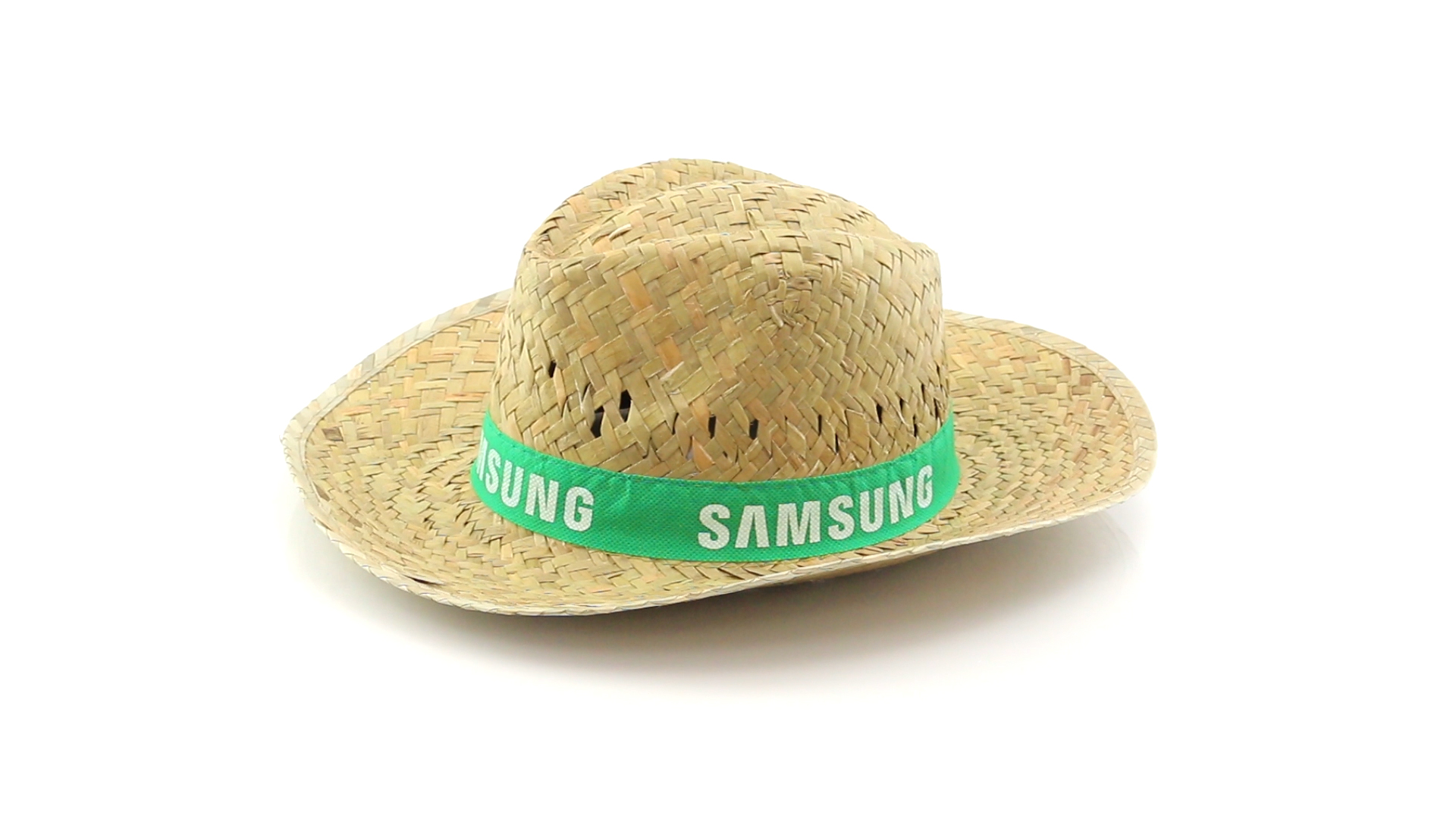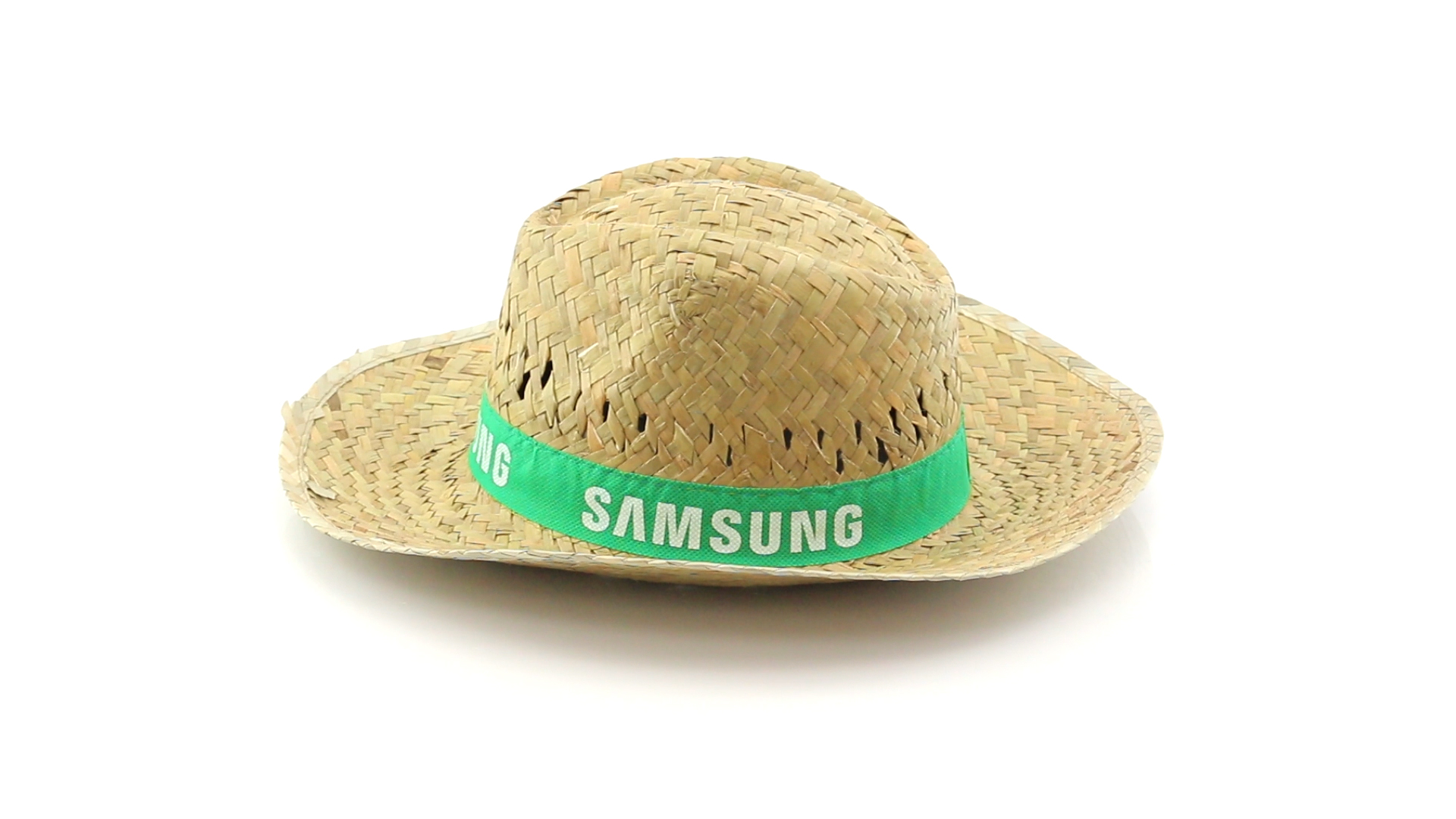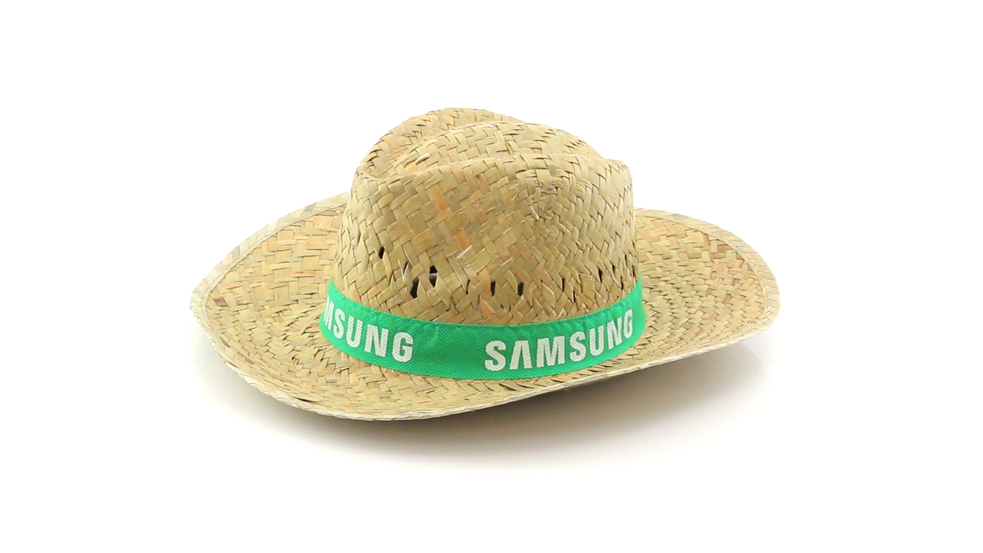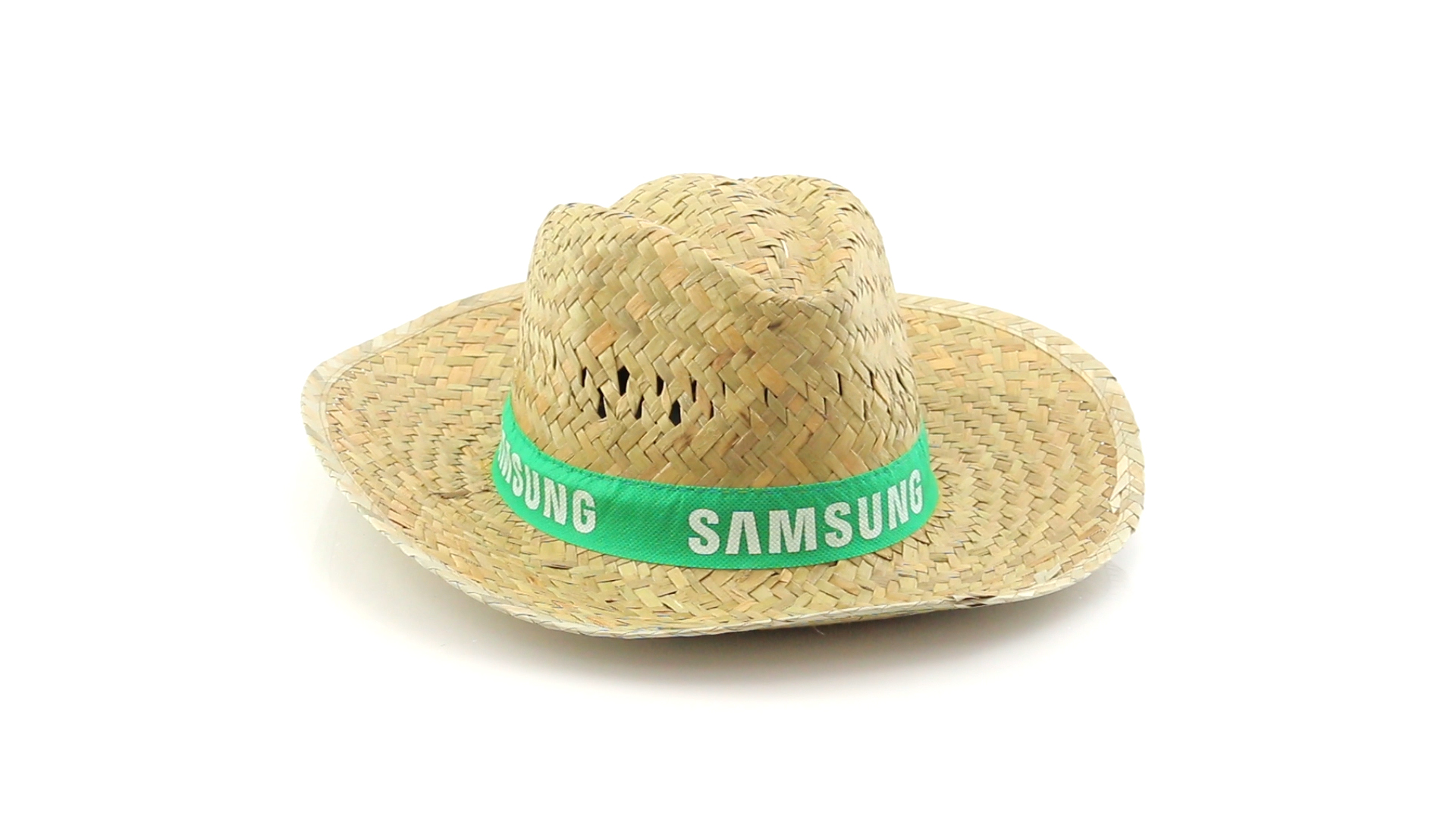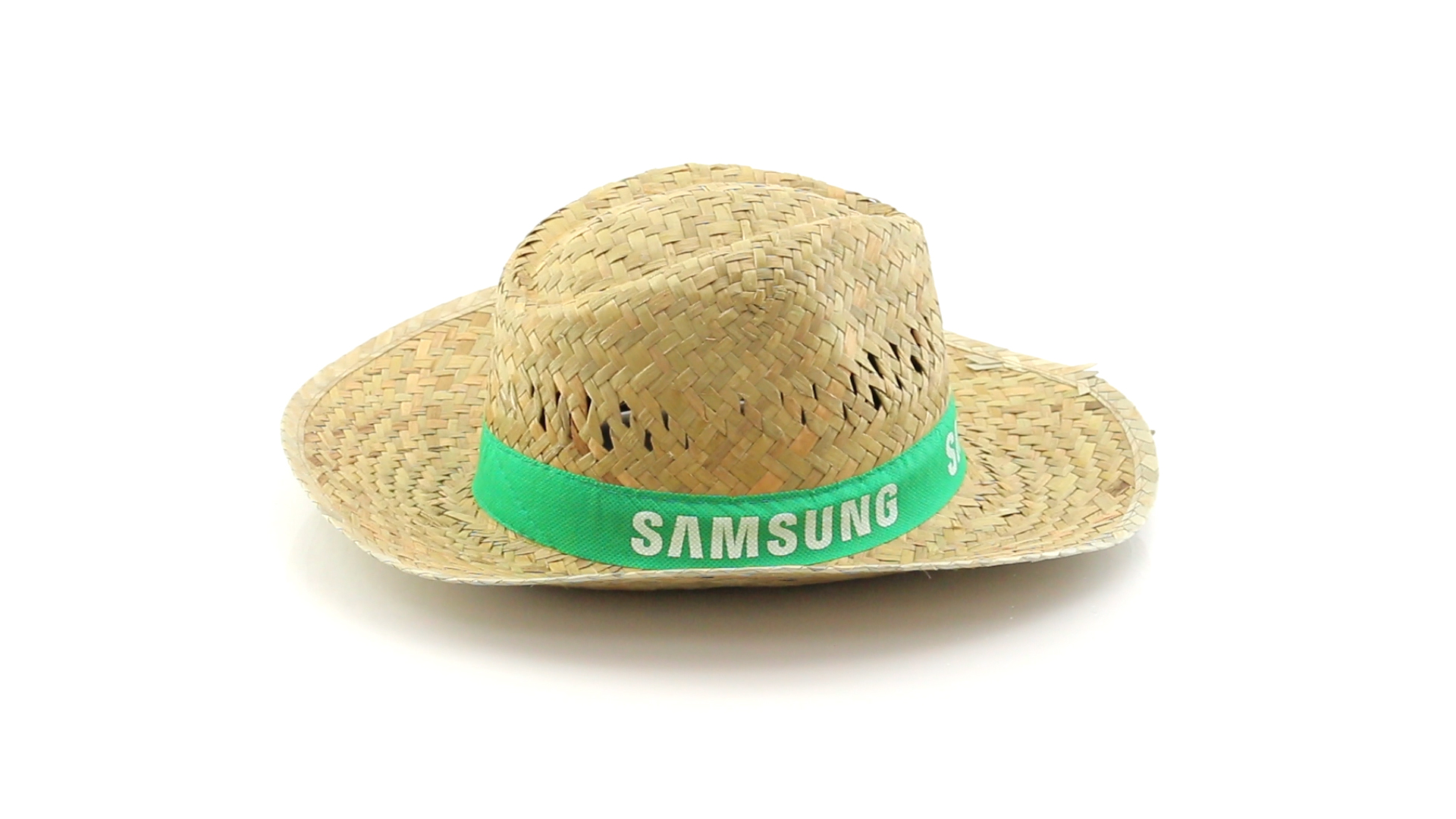 Strohhut. Er ist aus geflochtenem Stroh in natürlicher grüner Farbe hergestellt und durch seine Machart atmungsaktiv. Er hat ein Innenband, um ihn bequemer zu machen.