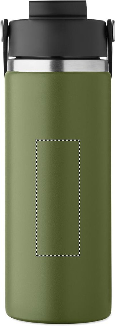 Doppelwandige Isolierflasche aus recyceltem Edelstahl (90 % recycelter Edelstahl und 10 % Edelstahl) mit Henkel. Integrierter Trinkhalm und Trinköffnung. Auslaufsicher. Füllmenge: 500 ml.