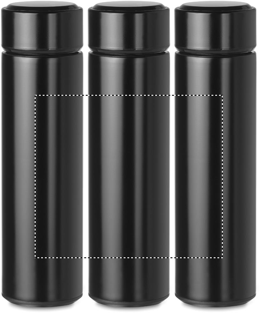 Doppelwandige Isolierkanne aus Edelstahl. Mit Tee-Sieb. Im Deckel befindet sich eine integrierte Touchscreen LED Temperaturanzeige, die die Temperatur des Getränks anzeigt. Inkl. 1 austauschbare CR2032. Batterie. Füllmenge: 450 ml. Auslaufsicher.