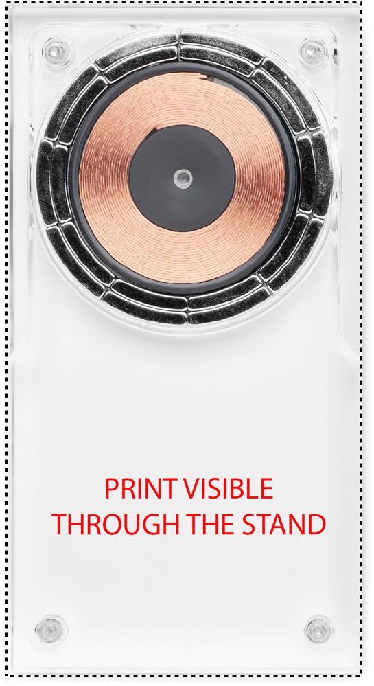 Kabellose Ladestation (15W) aus Acryl mit Smartphone-Halter. Laden Sie Ihr Smartphone durch einfaches Abstellen auf. Ausgang: 9V/1,67A (15W) für schnelles Aufladen.