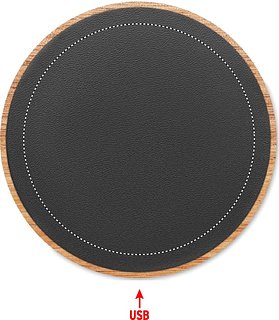 Kabellose Ladestation. Gehäuse aus Akazienholz und recyceltem PU. Verbinden Sie das Gerät mit dem Computer und laden Sie Ihr Smartphone durch einfaches Auflegen auf. Ausgang: DC 9V/1.67A (15W). Kompatibel mit allen QI-fähigen Geräten wie den neuesten Android Smartphones, iPhone® 8 und X und höher.