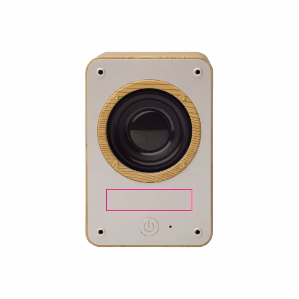 Rechteckiger kabelloser Lautsprecher in Holzoptik. Ansprechendes und modernes Design mit einer guten Soundqualität mit 3 Watt. Einzeln verpackt in einer Geschenkbox.