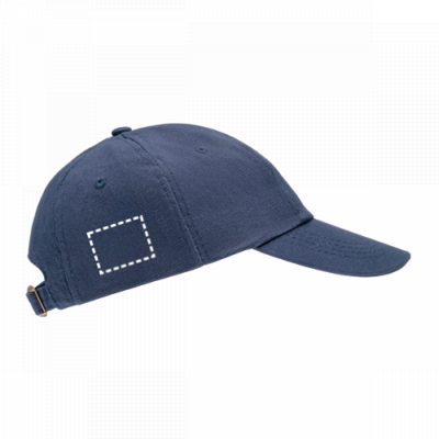 Kappe aus 100% Baumwolle mit 6 Segmenten, Belüftungsöffnungen und verstellbarer Metallschnalle. Grösse: 580 mm
