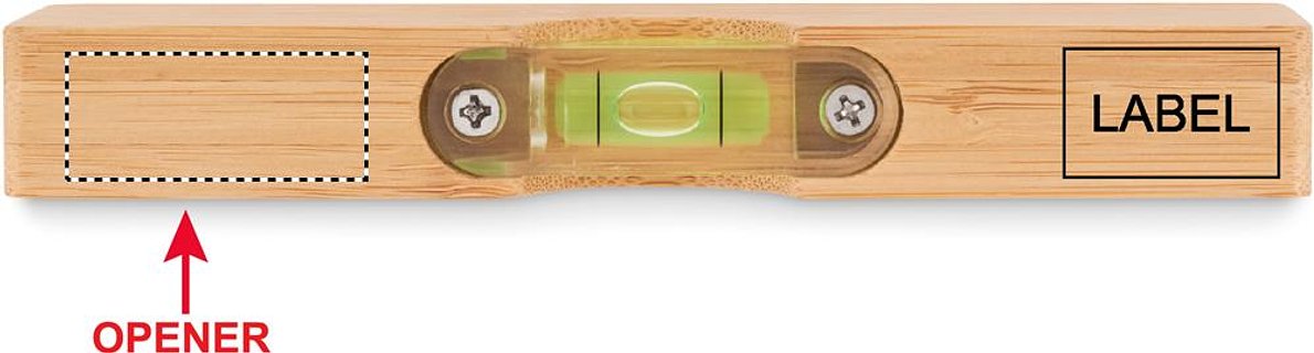 Kleine Wasserwaage aus Bambus mit integriertem Kapselheber. Bambus ist ein natürliches Produkt, es kann daher zu leichten Abweichungen in Farbe, Dekor und Massen kommen.