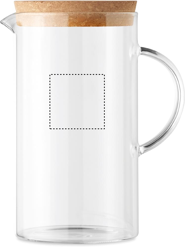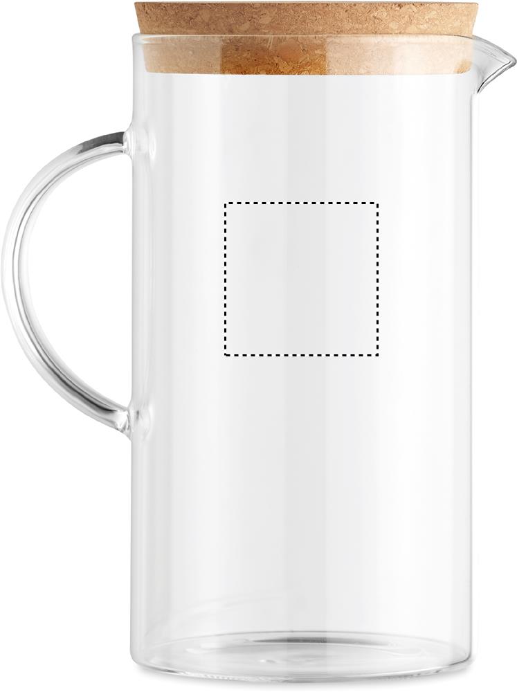 Wasser/Saft-Karaffe aus Borosilikatglas mit Verschluss aus Kork. Füllmenge: 1000 ml. Kork ist ein 100% natürliches Material. Aufgrund seiner strukturellen Beschaffenheit und Oberflächenporosität kann das endgültige Druckergebnis pro Artikel Abweichungen aufweisen.