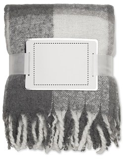 Mohair-RPET Polyester Decke mit Karomuster und Hand-gerollten Fransen. Inkl. Band mit bedruckbarer Karte.