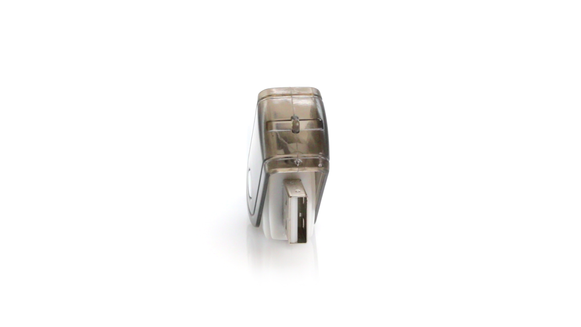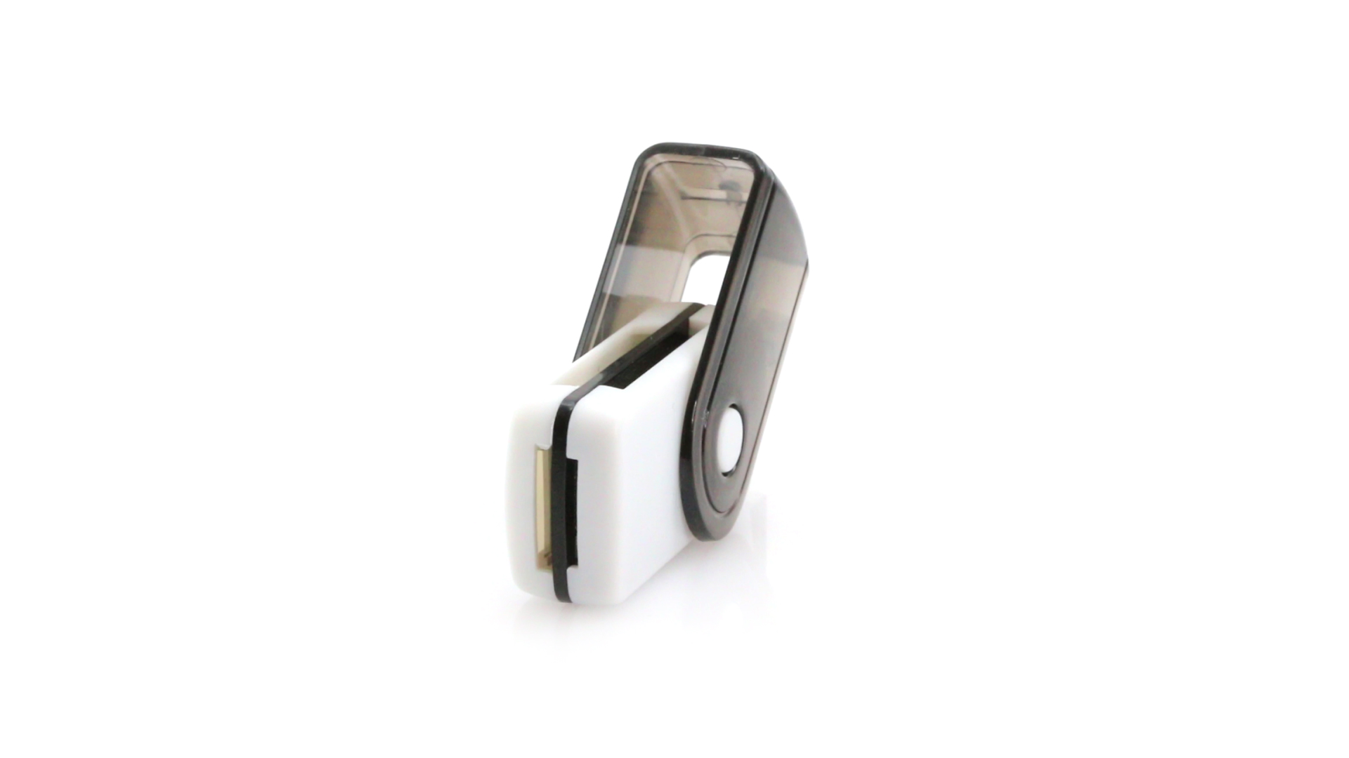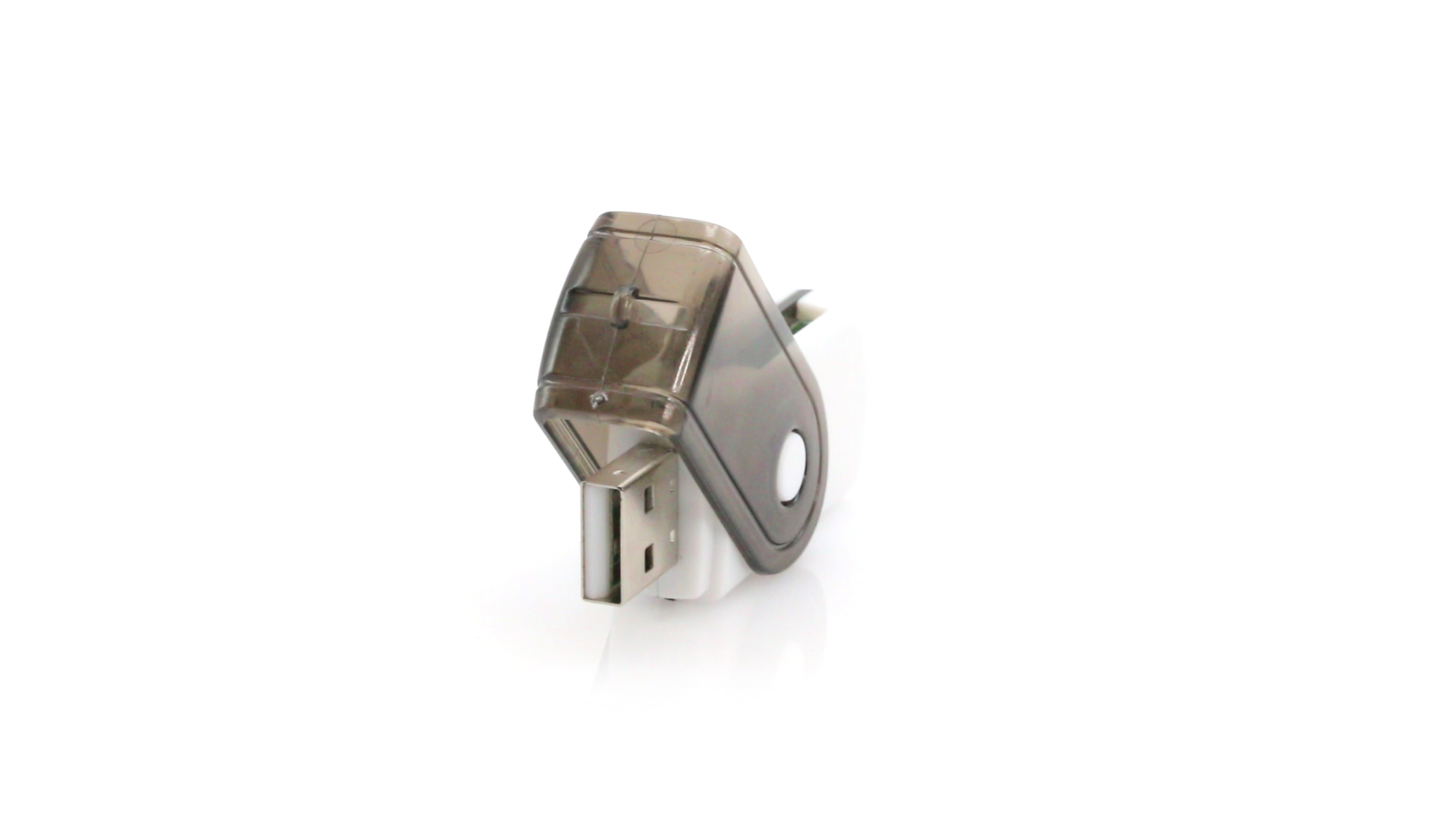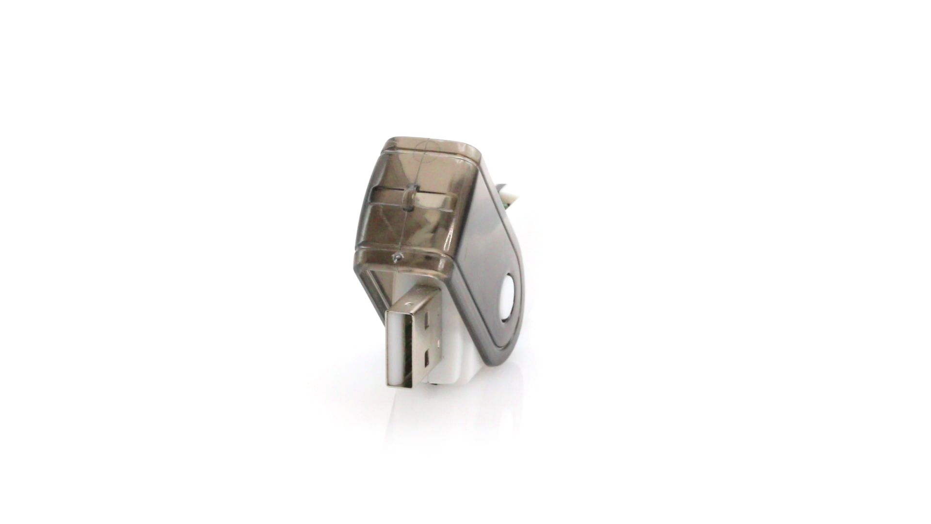 Origineller Kartenleser mit Drehöffnung, USB 2.0-Anschluss und fröhlichem zweifarbigem Design. Kompatibel mit M2, MS Duo, Micro SD und SD Karten. Präsentiert in einer individuellen Box.