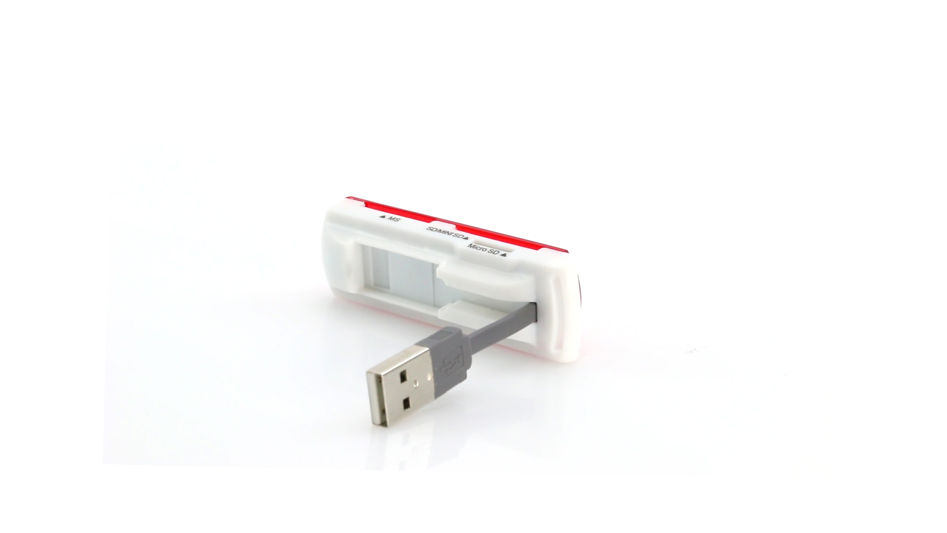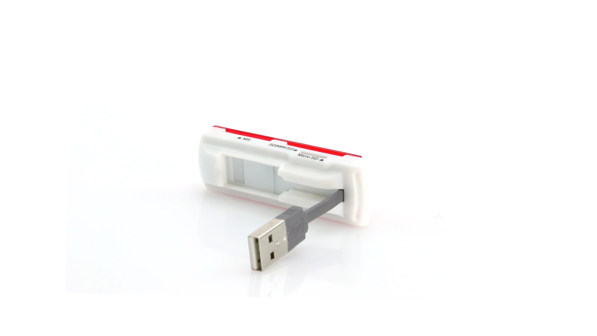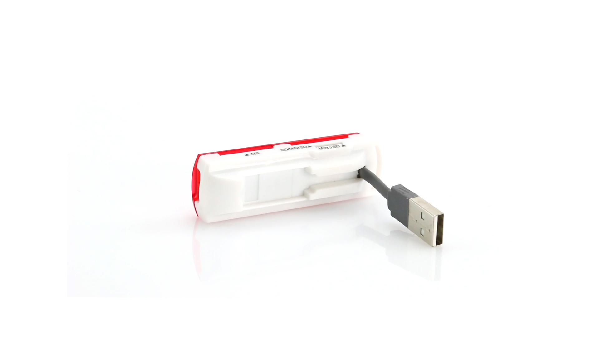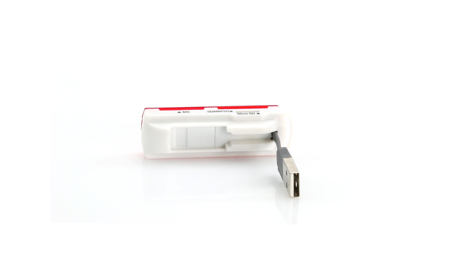 Kompakter zweifarbiger Speicherkartenleser mit halbtransparentem Gehäuse. Slots geeignet für eine Vielzahl von Speicherkarten: MS, MS Duo, MS Pro Duo, MicroSD und MiniSD. Präsentiert in einer individuellen Box.