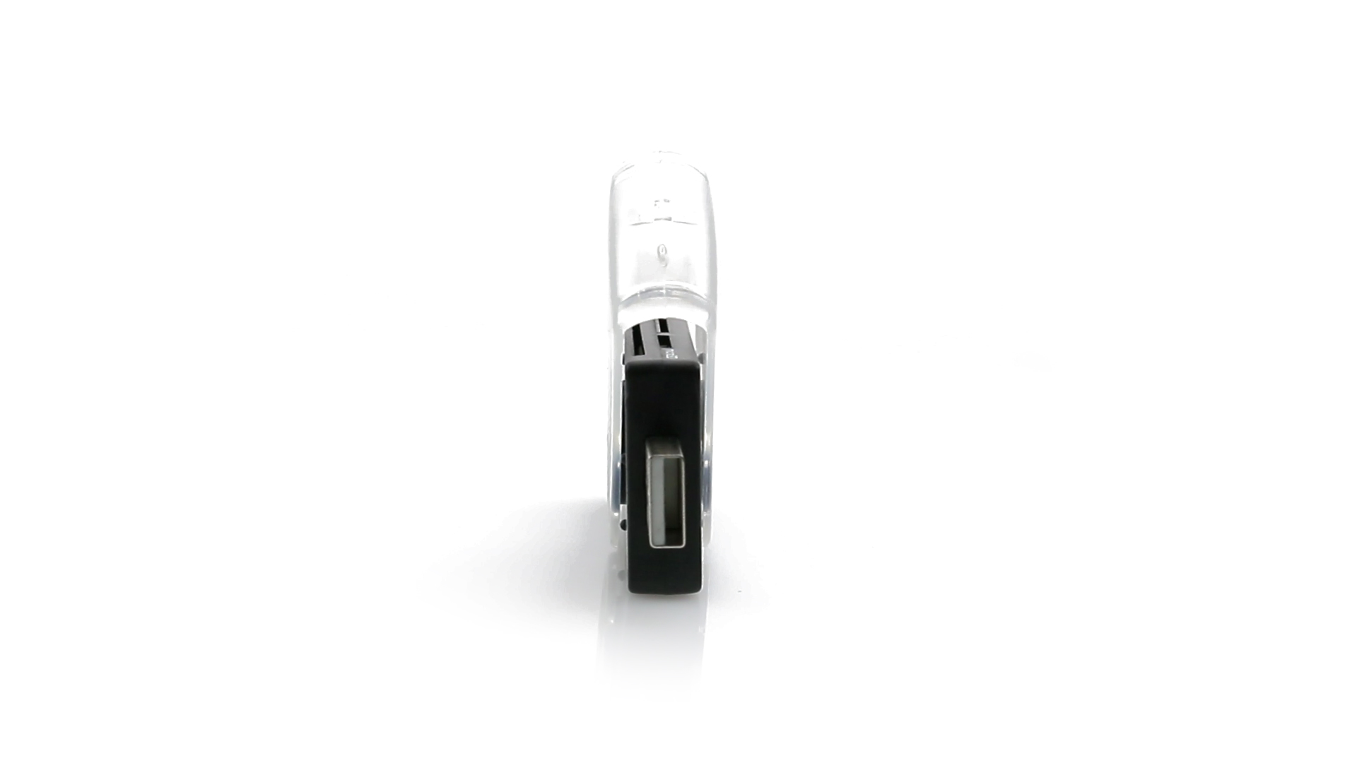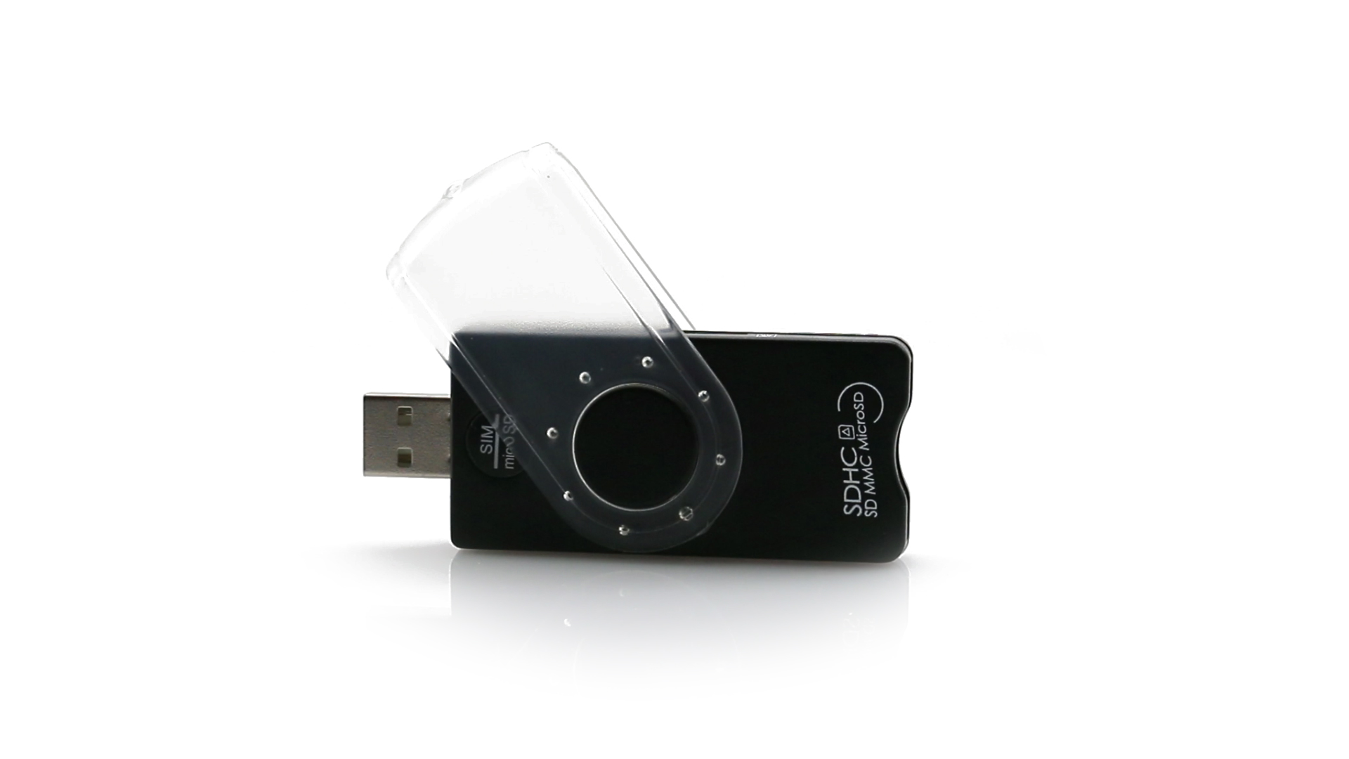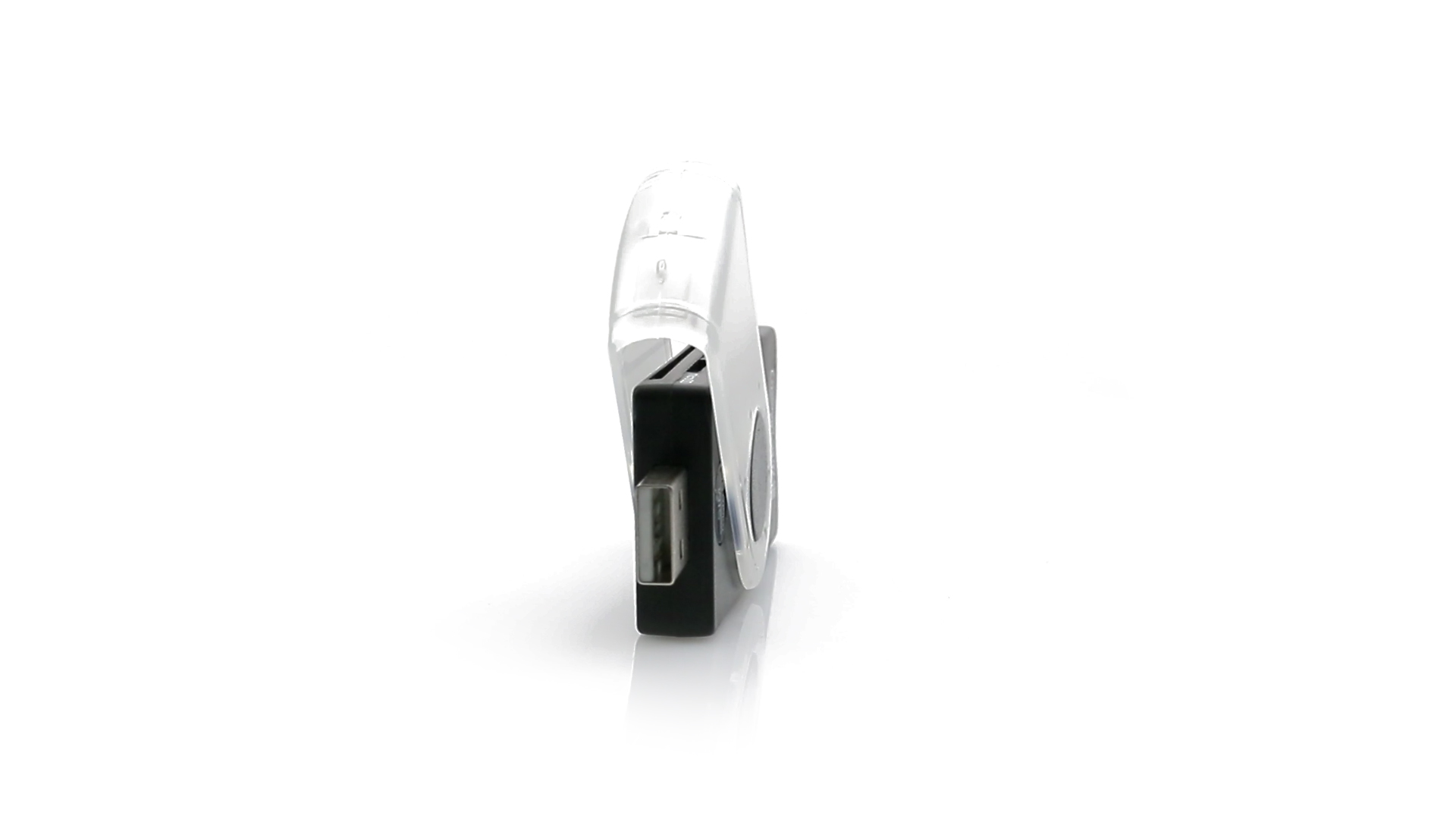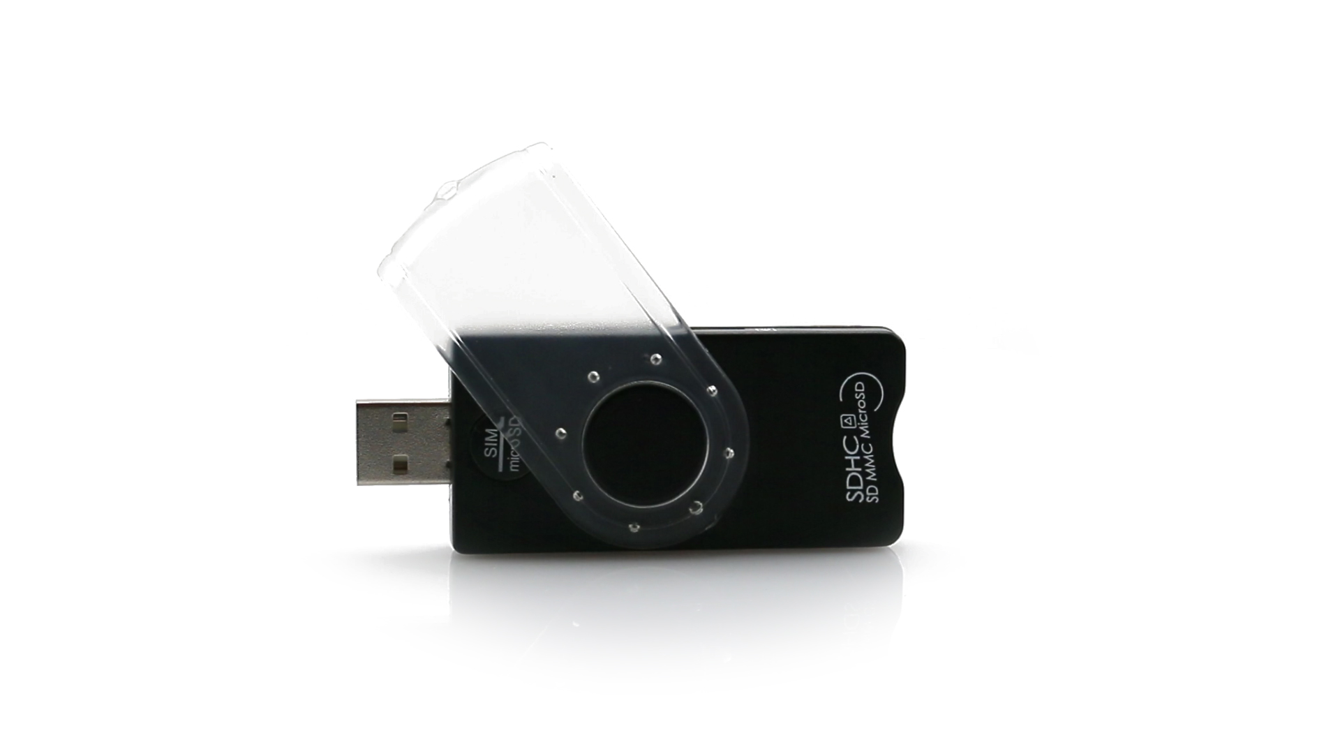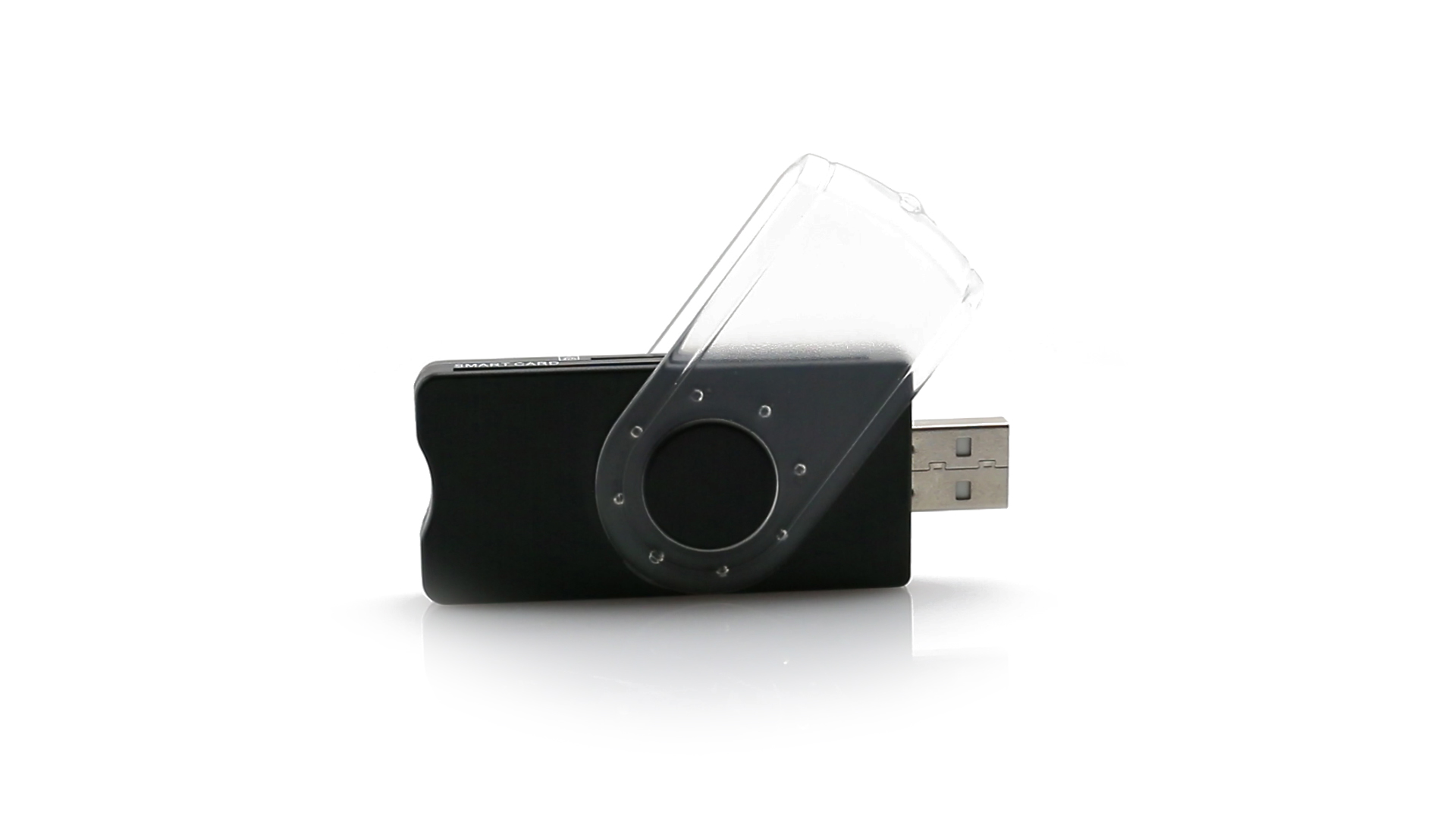Praktischer ID/Chipkartenleser mit USB 2.0 Anschluss. Mit drehbarer Öffnung und minimalistischem Design. Geeignet für MS, M2, SD, MiniSD, SmartCards, SIM und MicroSD Speicherkarten. Kompatibel mit Windows und Mac OS. Präsentiert in einer individuellen Pappschachtel mit satiniertem schwarzem Finish.