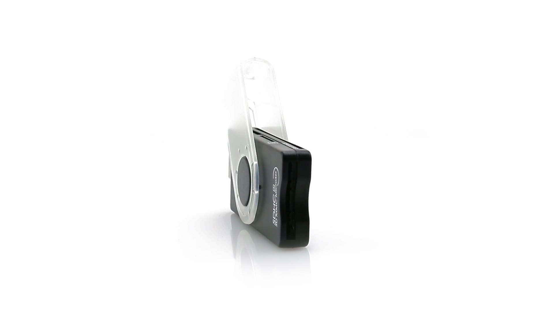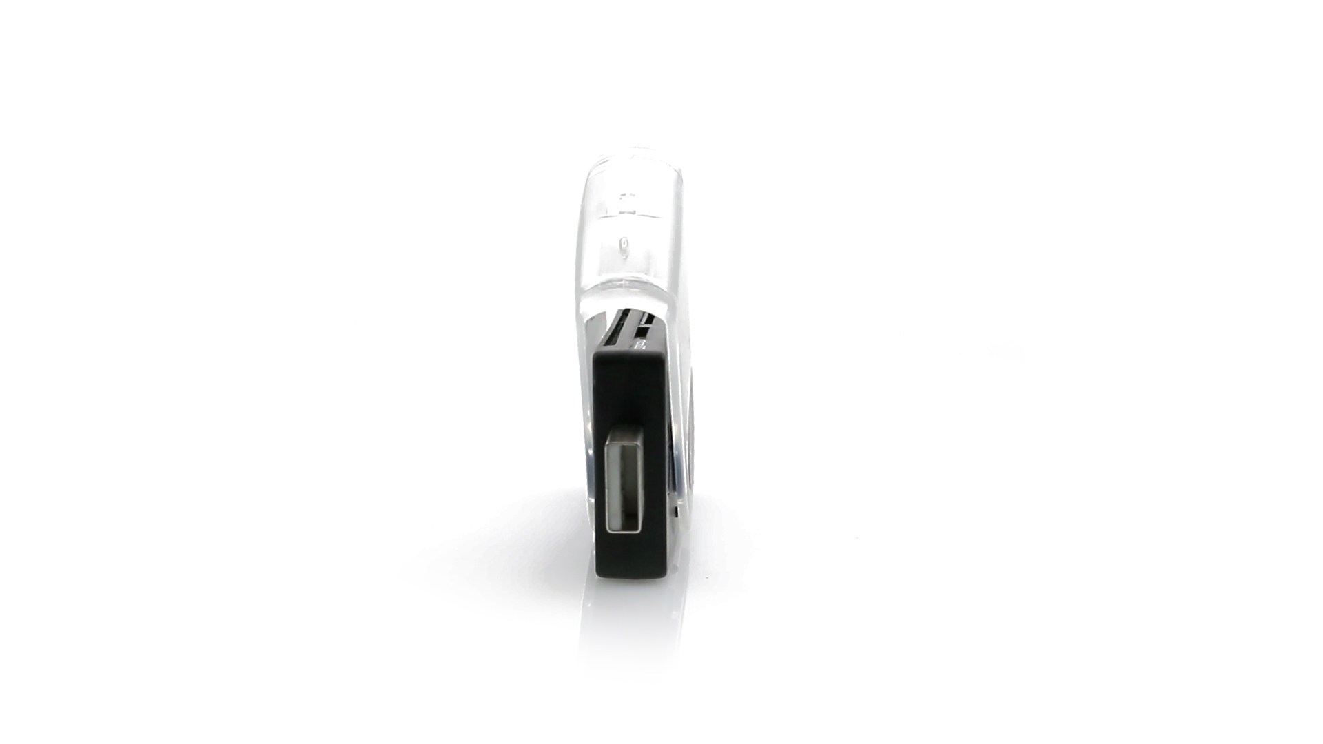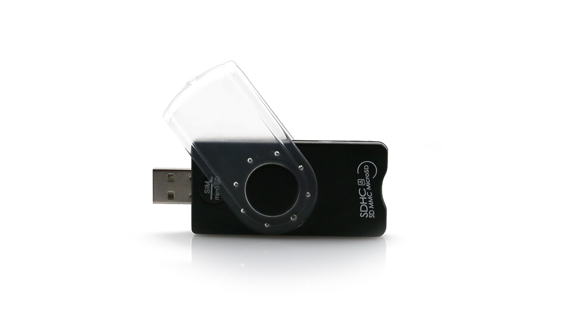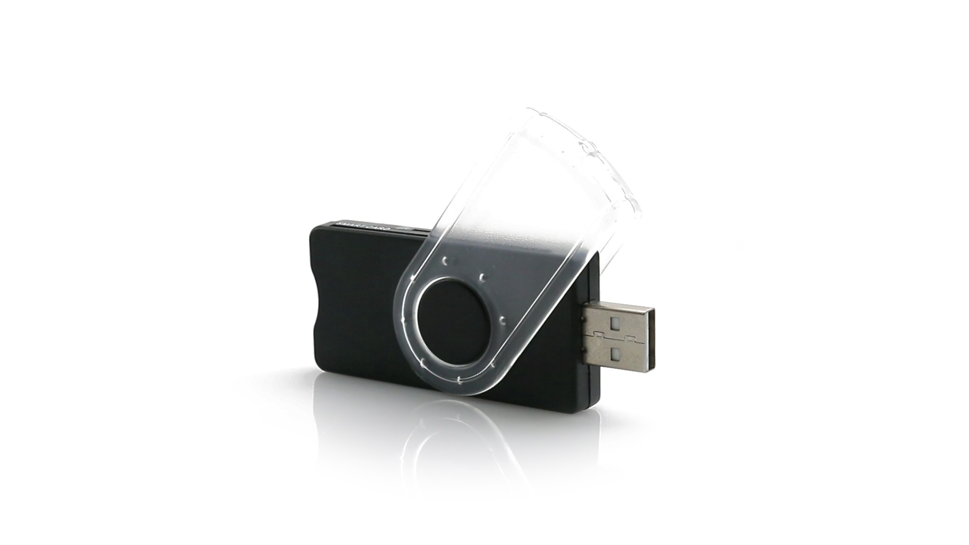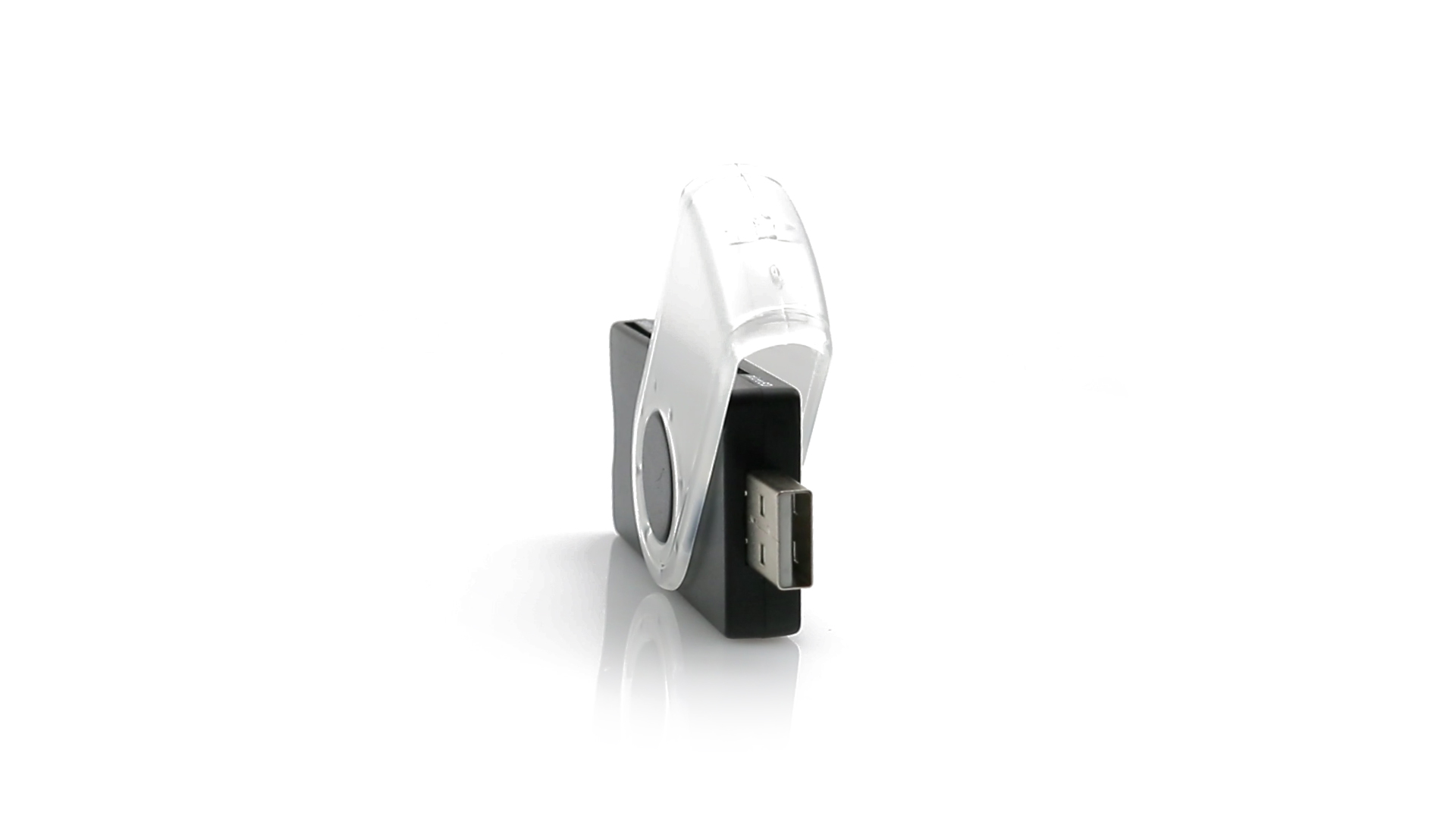Praktischer ID/Chipkartenleser mit USB 2.0 Anschluss. Mit drehbarer Öffnung und minimalistischem Design. Geeignet für MS, M2, SD, MiniSD, SmartCards, SIM und MicroSD Speicherkarten. Kompatibel mit Windows und Mac OS. Präsentiert in einer individuellen Pappschachtel mit satiniertem schwarzem Finish.