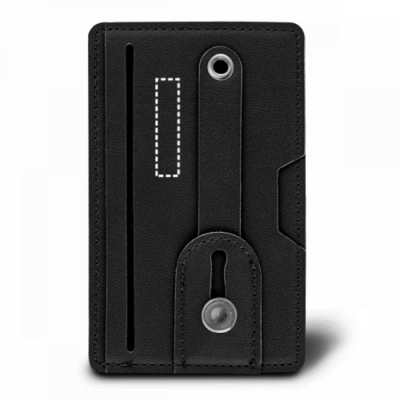 Kartenhalter aus PU für Smartphone mit RFID-Schutz und einer Kapazität bis zu 2 Kreditkarten. Dieser Kartenhalter hat ein verstellbares PU-Band auf der Vorderseite und ein Klebeband auf der Rückseite. 102 x 63 x 3 mm