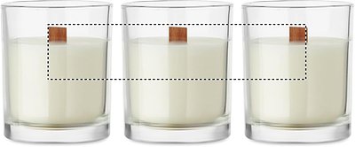Kerze auf pflanzlicher Basis im Glas mit Holzdocht. Duft: Vanille. 80 g. Brenndauer: 14 Stunden.