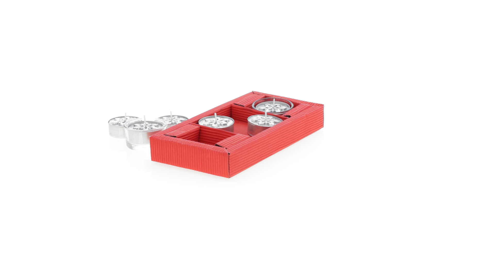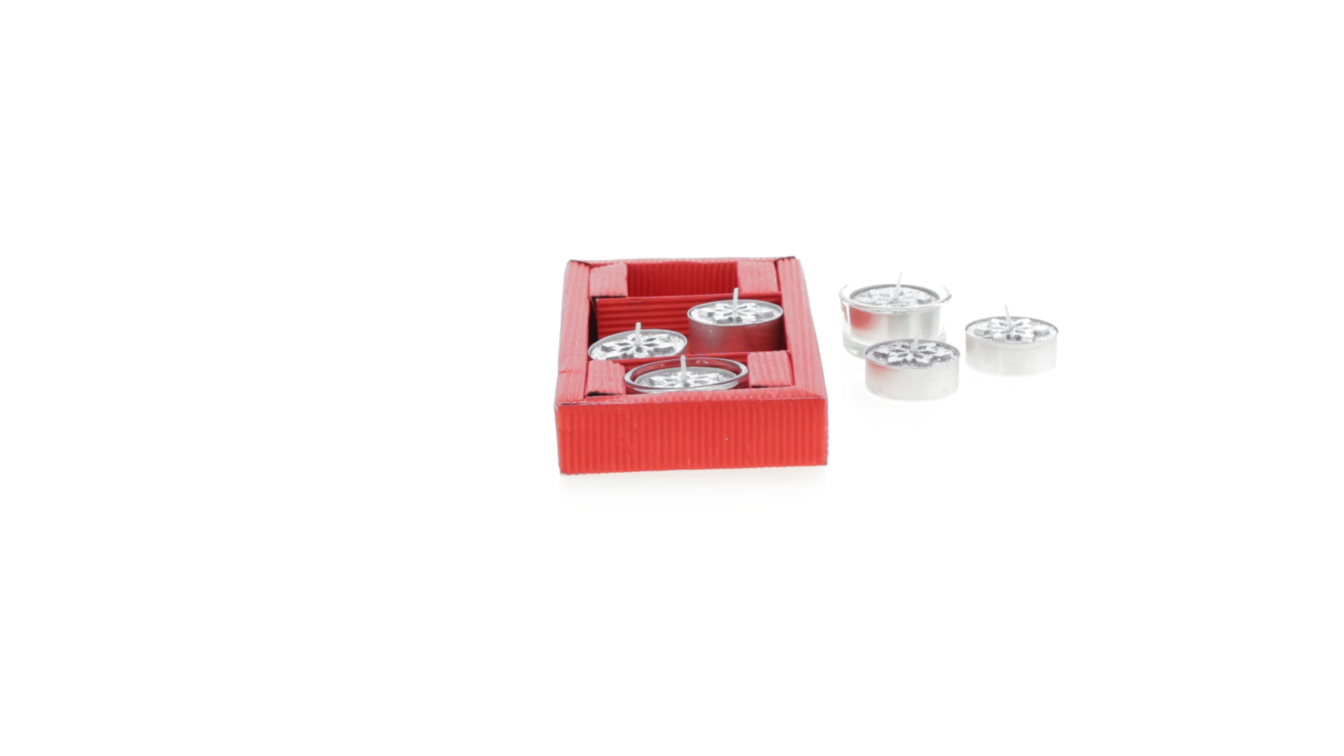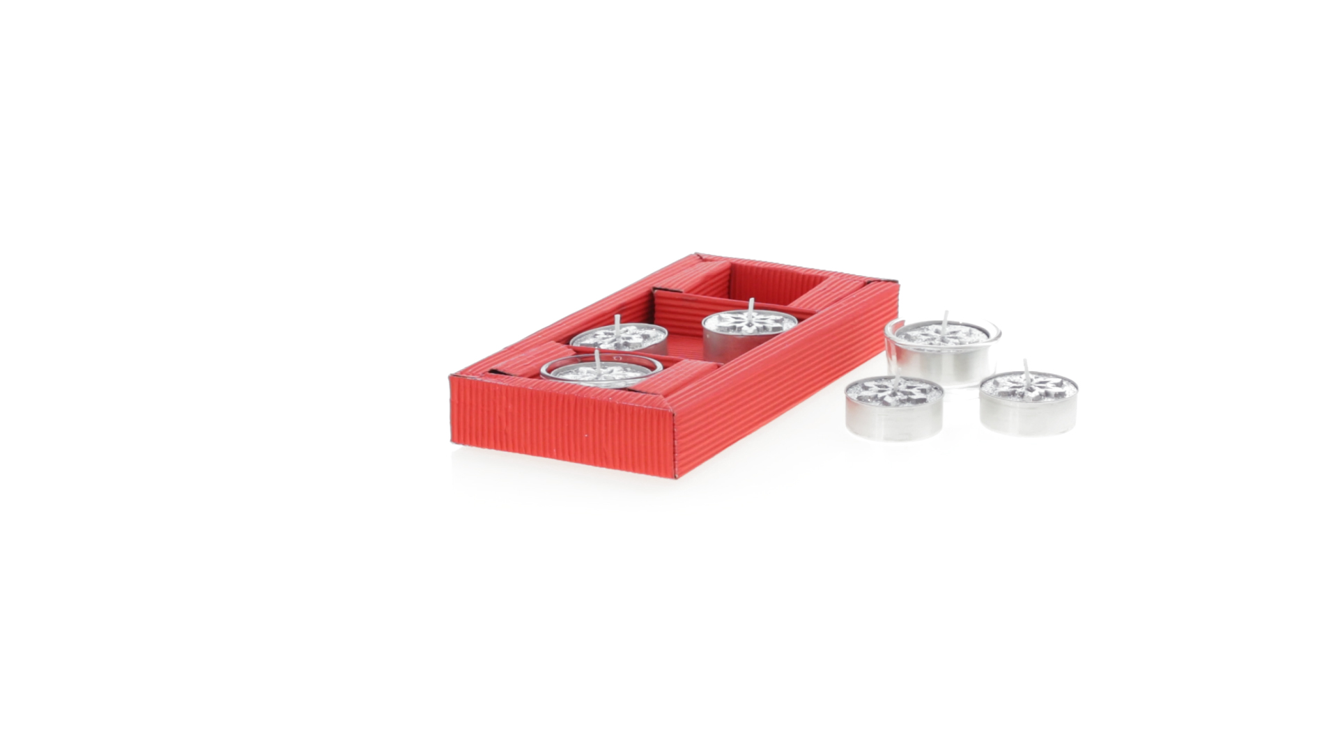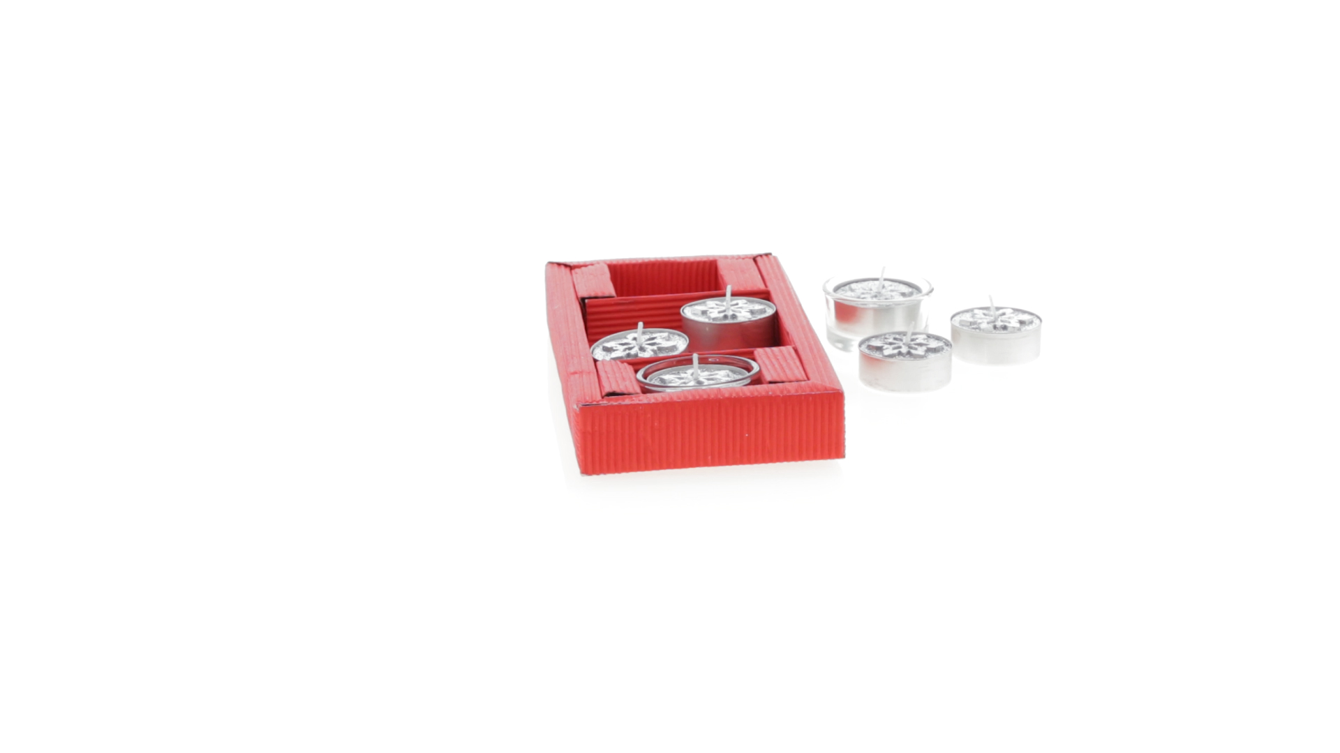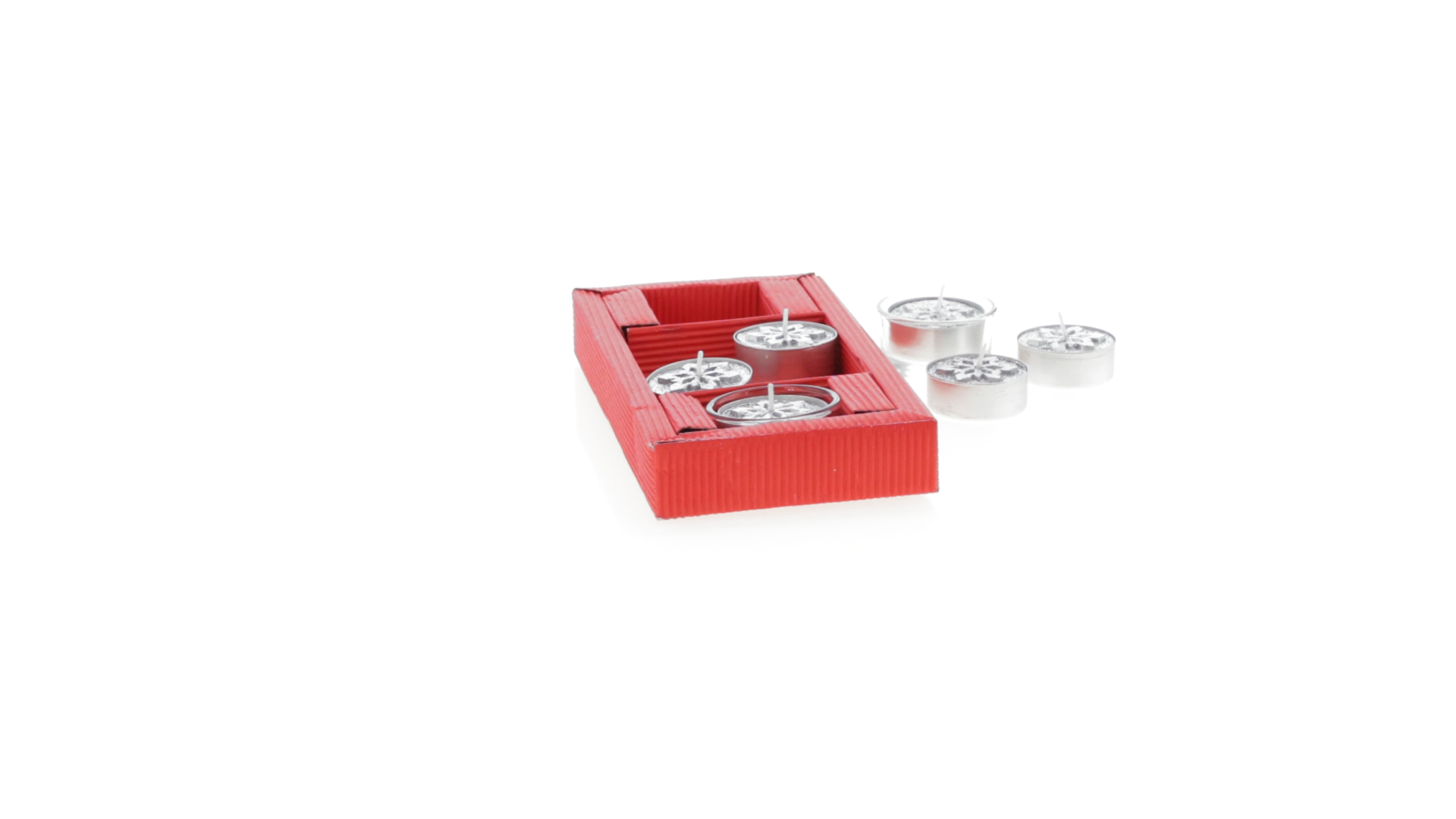 8-teiliges Kerzen-Set in einer individuellen Box in Weihnachtsrot, mit Fenster und Schleifenband. Enthält 6 Kerzen und 2 Kerzenhalter aus Glas.