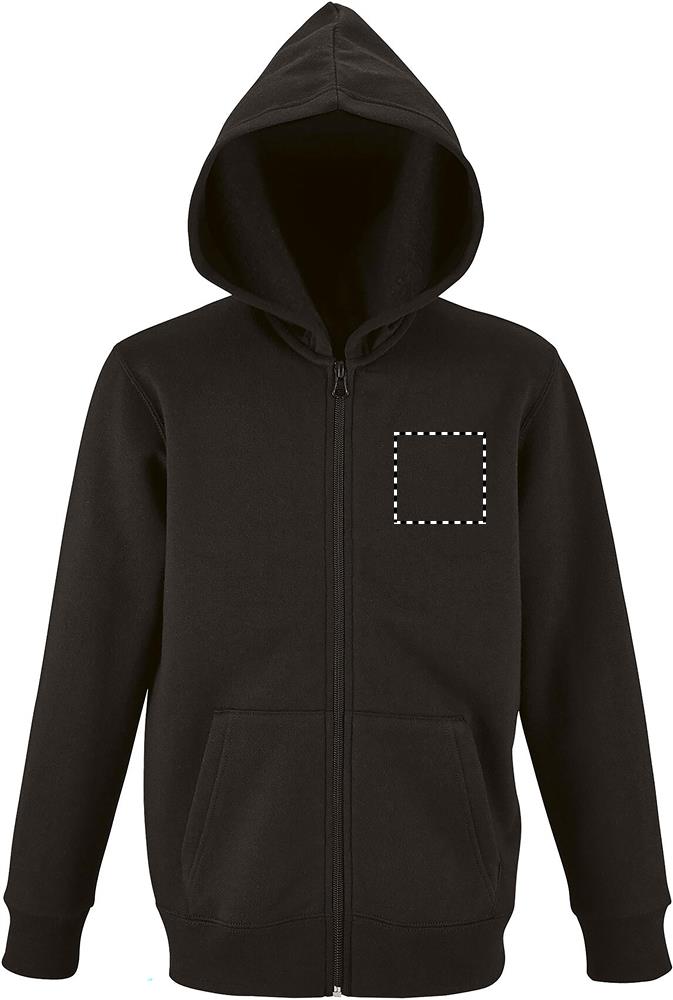 SOL'S STONE KIDS, KIDS' ZIP HOODIE, 50% ringgesponnene Baumwolle - 50% Polyester BRUSHED FLEECE 260, angesetzte Ärmel, 2 Kängurutaschen, Kapuze, gerippte Bündchen an Ärmeln und Saum, schlauchförmig. Zur Grössenanpassung beachten Sie bitte die Grössentabelle im Abschnitt Produktdokumentation.