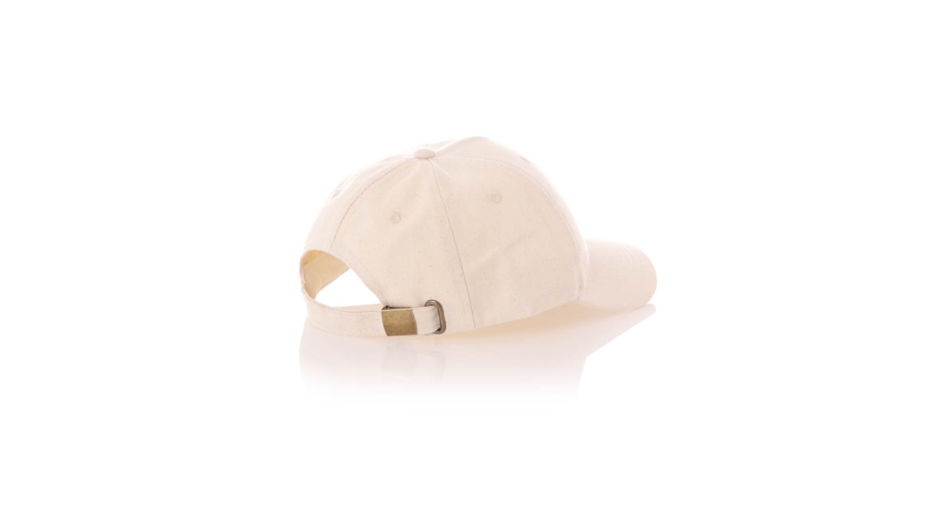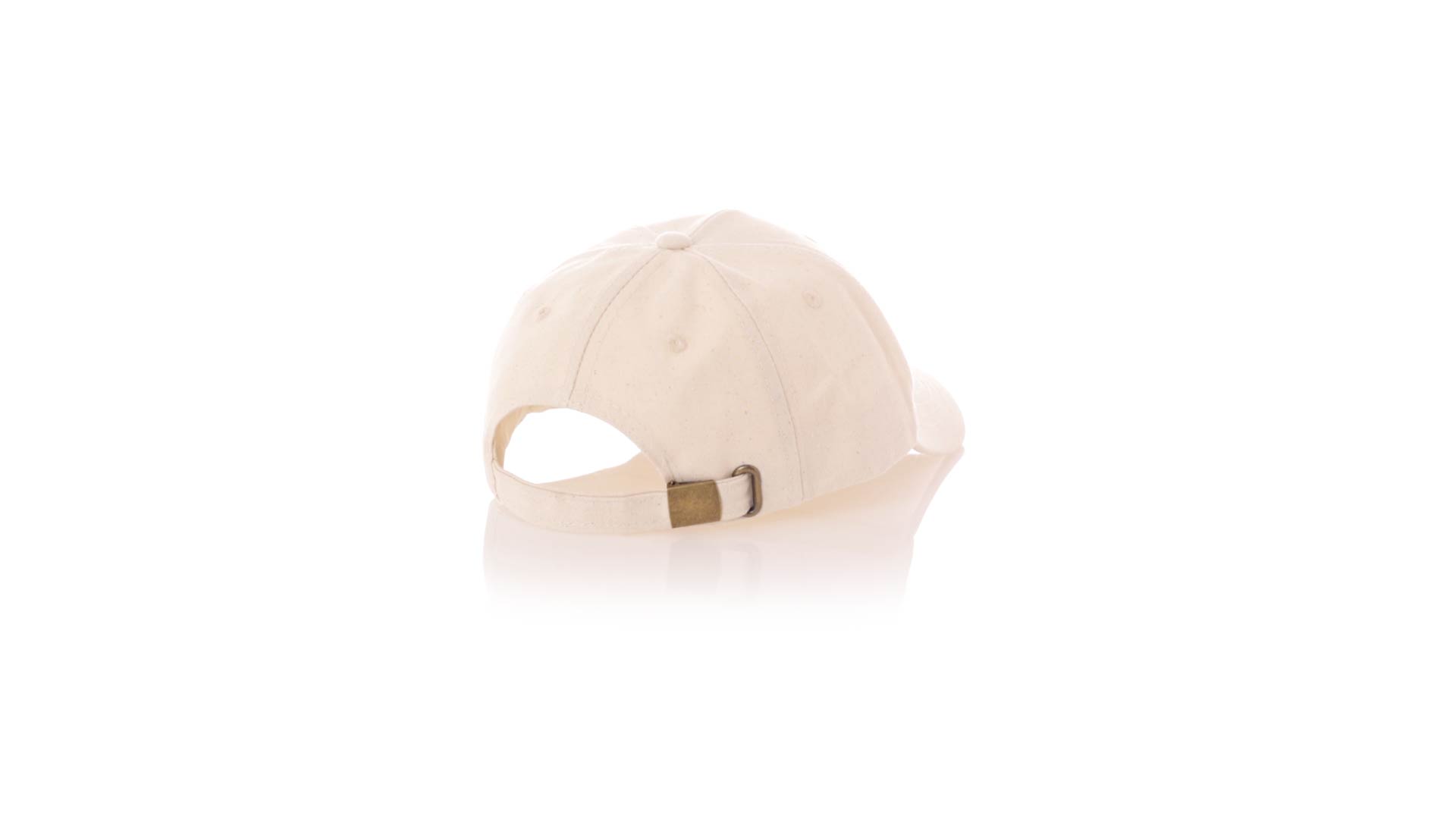 Kindermütze mit 6 Bahnen aus Bio-Baumwolle. Verstellbarer bronzefarbener Metallschnallenverschluss. Innenetikett mit Logo für Bio-Baumwolle.